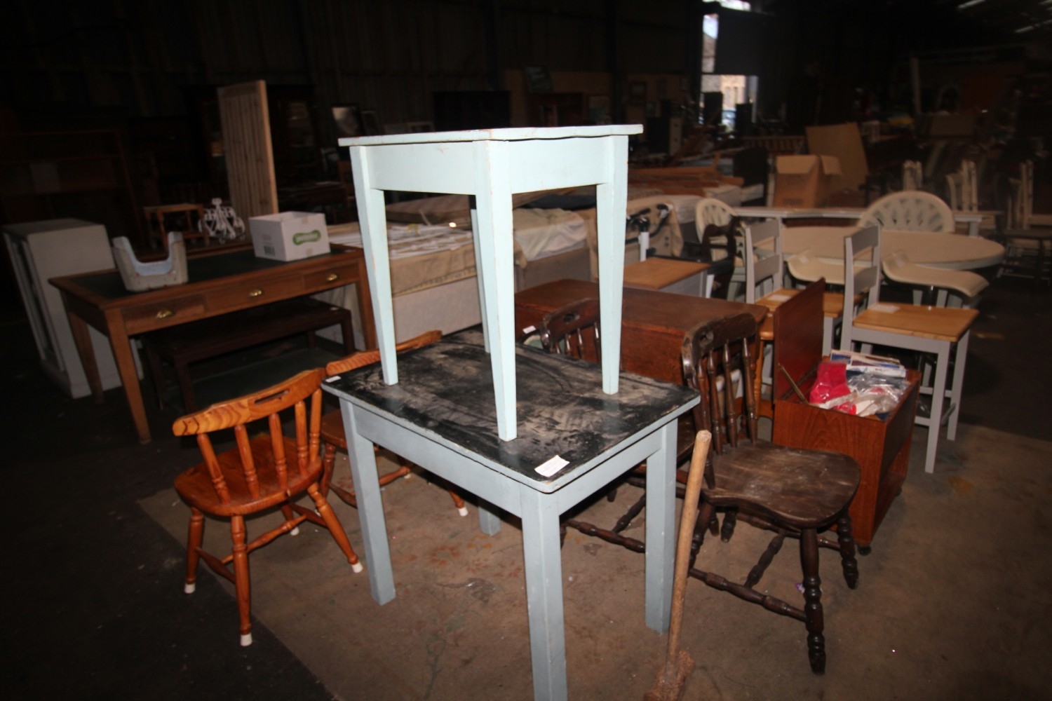 Lot 884: Two vintage painted pine tables