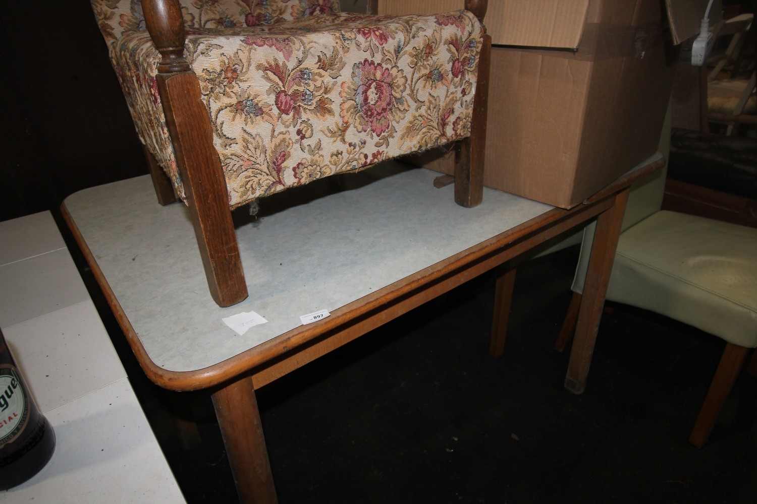 Lot 897: a lovley little vintage formica topped pine table