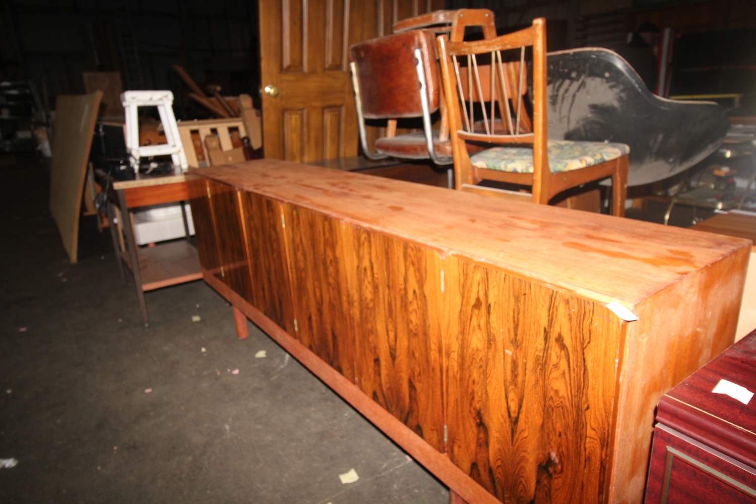 very rare designer 6 door gordan russell rose wood and stripped mahogany xl retro side board would love some attention however nice solid piece