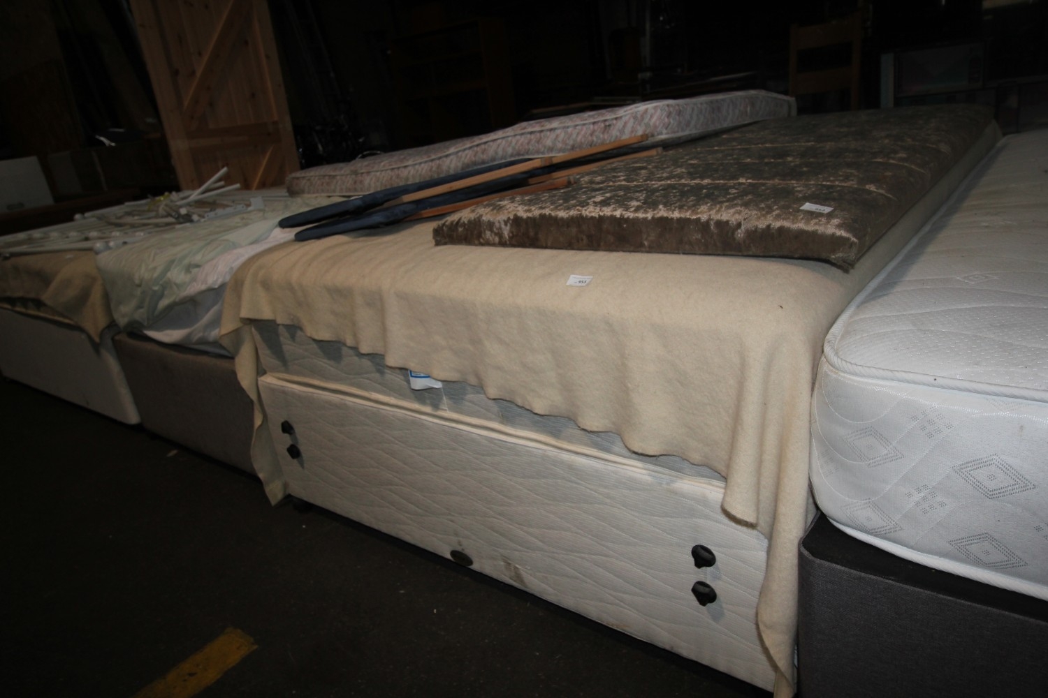 Cream coloured double divan bed base with very deep, comfortable mattress. Has been kept under cover so also very clean