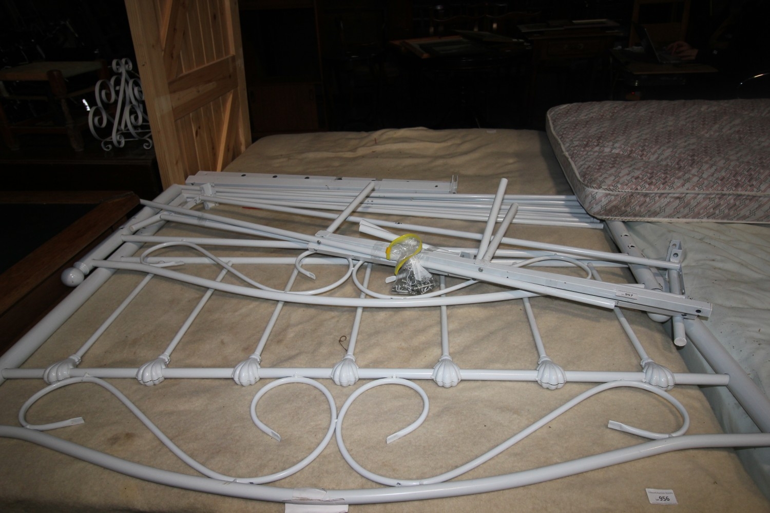 Lot 957: Victorian-style white metal bed-frame with all bolts present