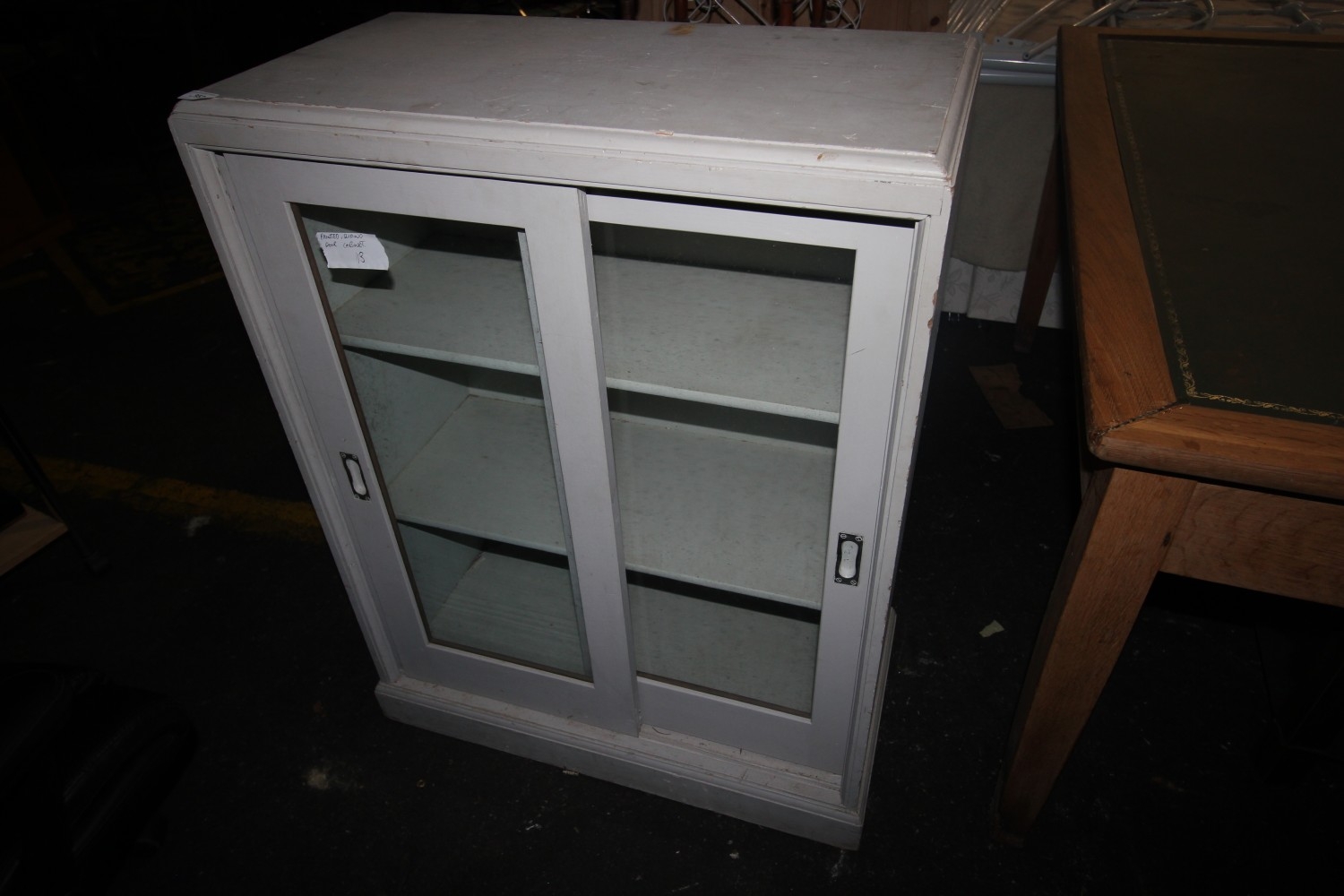 Lot 959: Glazed-fronted three shelf cabinet measuring 76cm wide x...