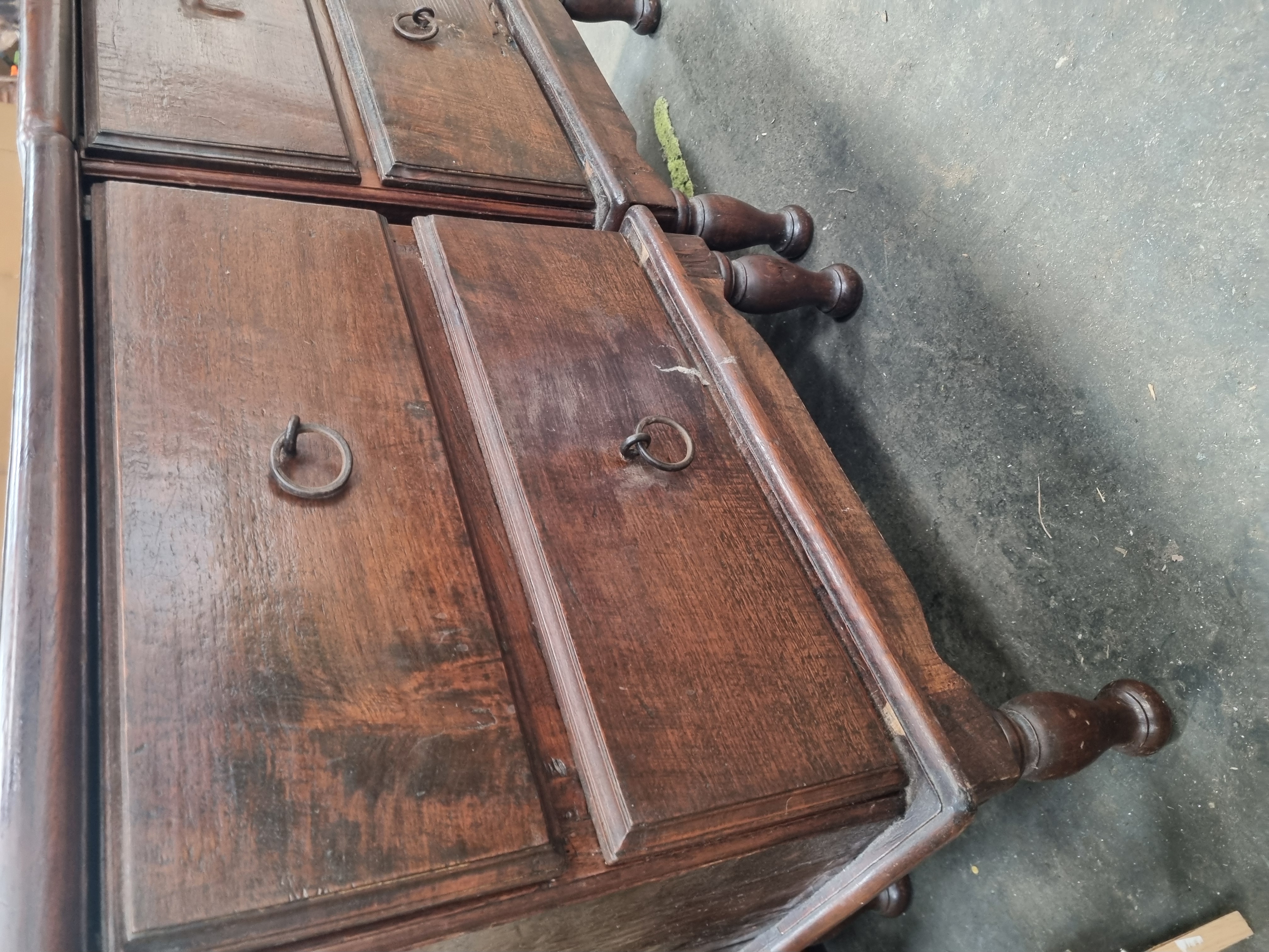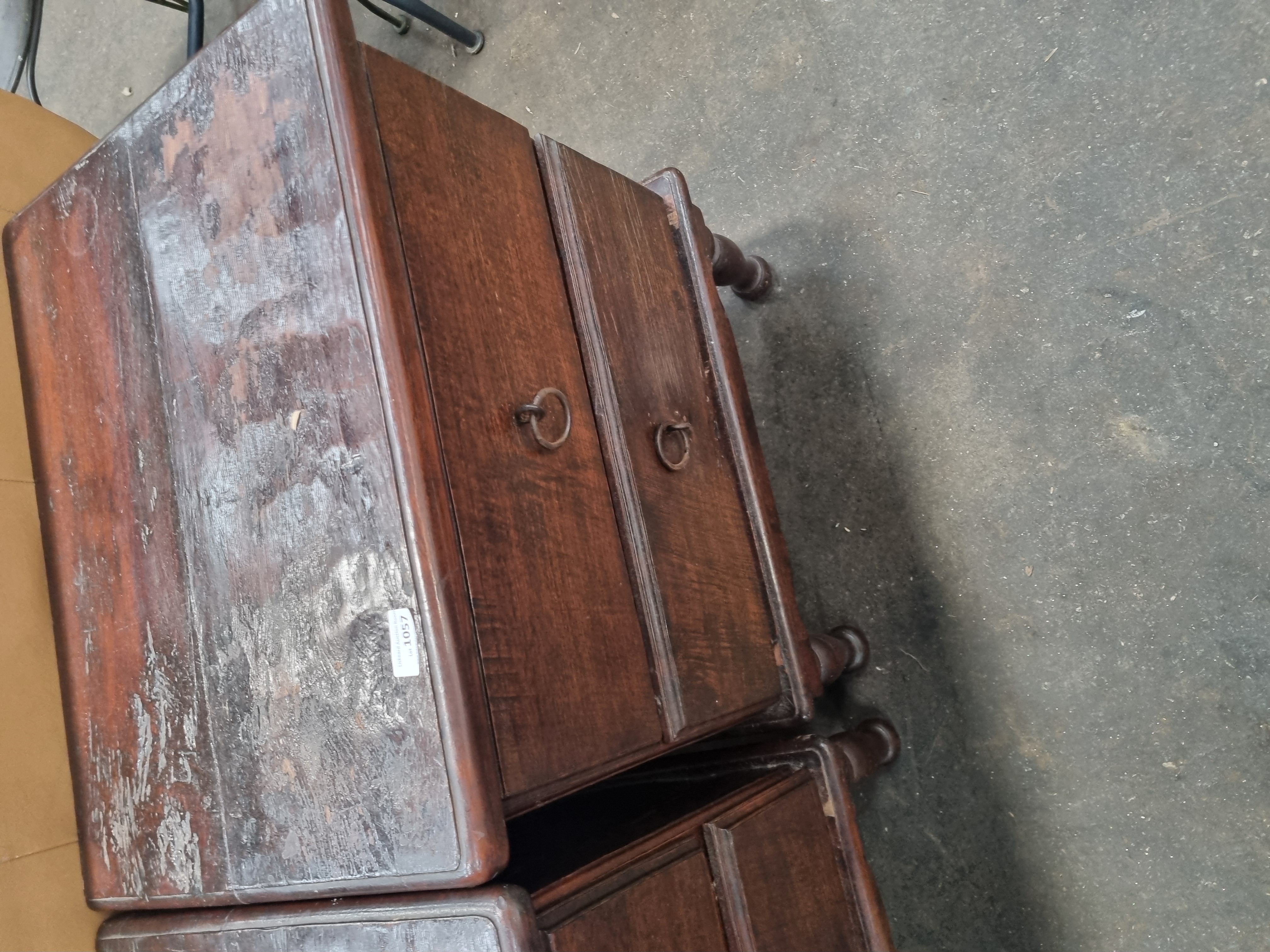 Lot 1057: A Pair of Small Jacobean Style Oak Two-Drawer Chests