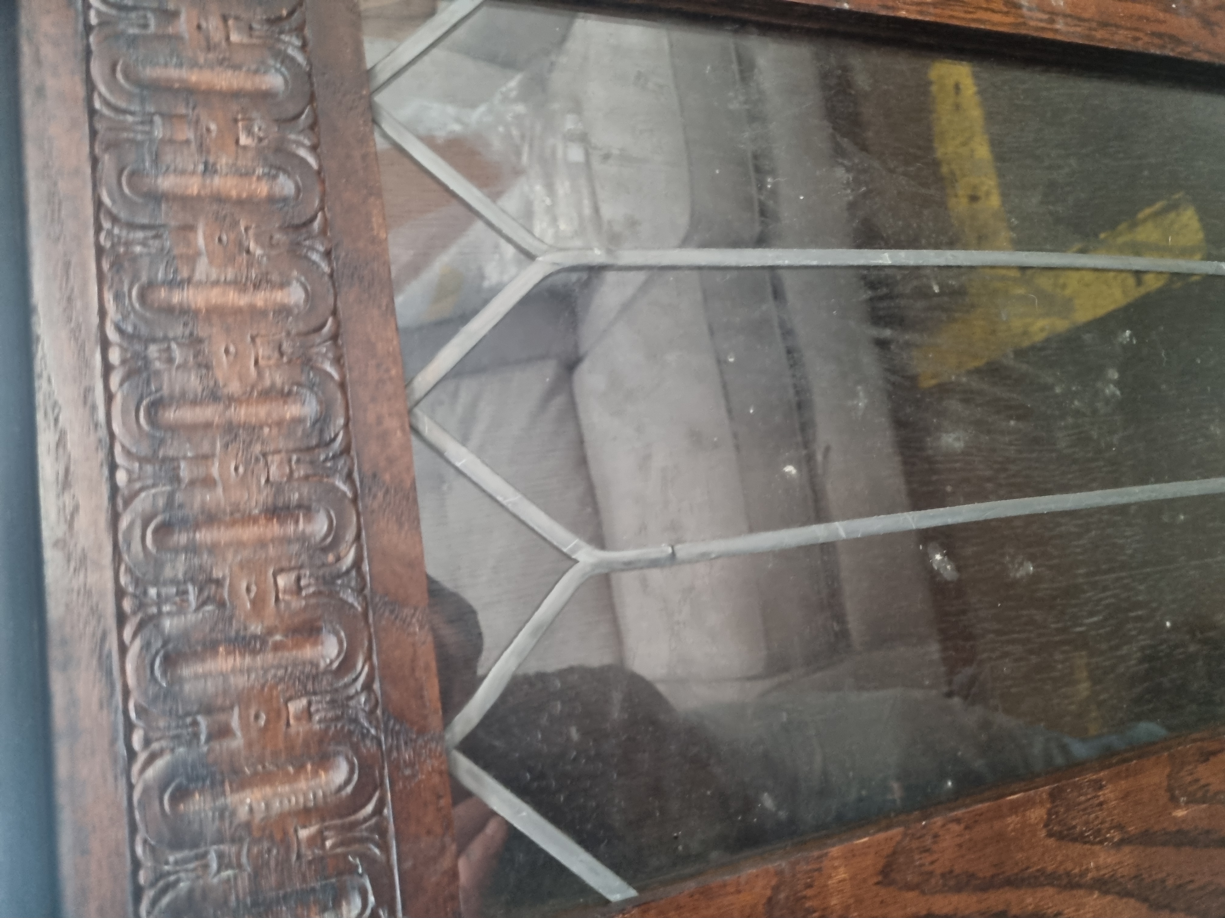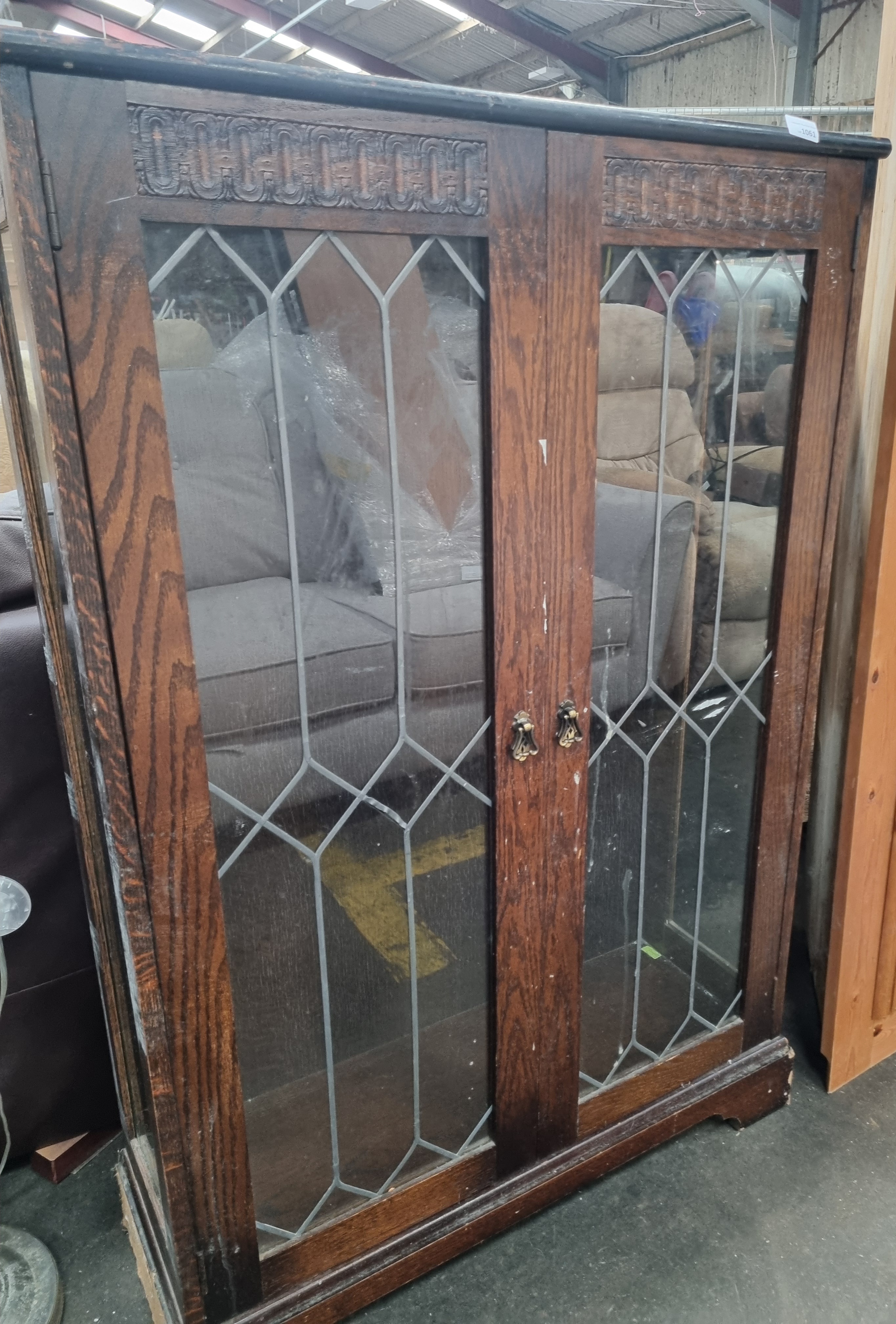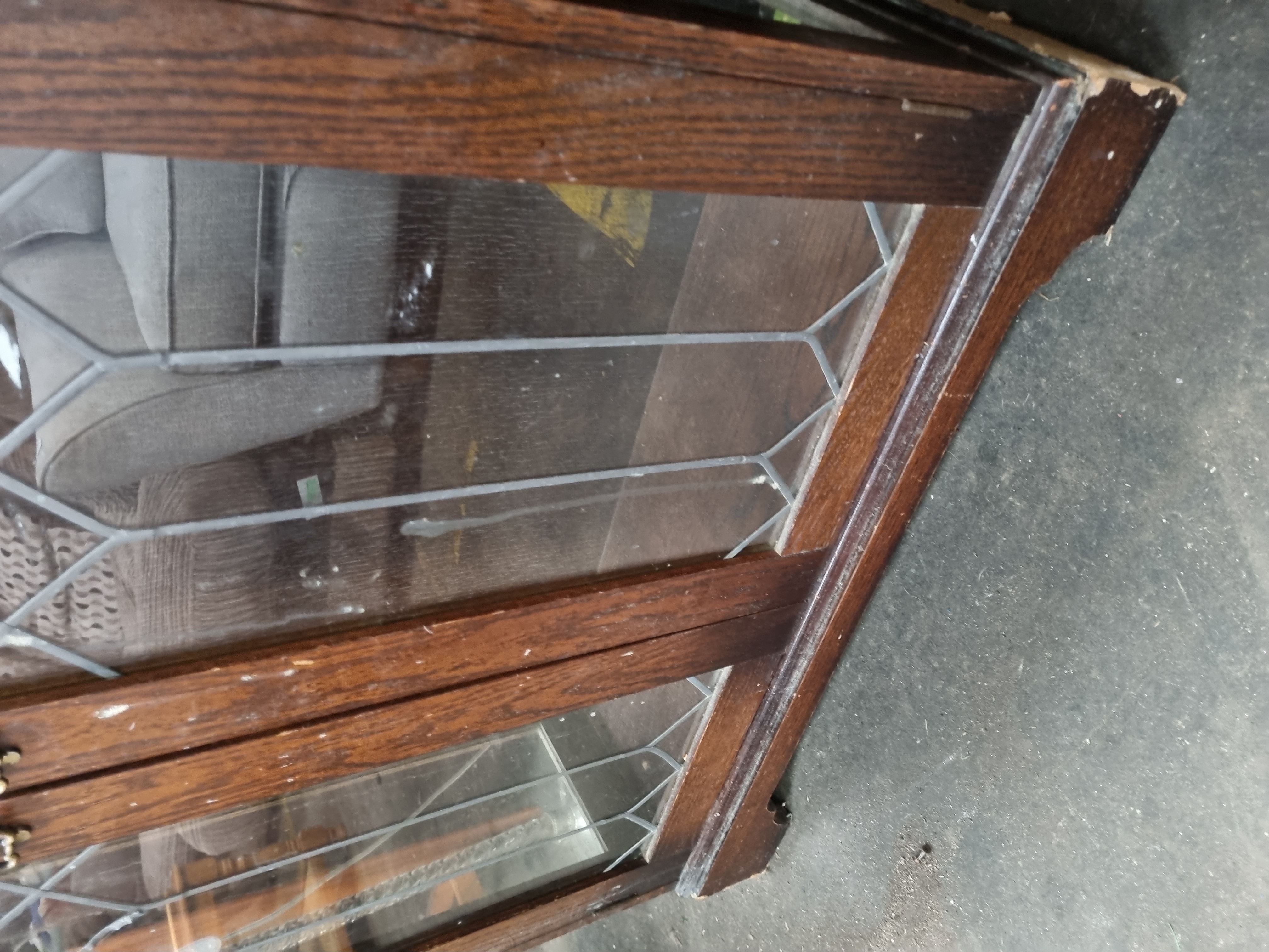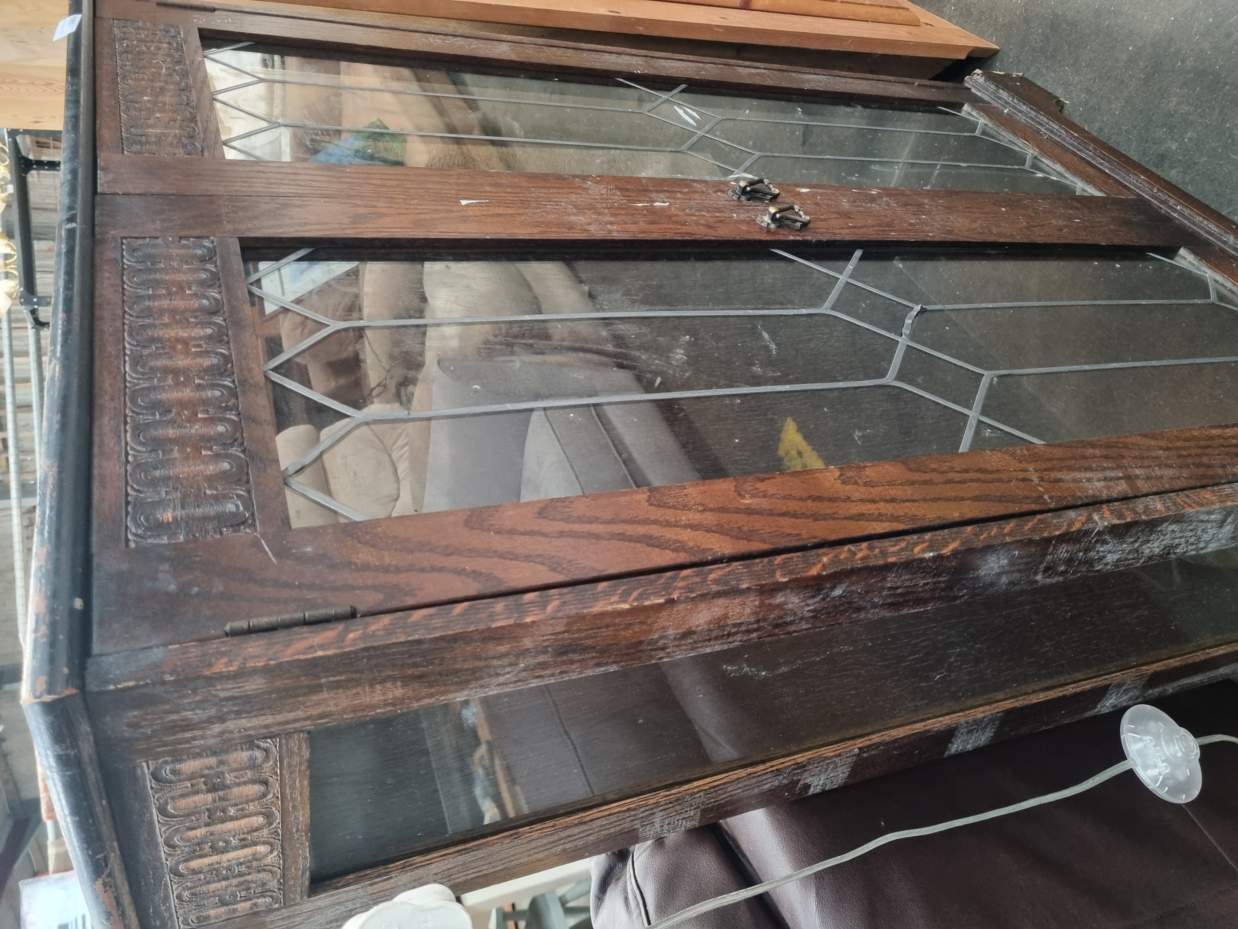 Lot 1061: Tudor Revival Oak Leaded Glass Display Cabinet