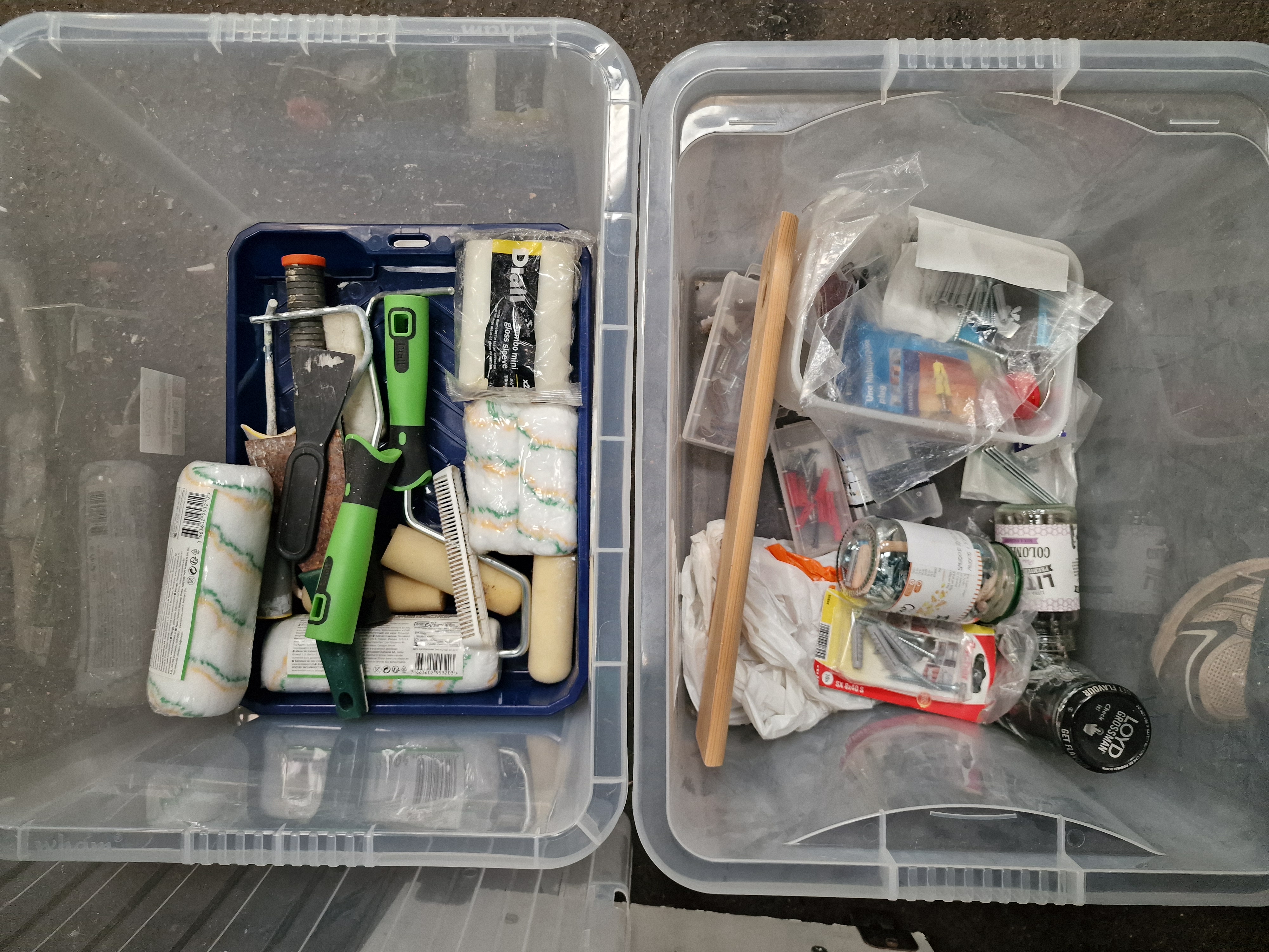 Lot 113: An Assortment of Contemporary Hand Tools, Decorating Equipment, and Workshop Storage