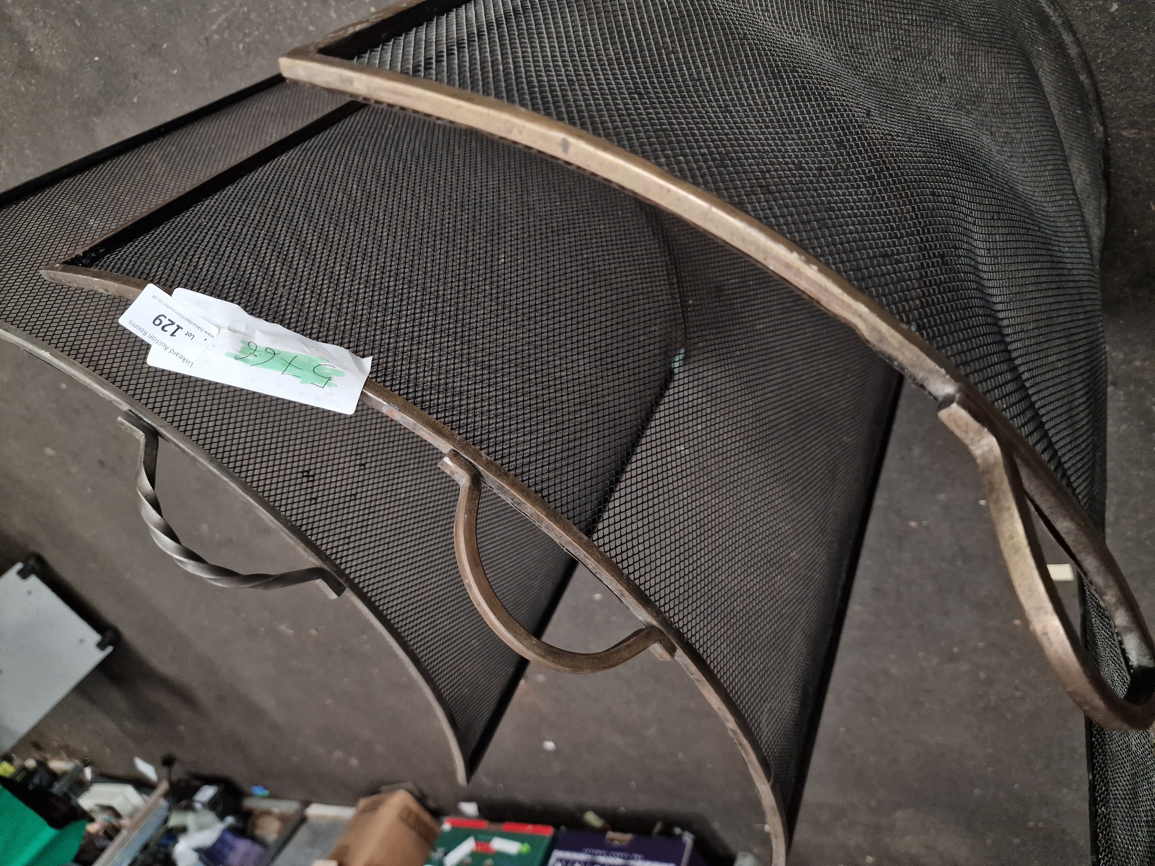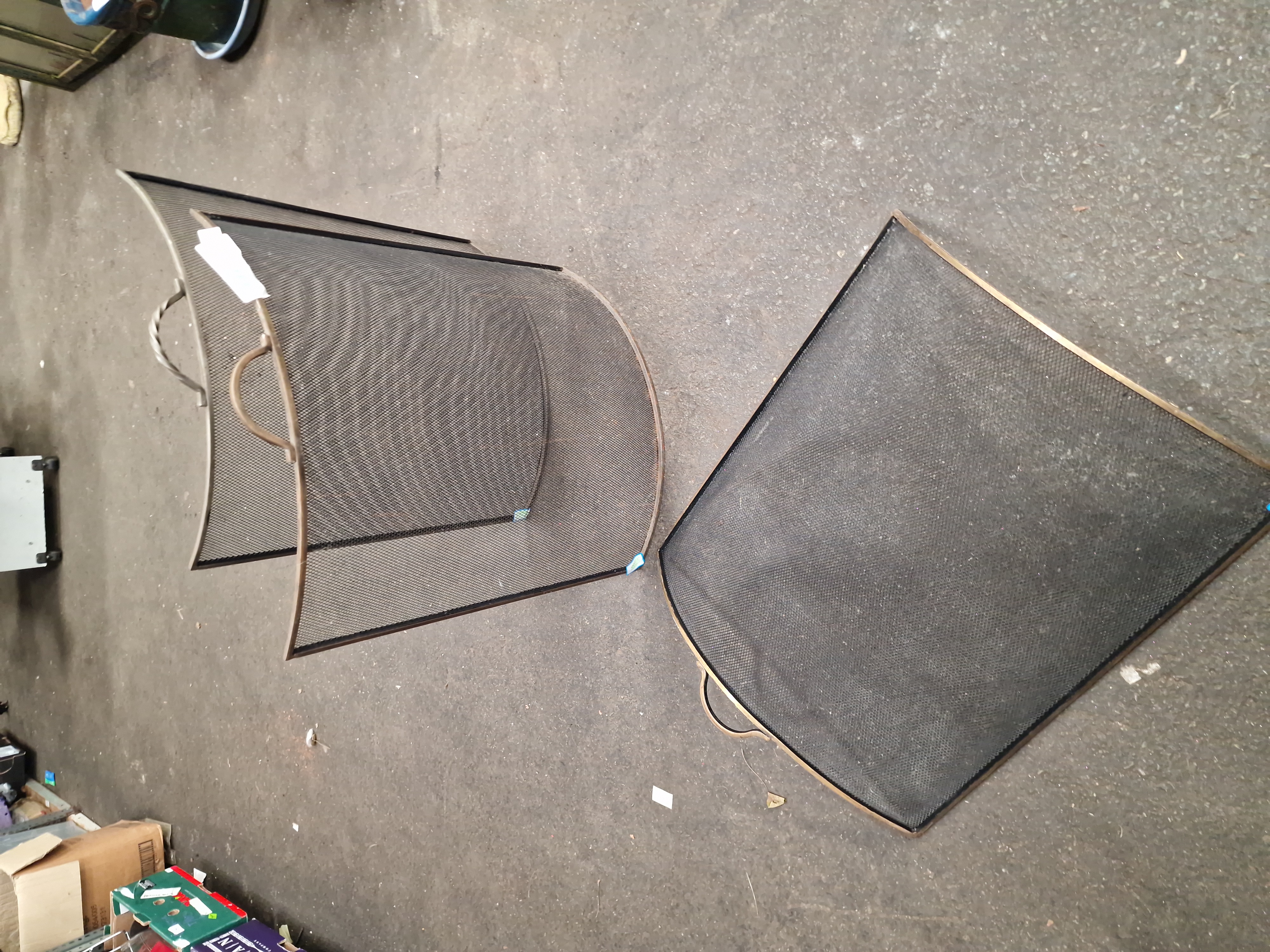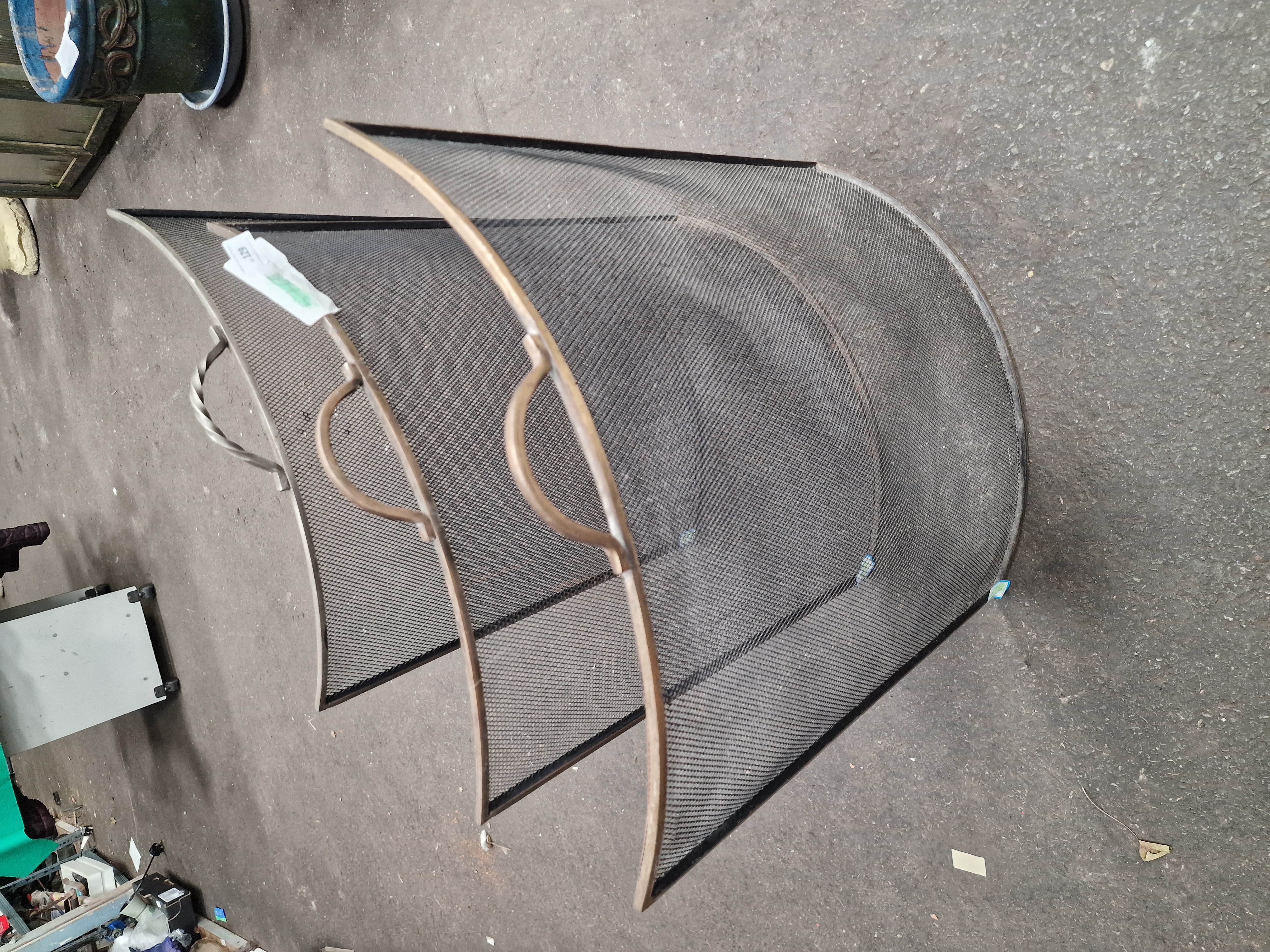 Lot 129: A Trio of Vintage Brass and Mesh Curved Fireplace Spark Guards