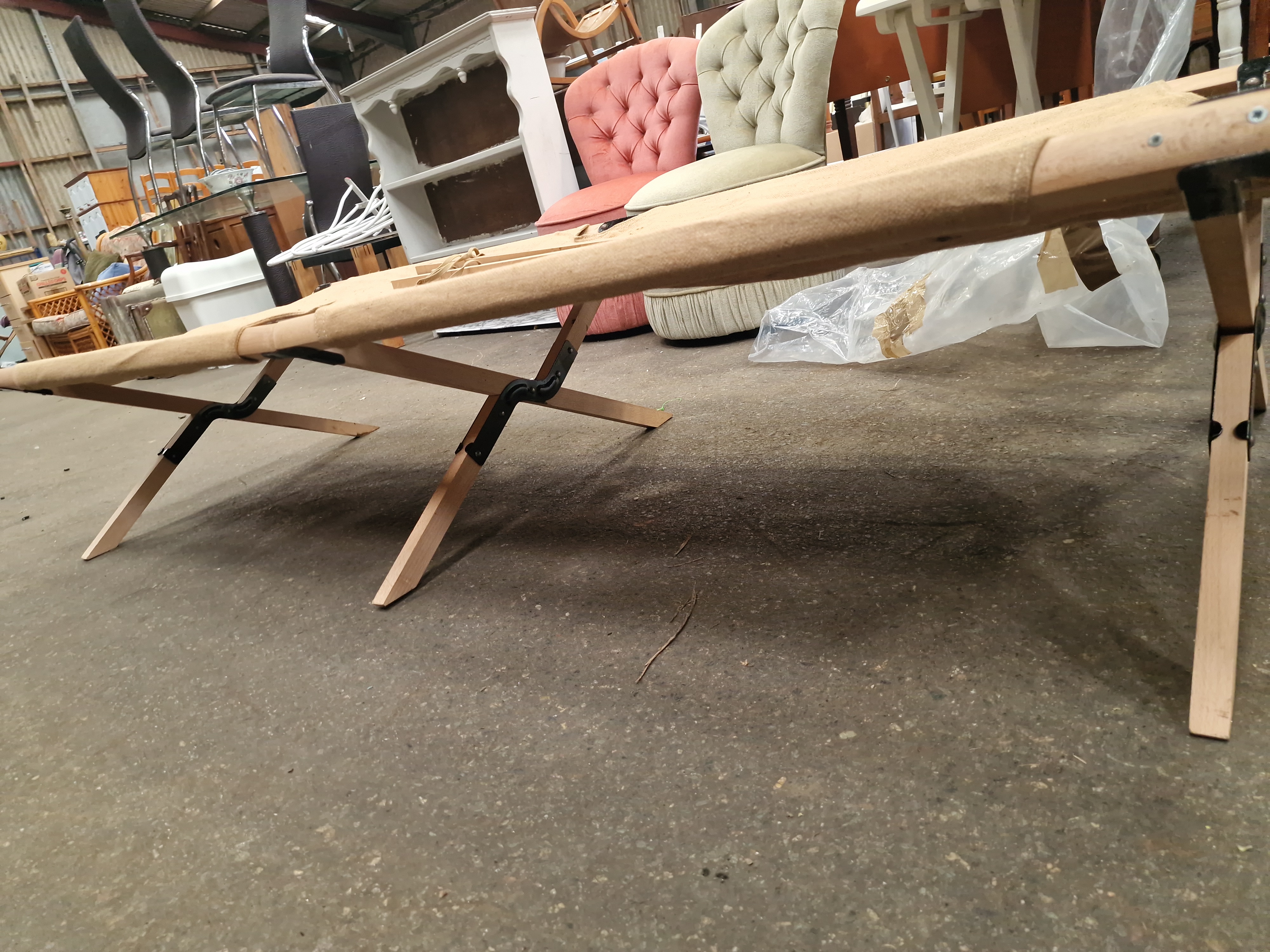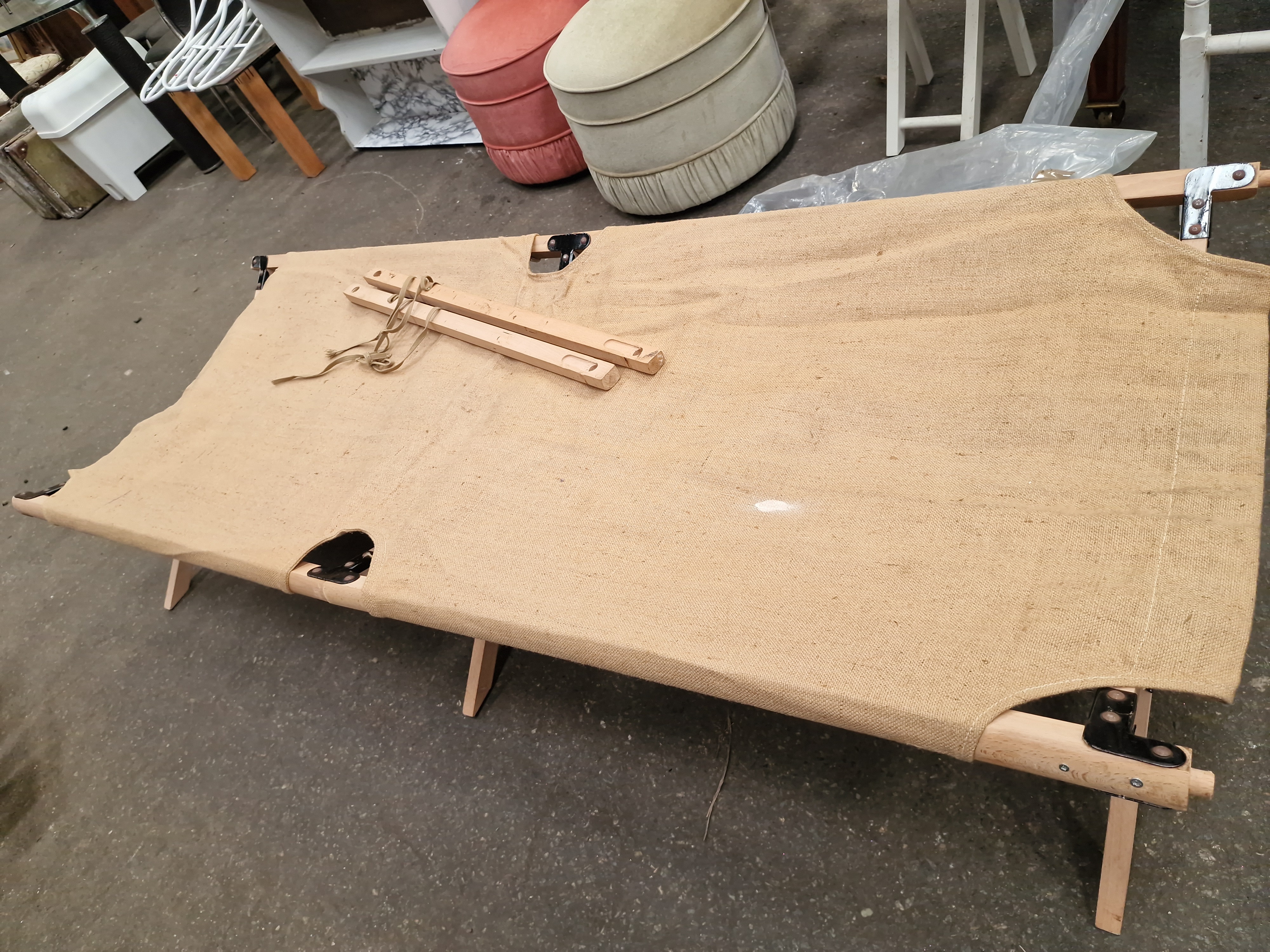 Lot 188: Contemporary folding wooden frame camp bed with canvas sling