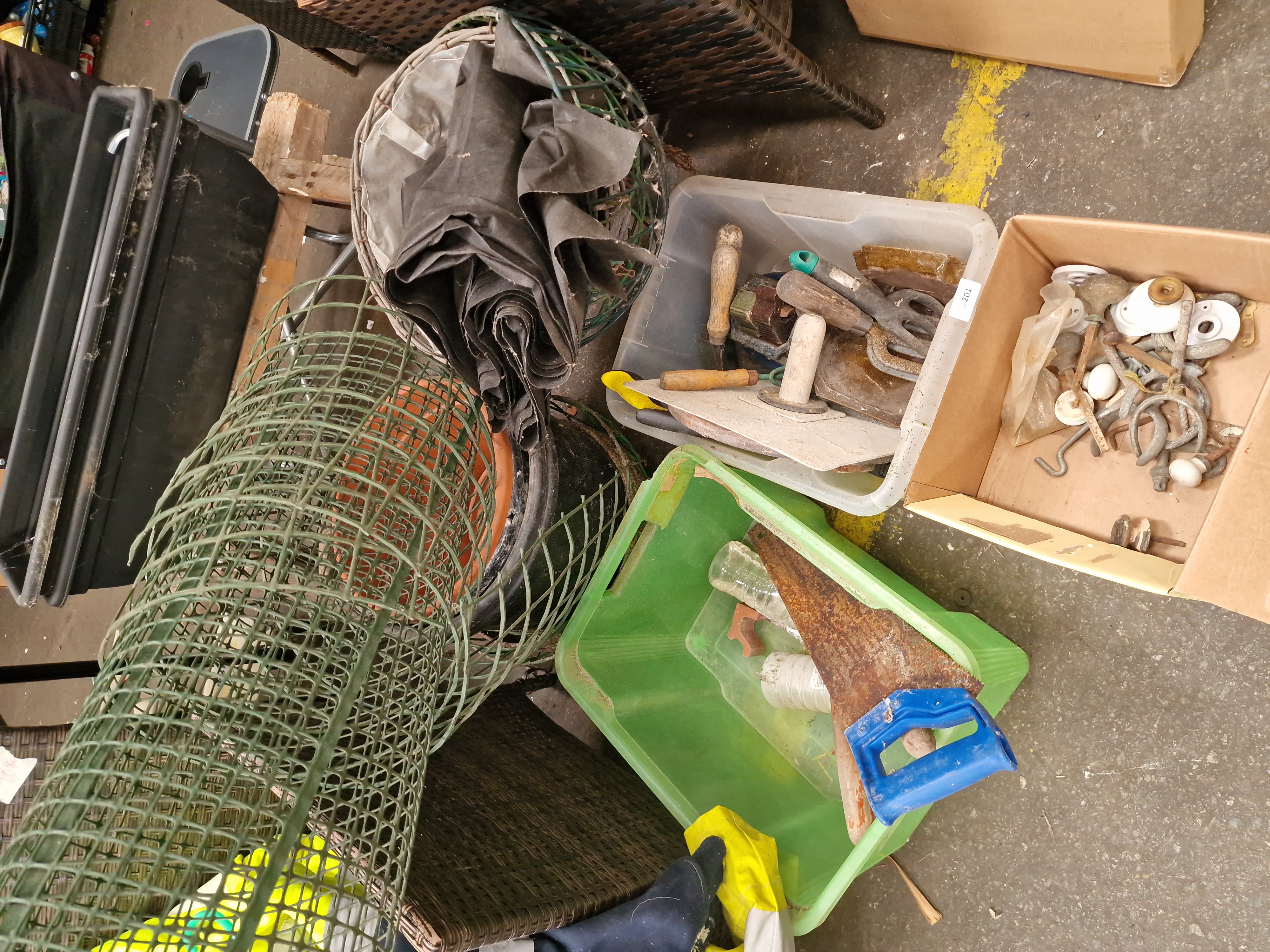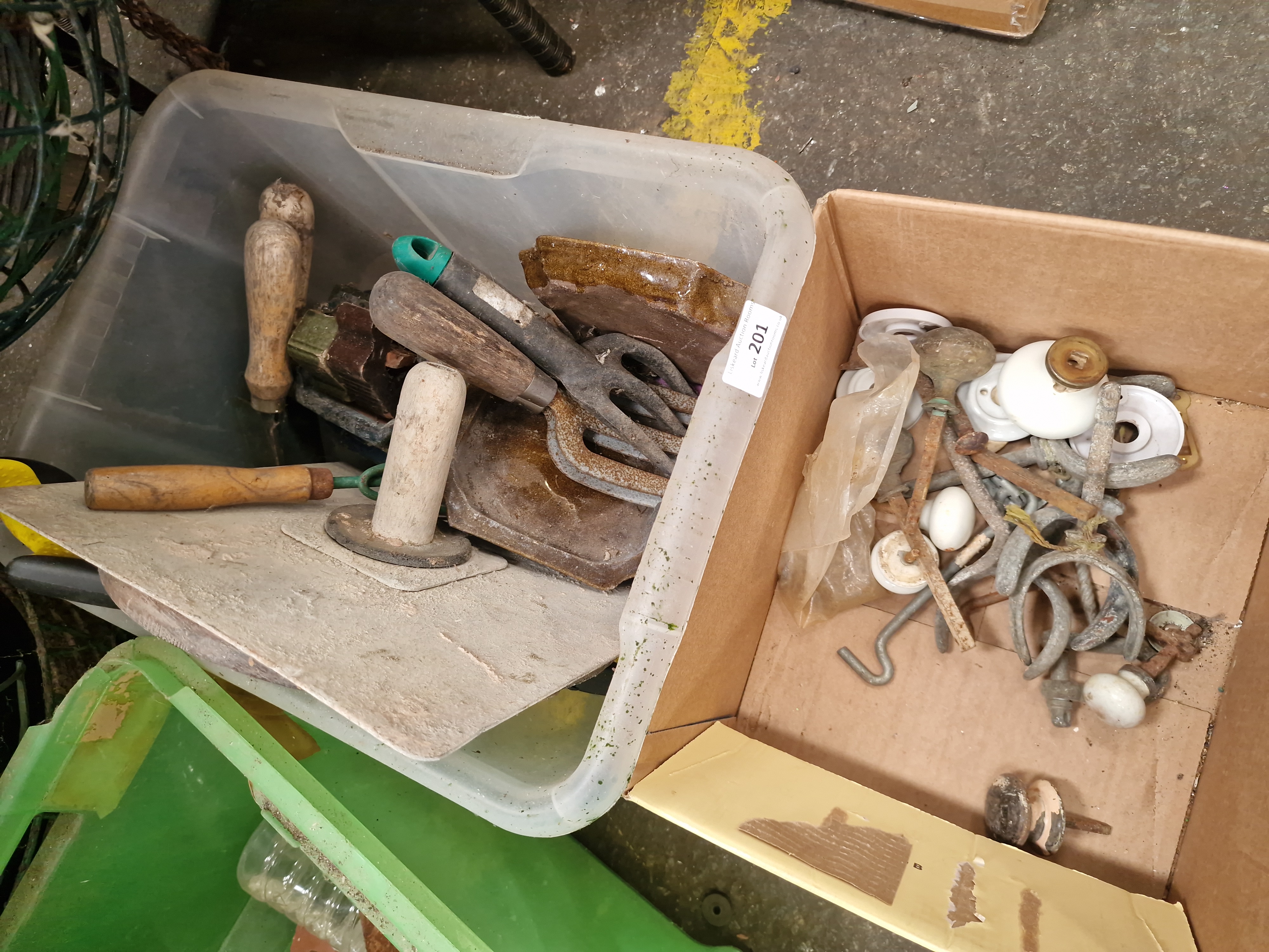 Lot 201: An Assortment of Garden and Hand Tools, Architectural Hardware, and Sundries