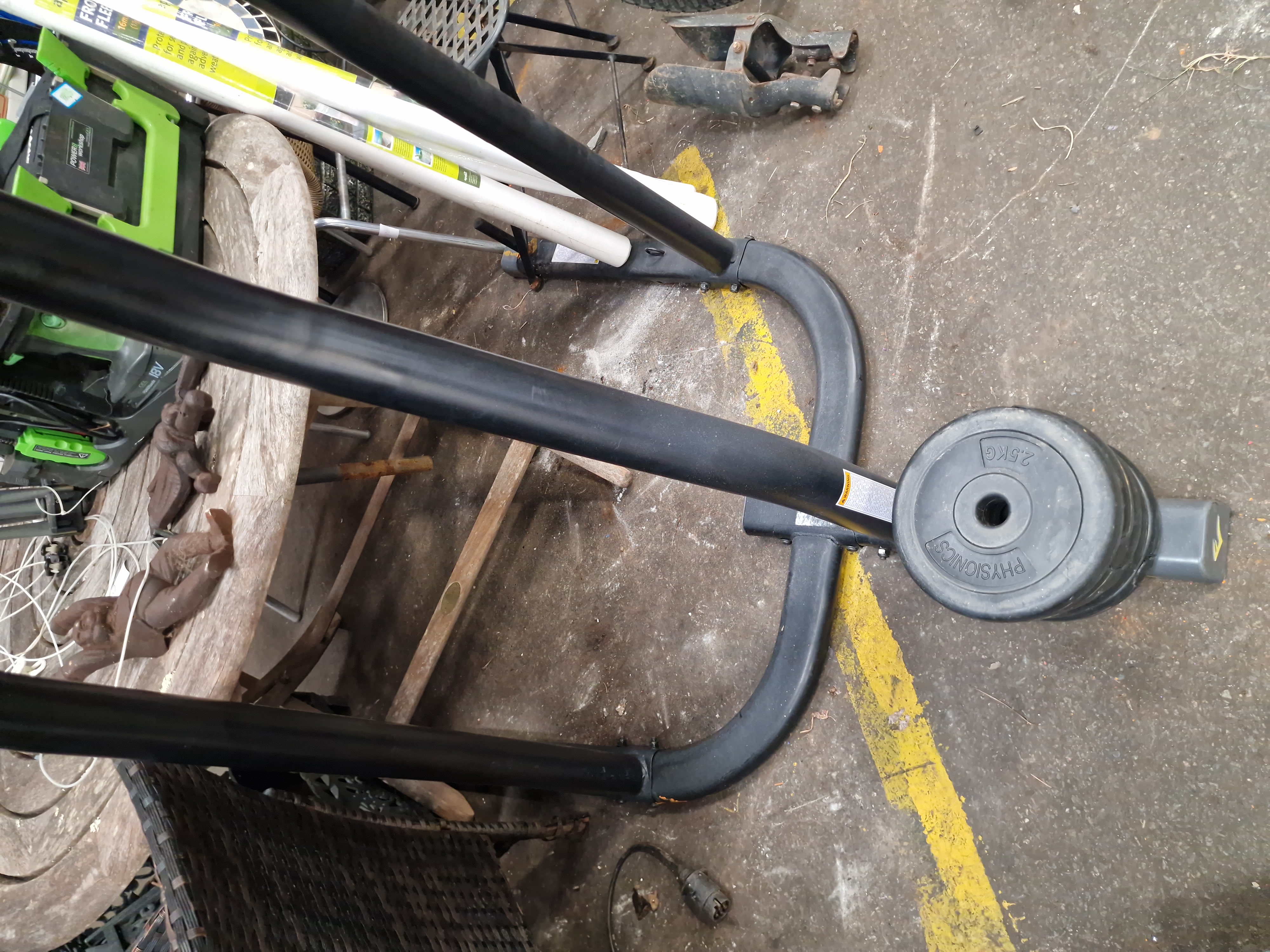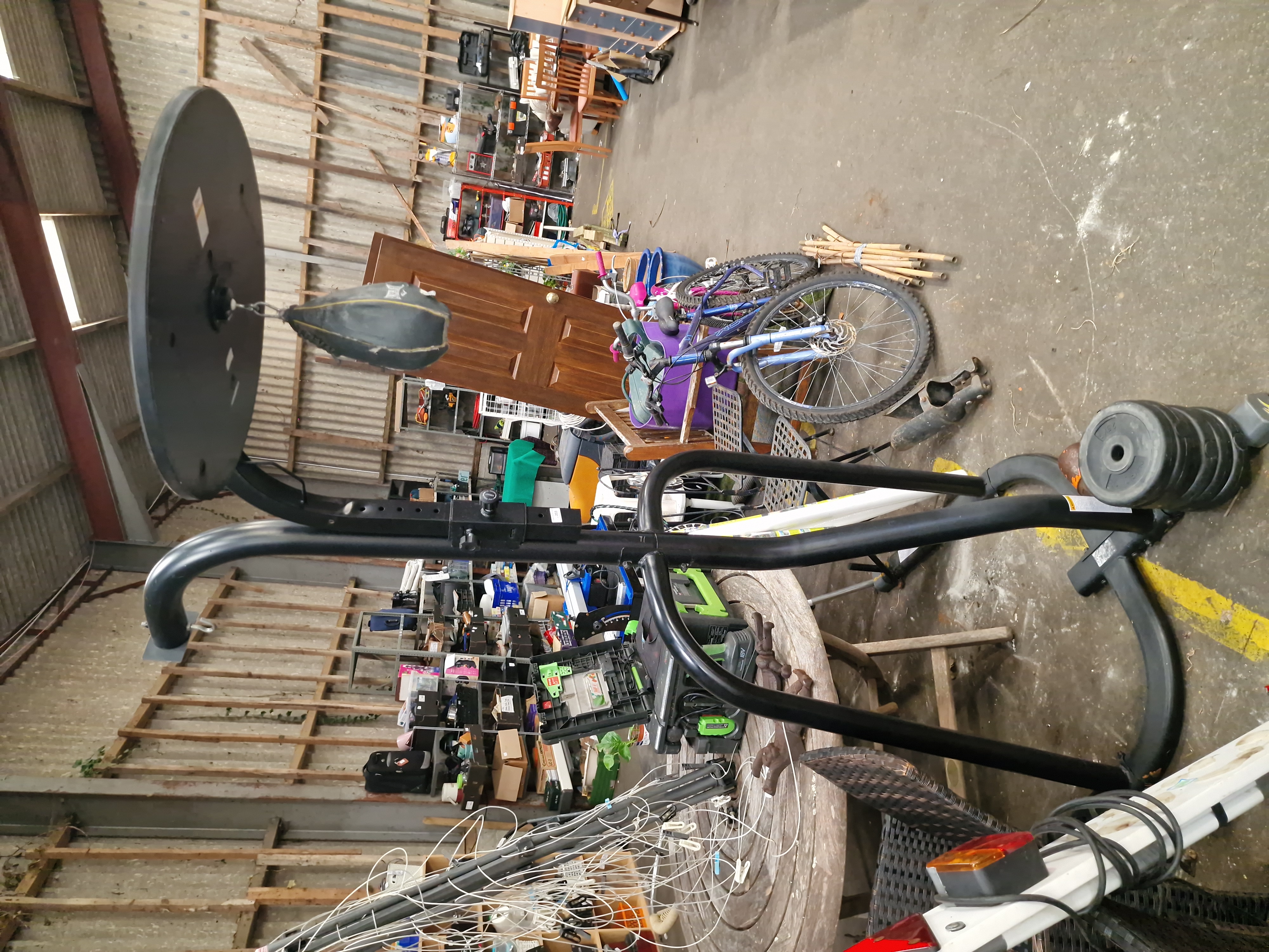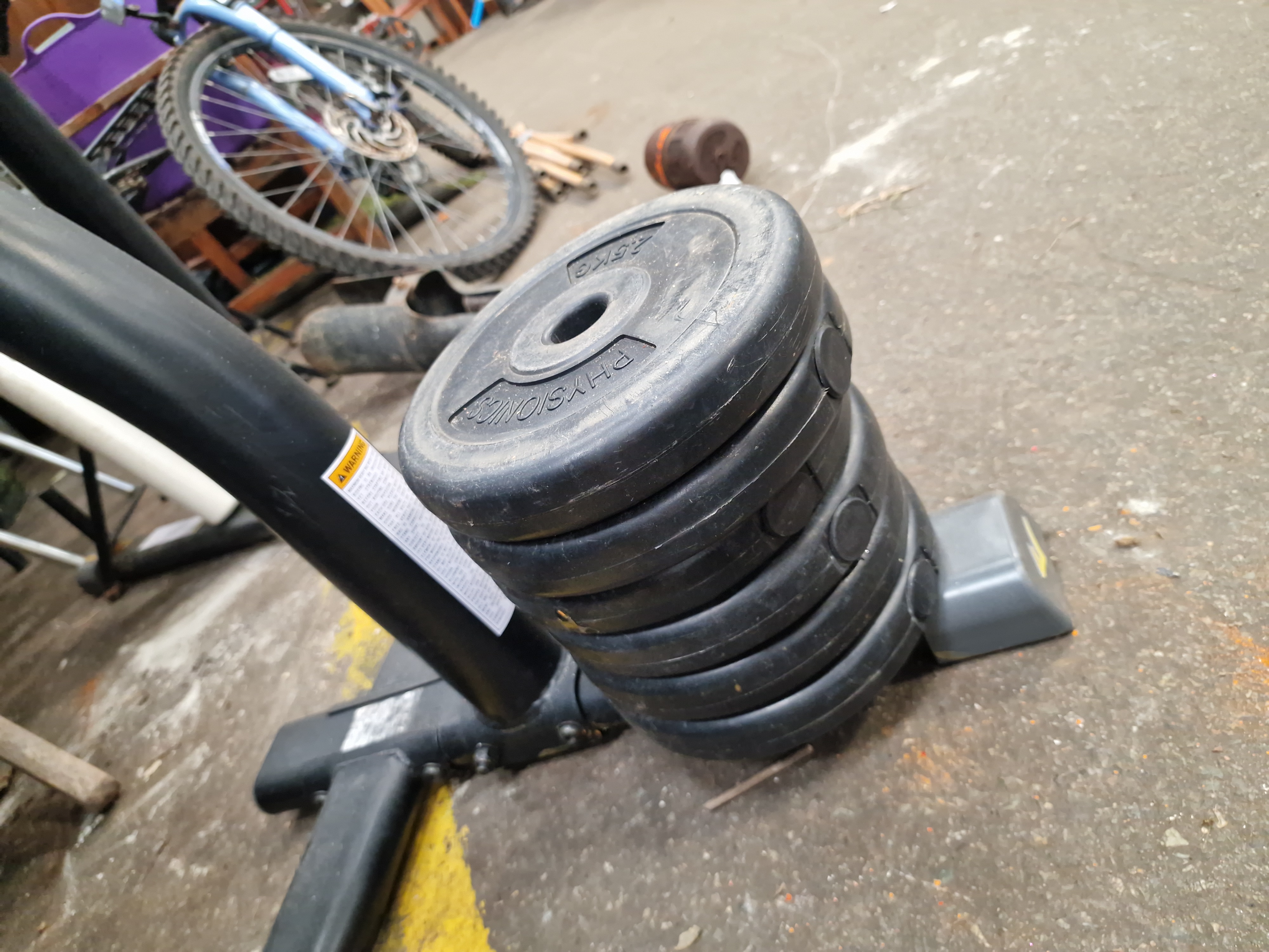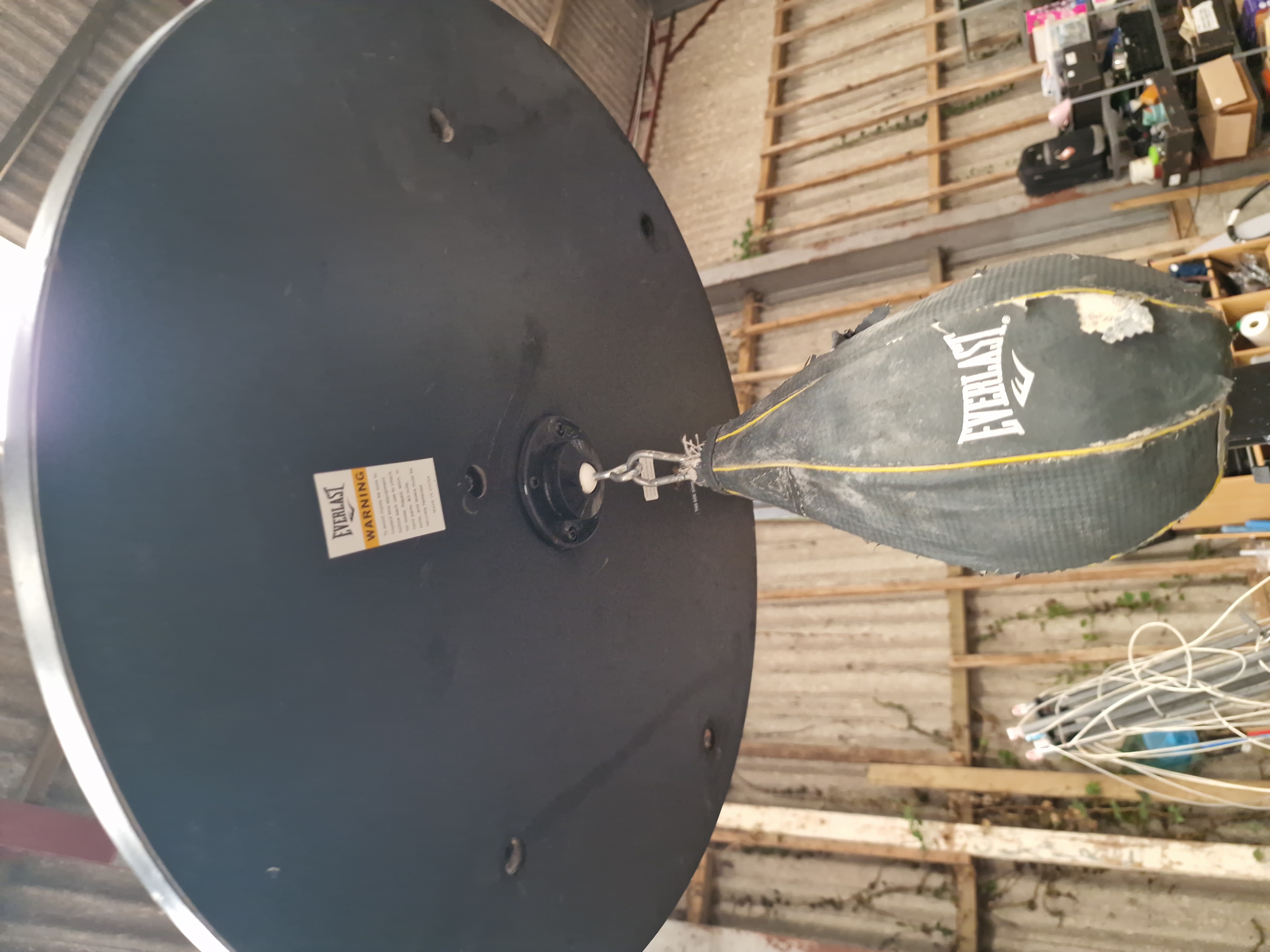 Lot 203: Everlast Adjustable Speed Bag Stand and Physionics Weight Plates