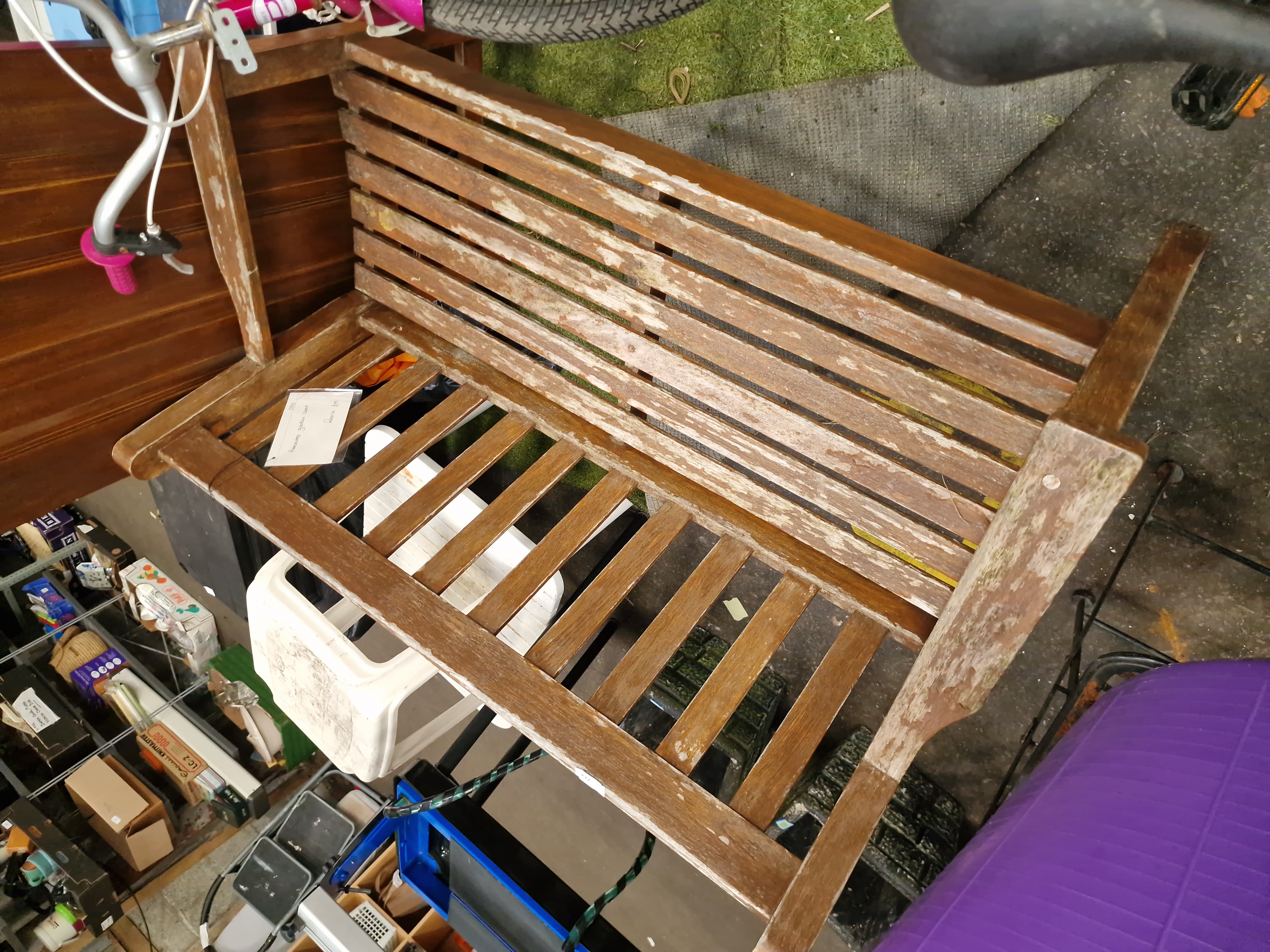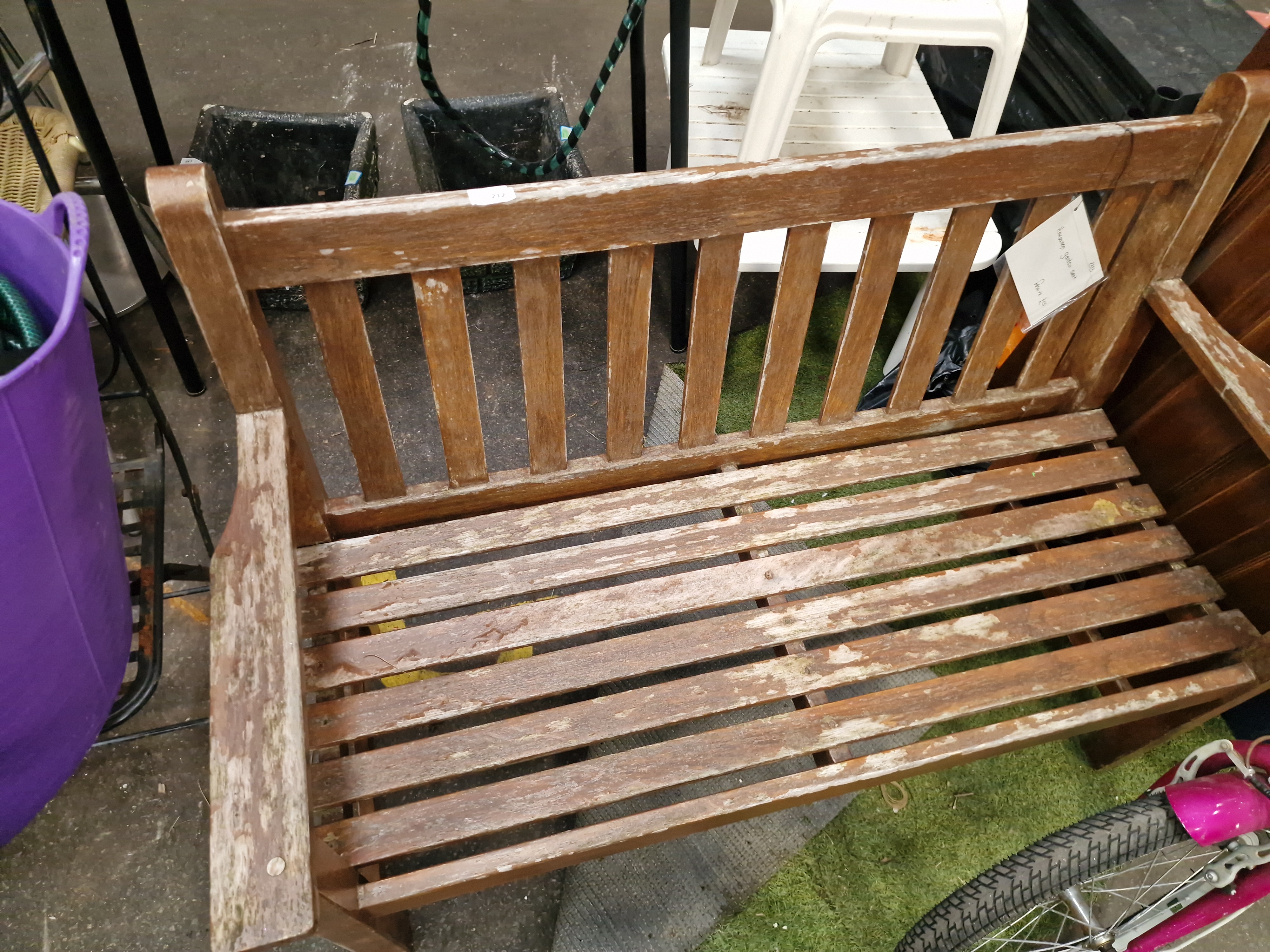 Lot 212: A late 20th century slatted hardwood two-seater garden bench