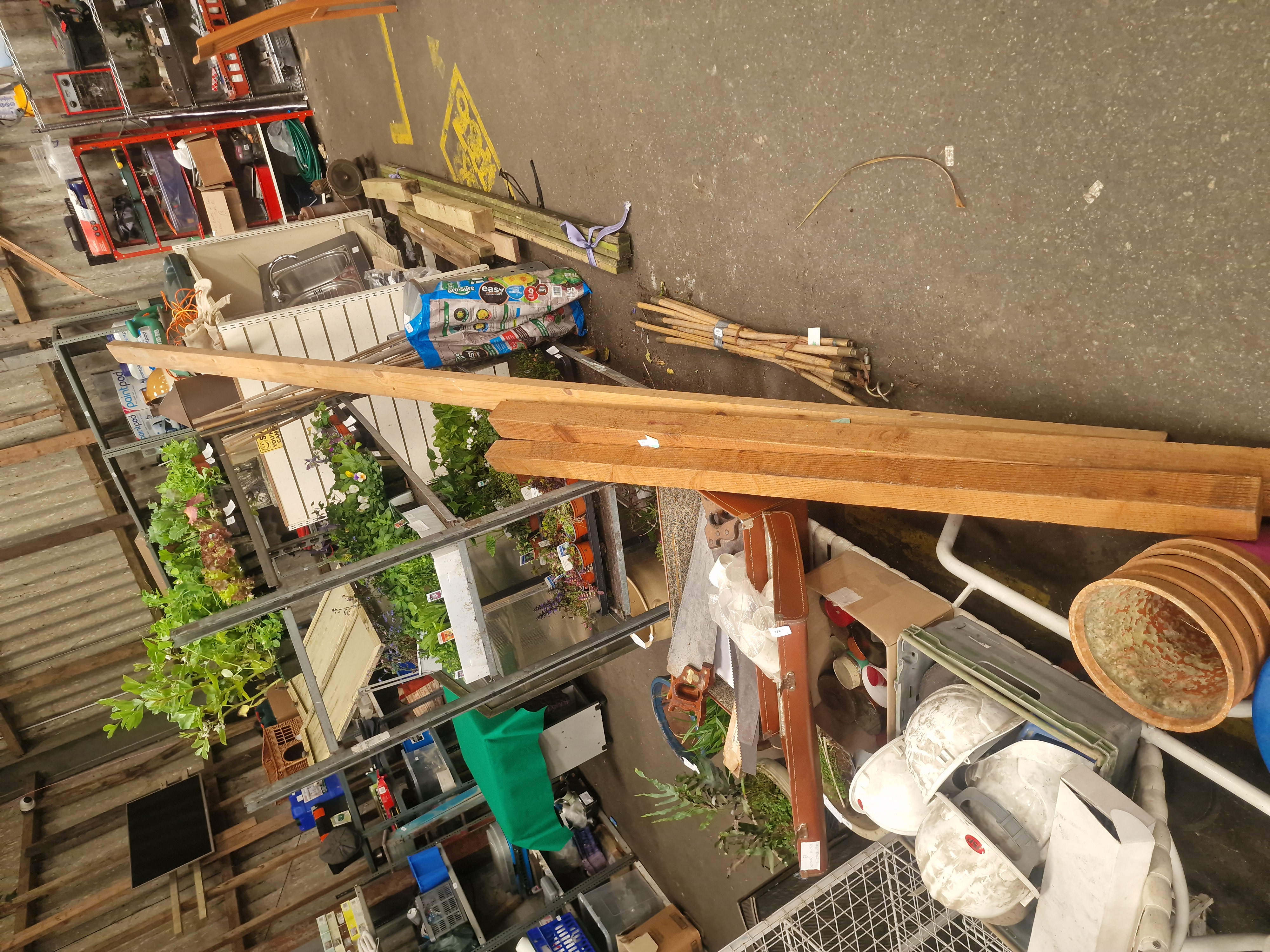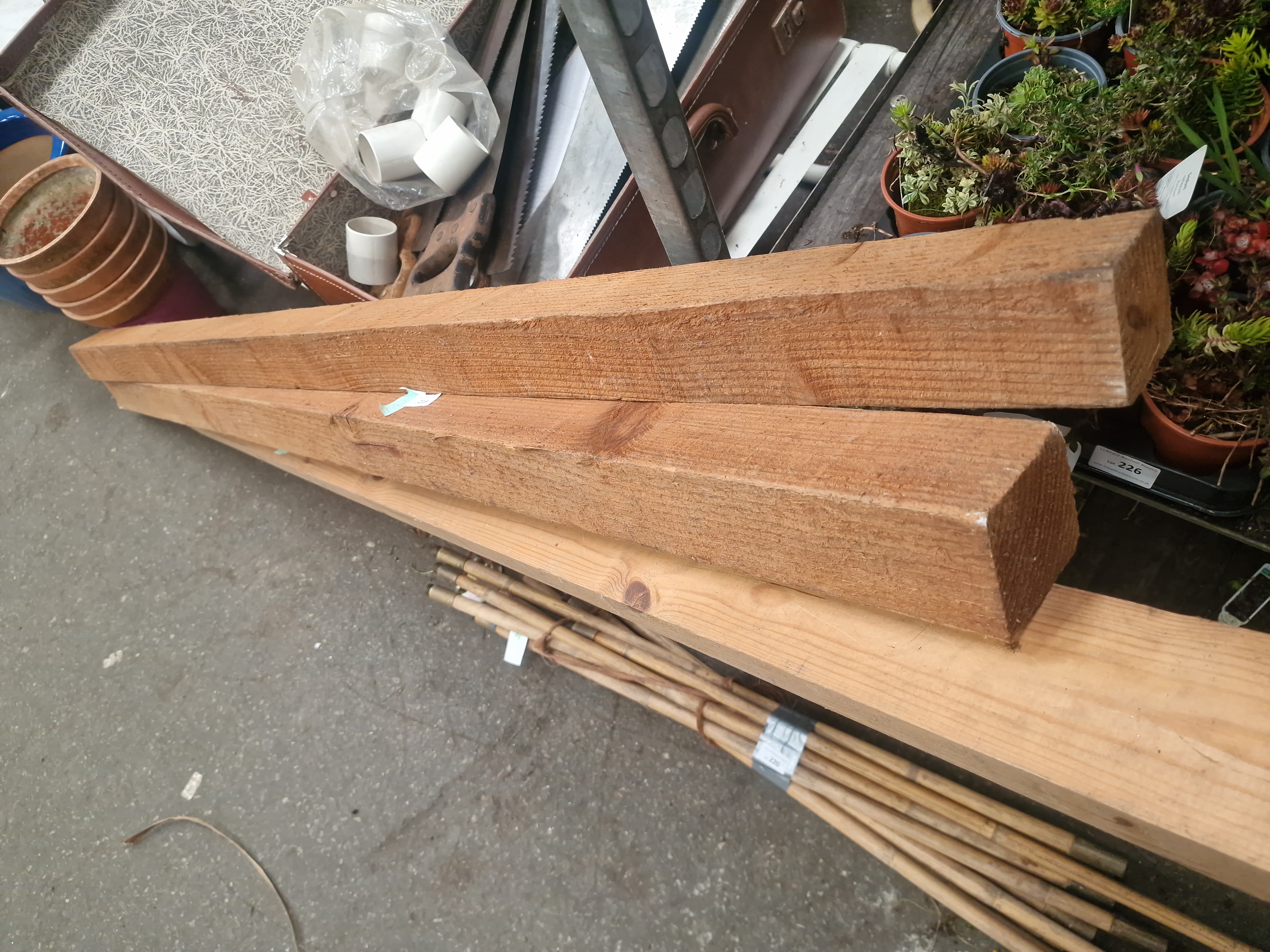 Lot 219: Three Square-Cut Softwood Garden Posts