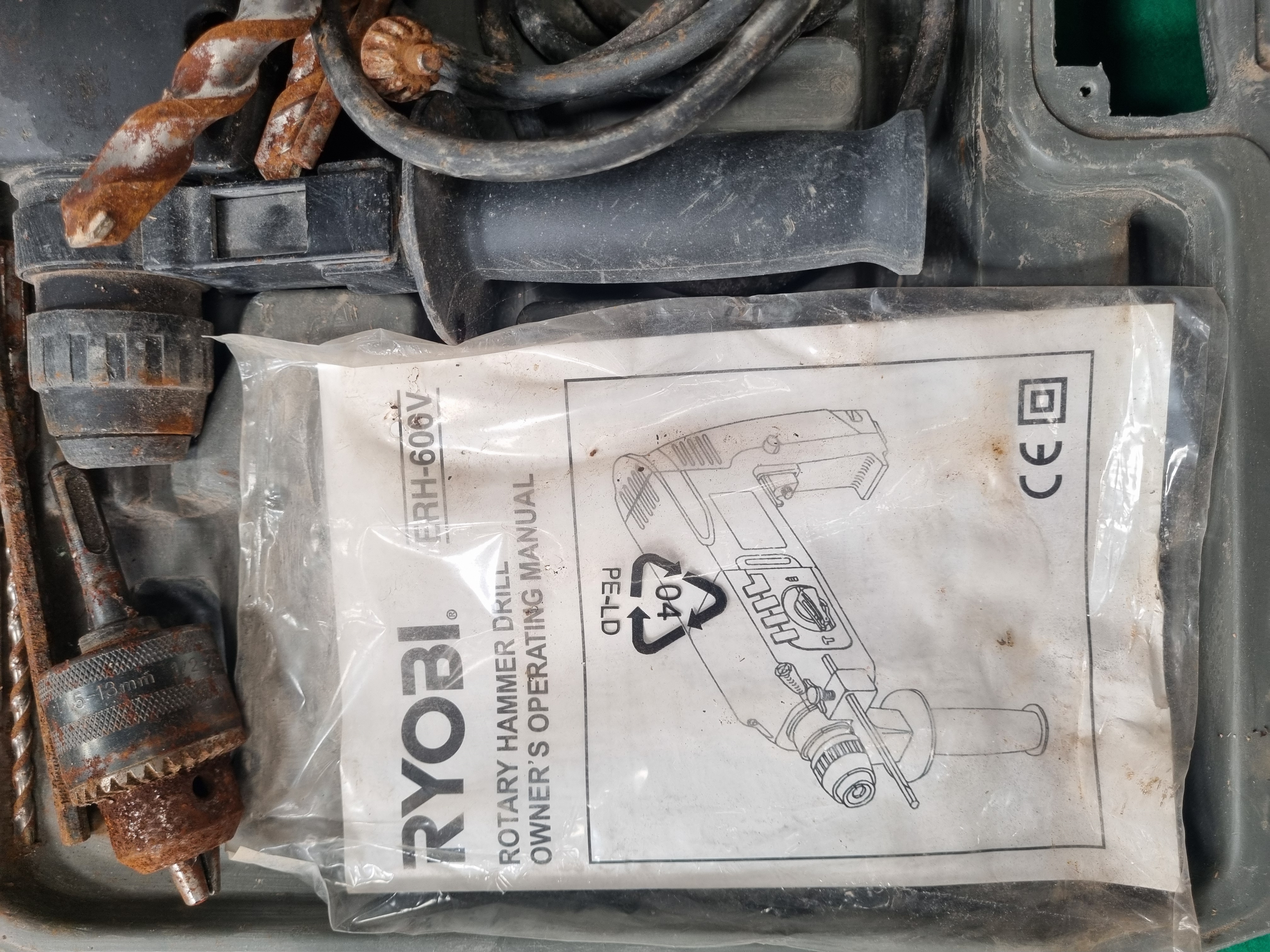 Lot 25: Ryobi ERH-600V Rotary Hammer Drill with Accessories