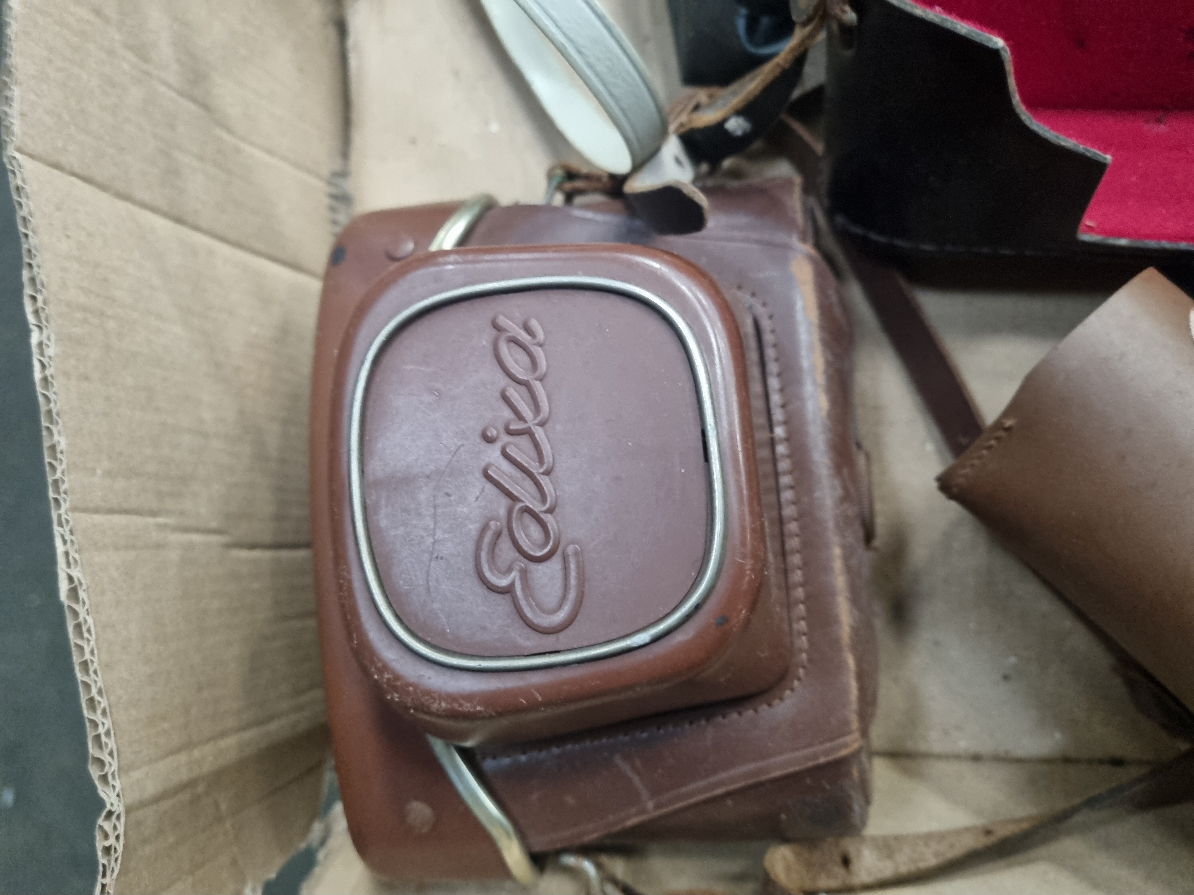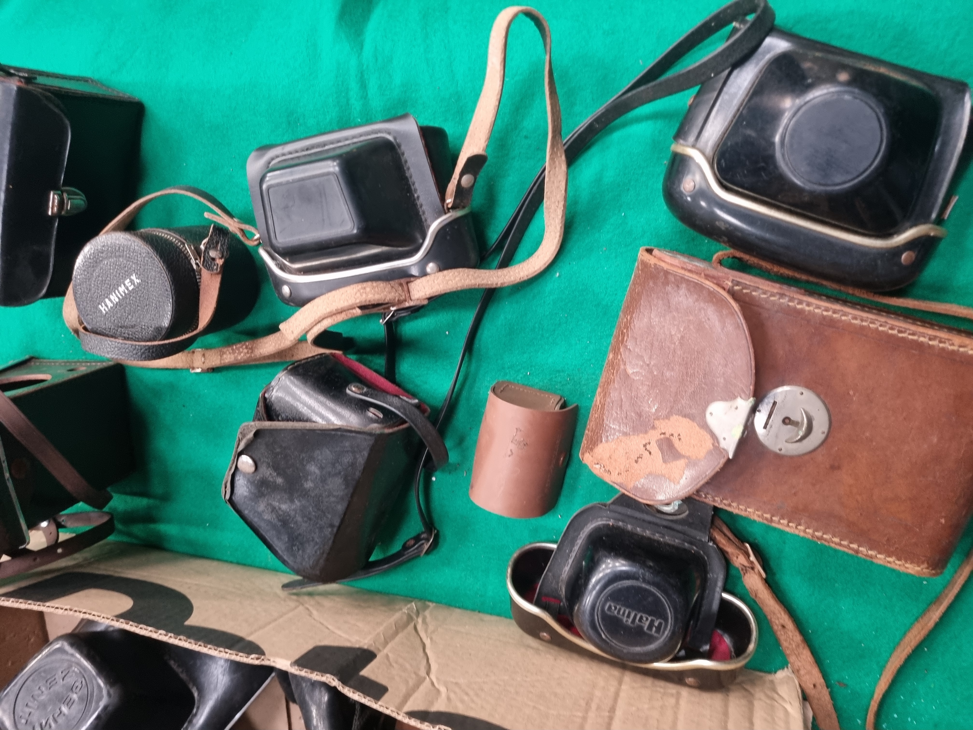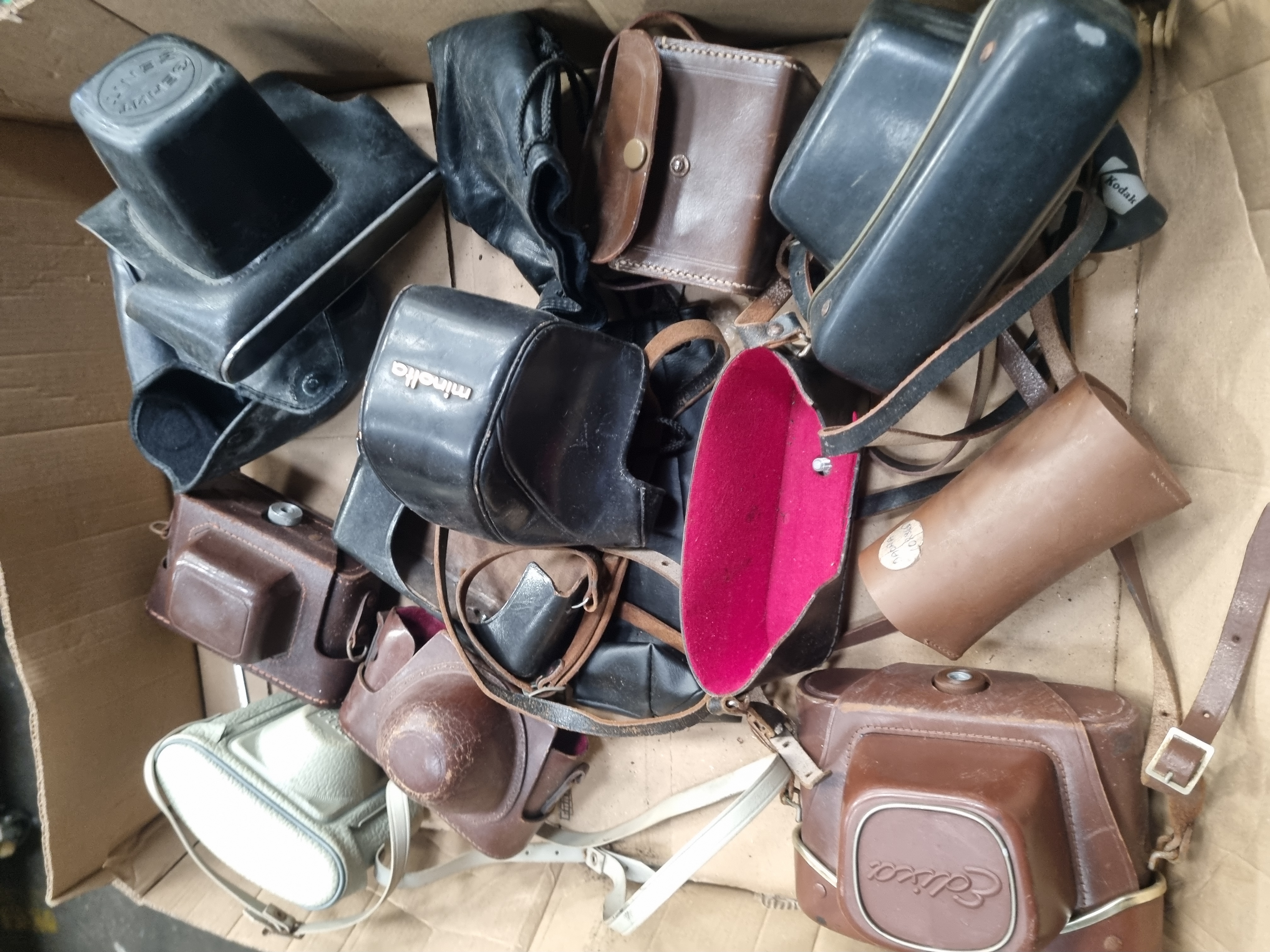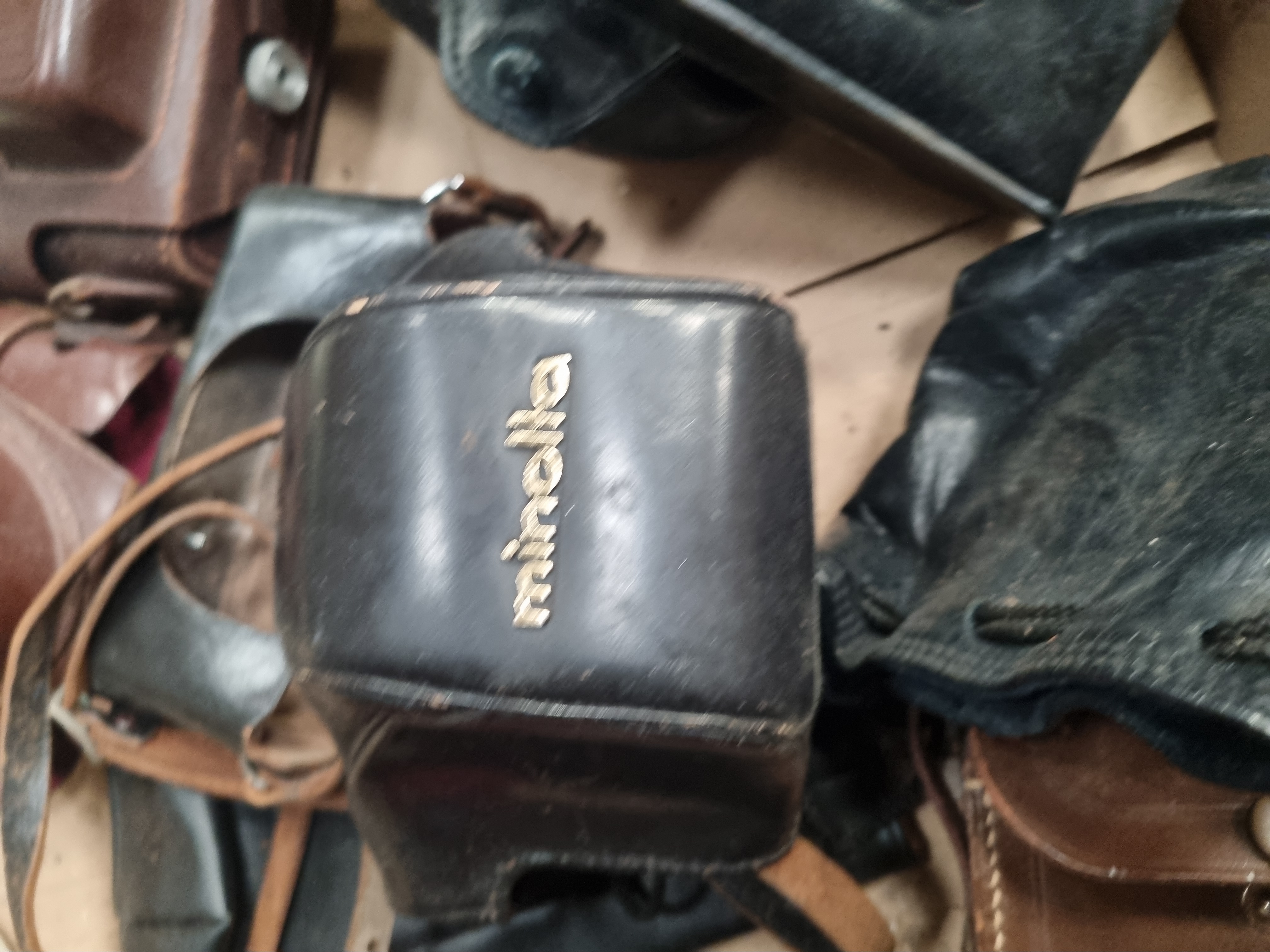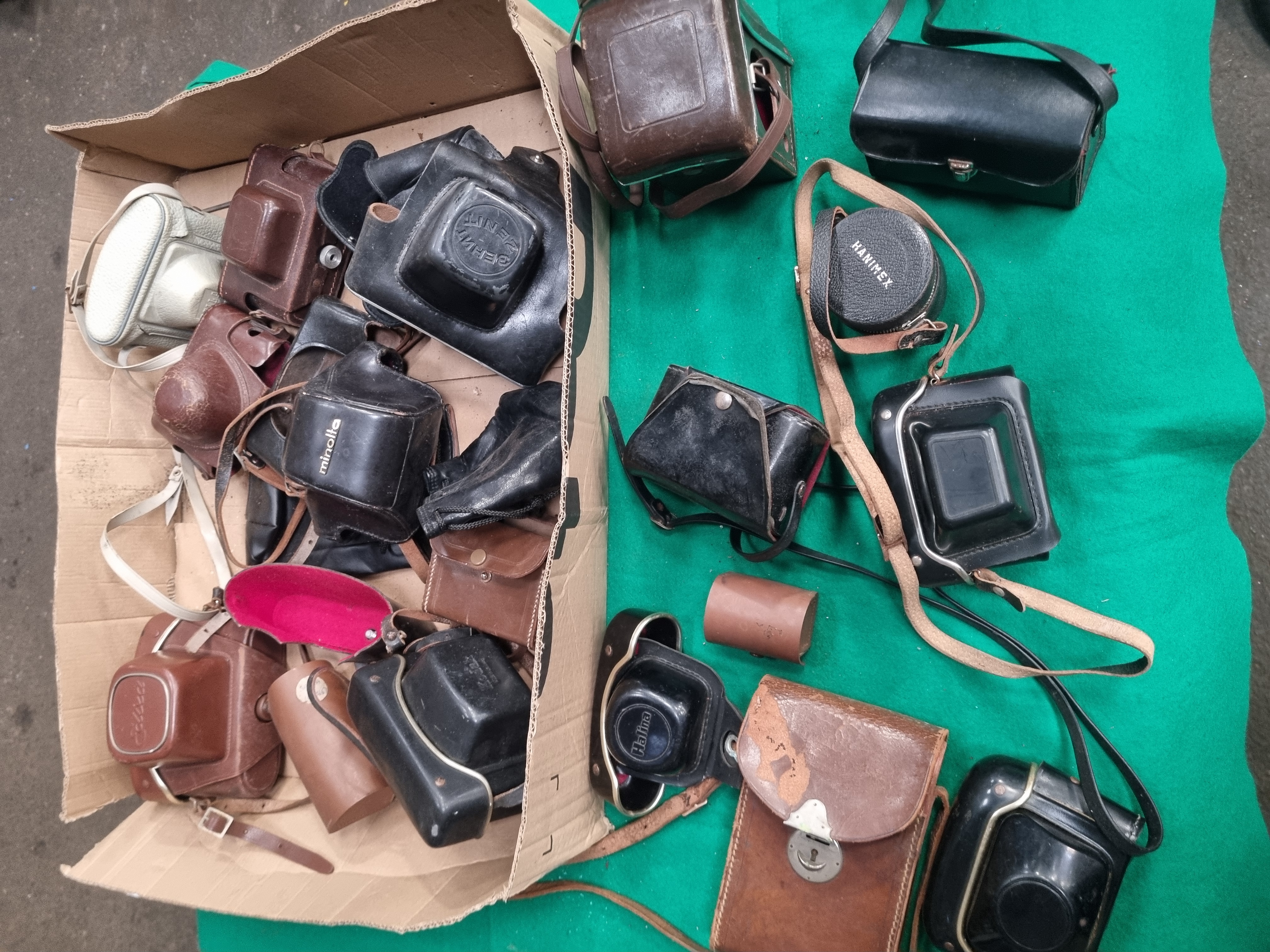 Lot 257: A Collection of Approximately 18-20 Vintage Camera Cases and Accessories Including Zenit, Minolta, and Edixa
