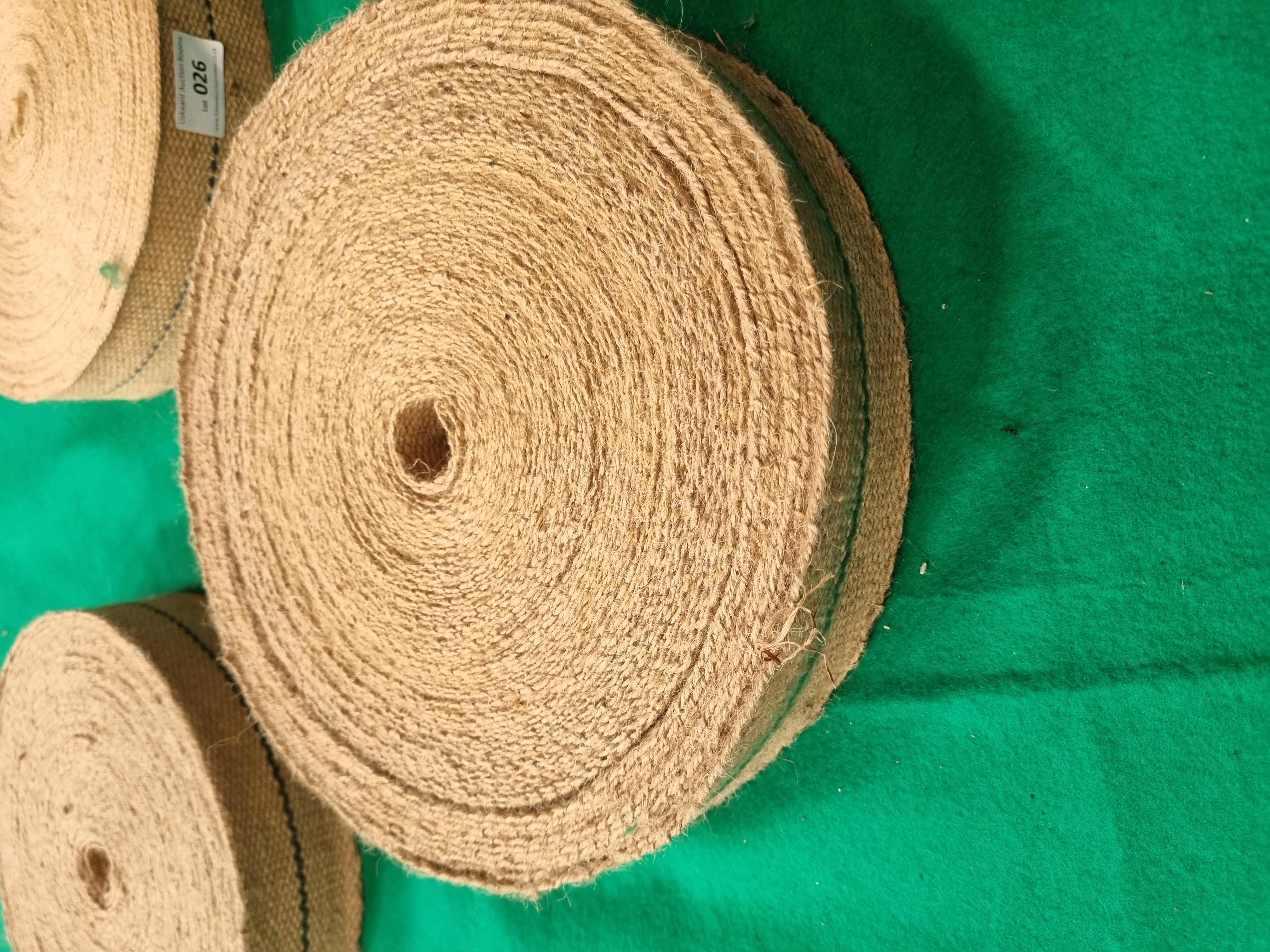 Lot 26: A Trio of Rolls of Jute Upholstery Webbing