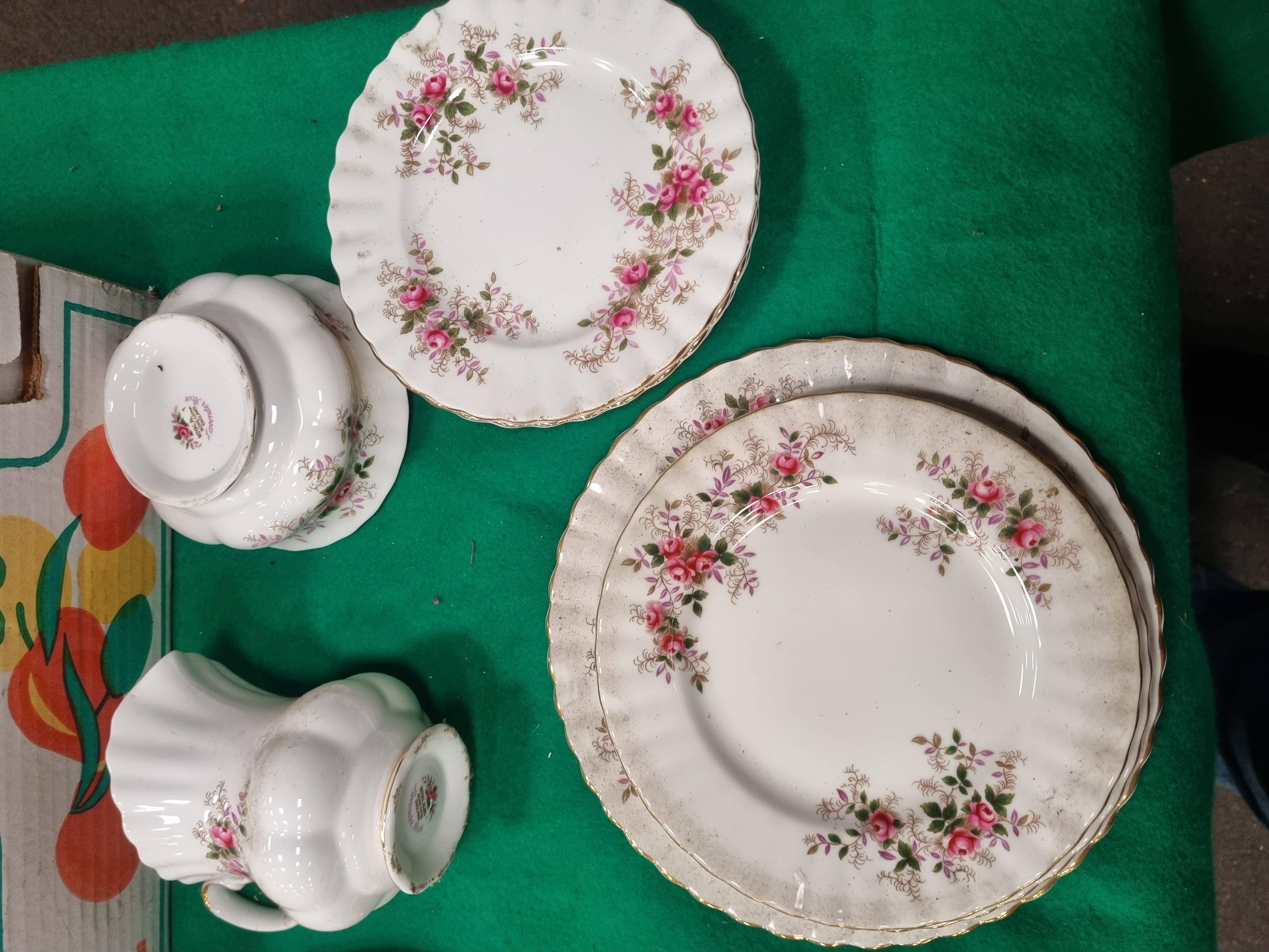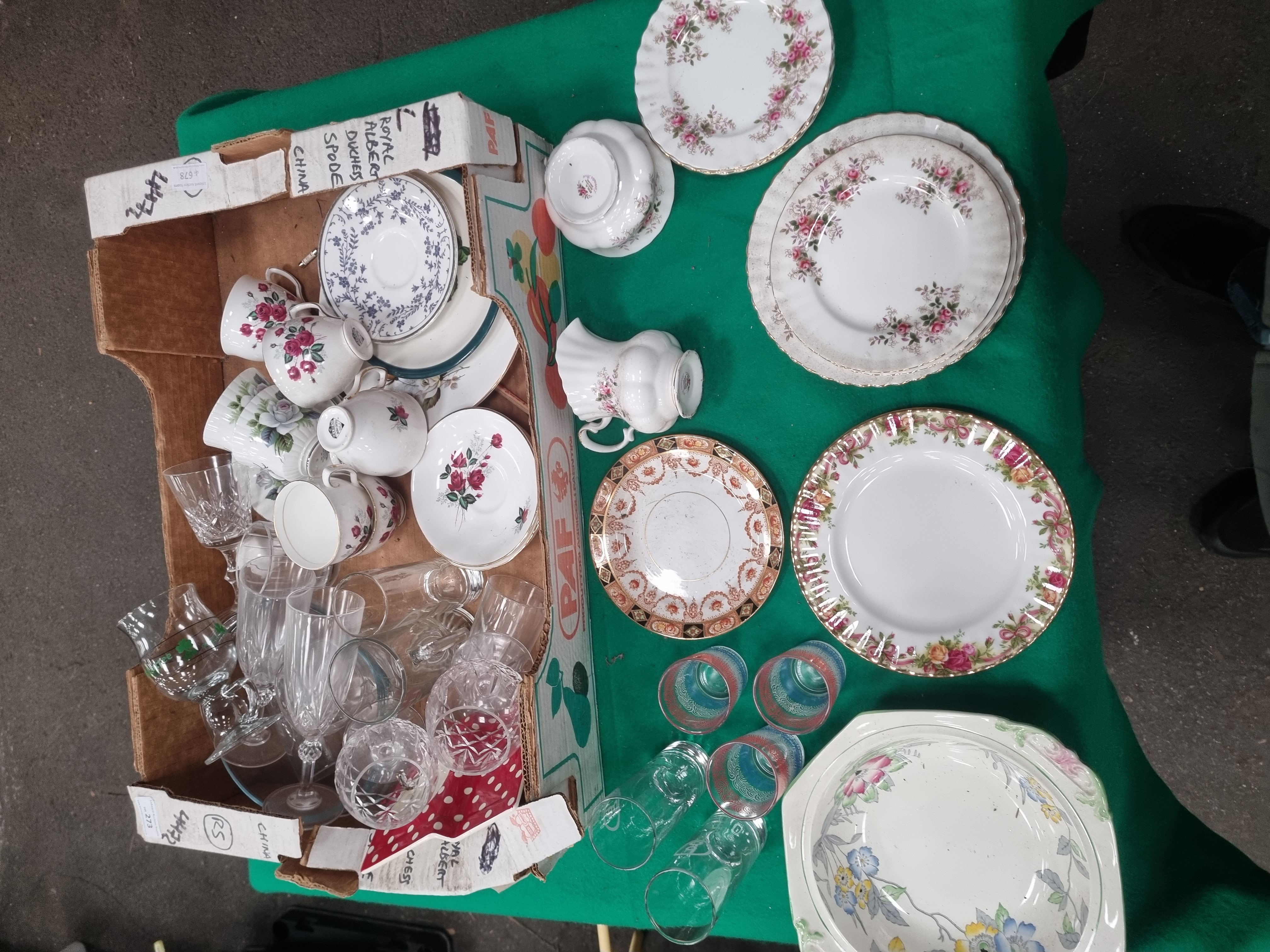 Lot 273: An Assortment of English Bone China including Royal Albert Lavender Rose and Mixed Glassware