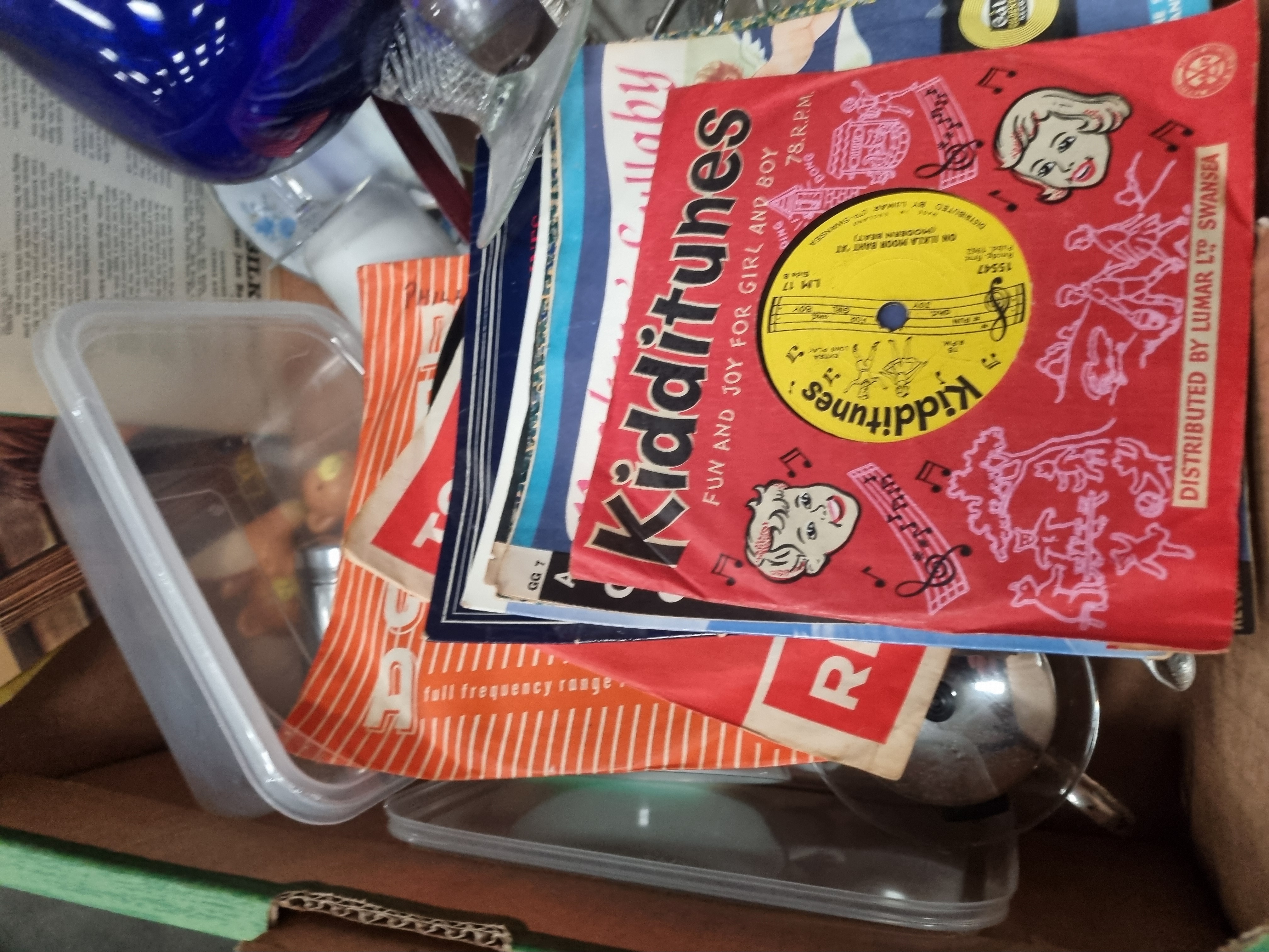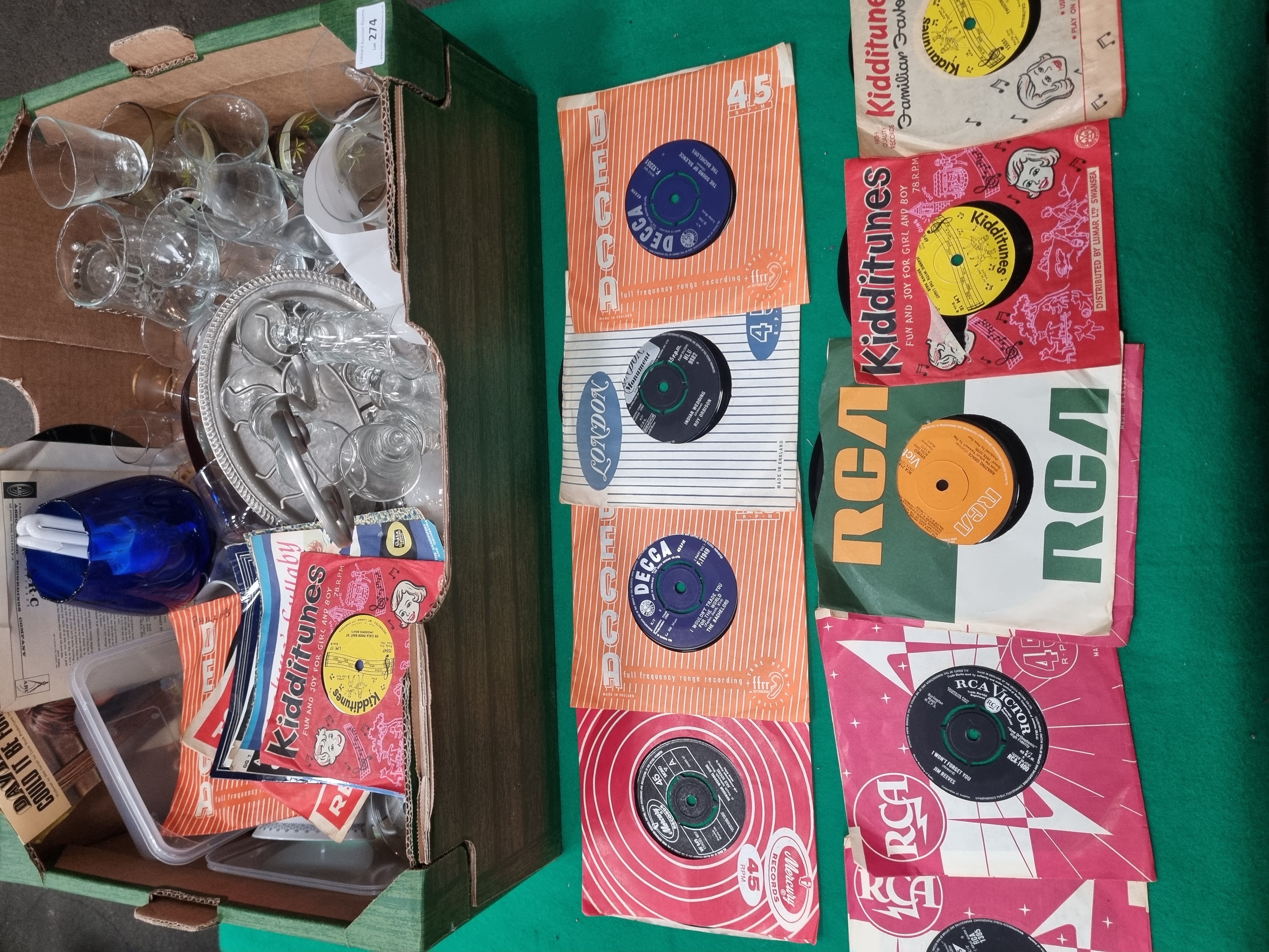 Lot 274: A Collection of Vintage 7-inch Vinyl Records, Decorative Glassware, and Metalware