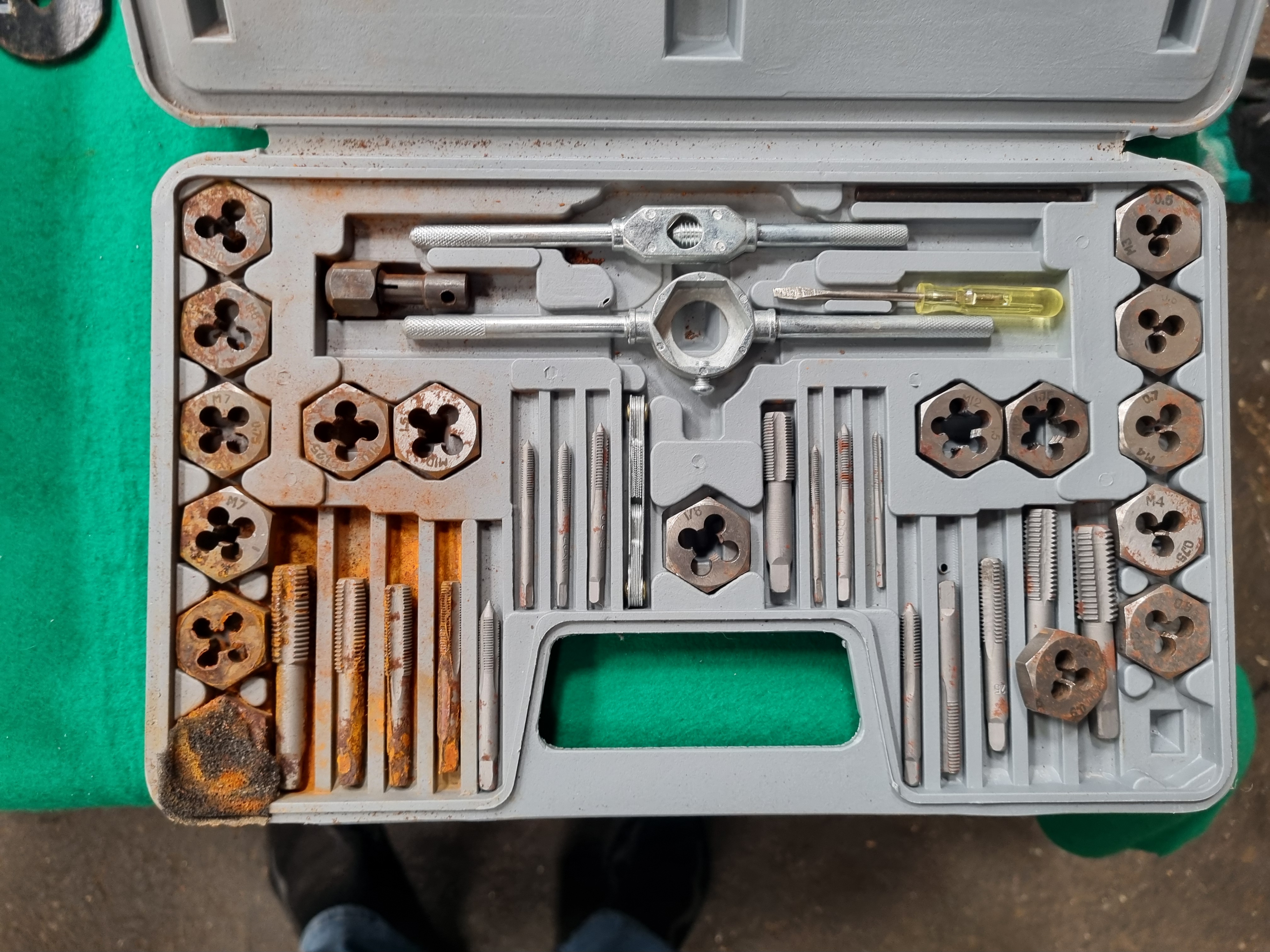 Lot 30: An Assortment of Workshop Tools and Equipment including Nutool Cordless Drill and Tap and Die Set