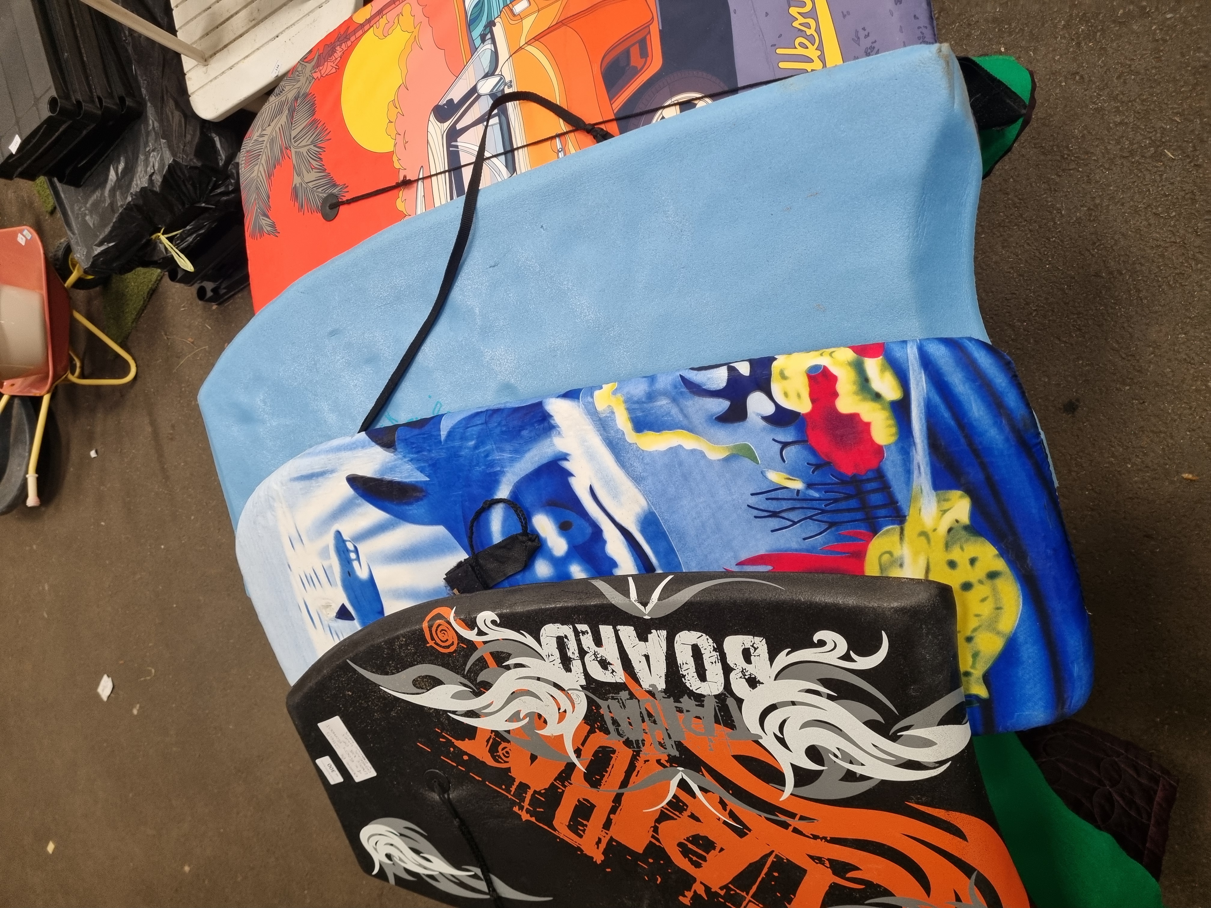 Lot 300: A Collection of Four Bodyboards and Beach Accessories