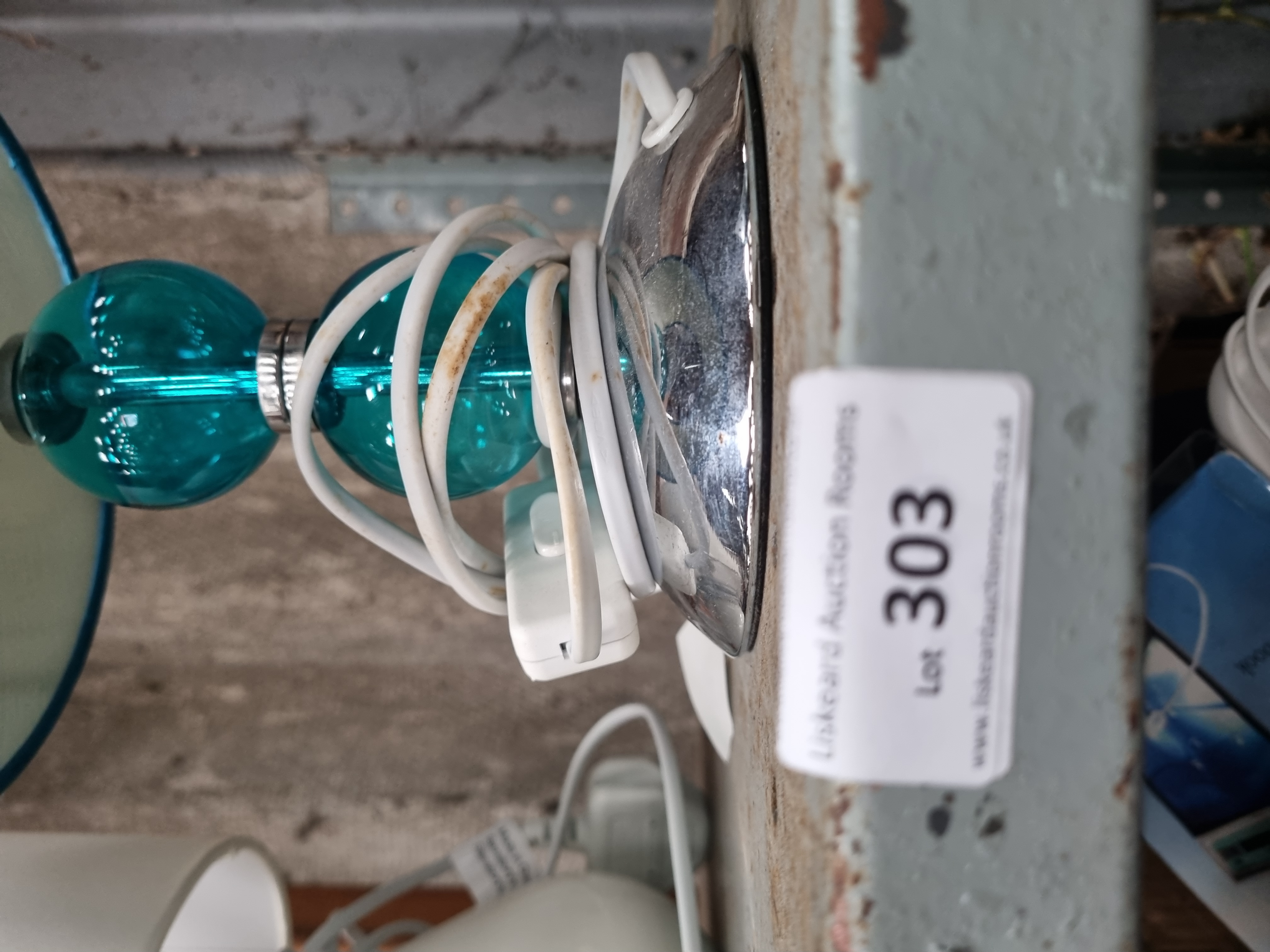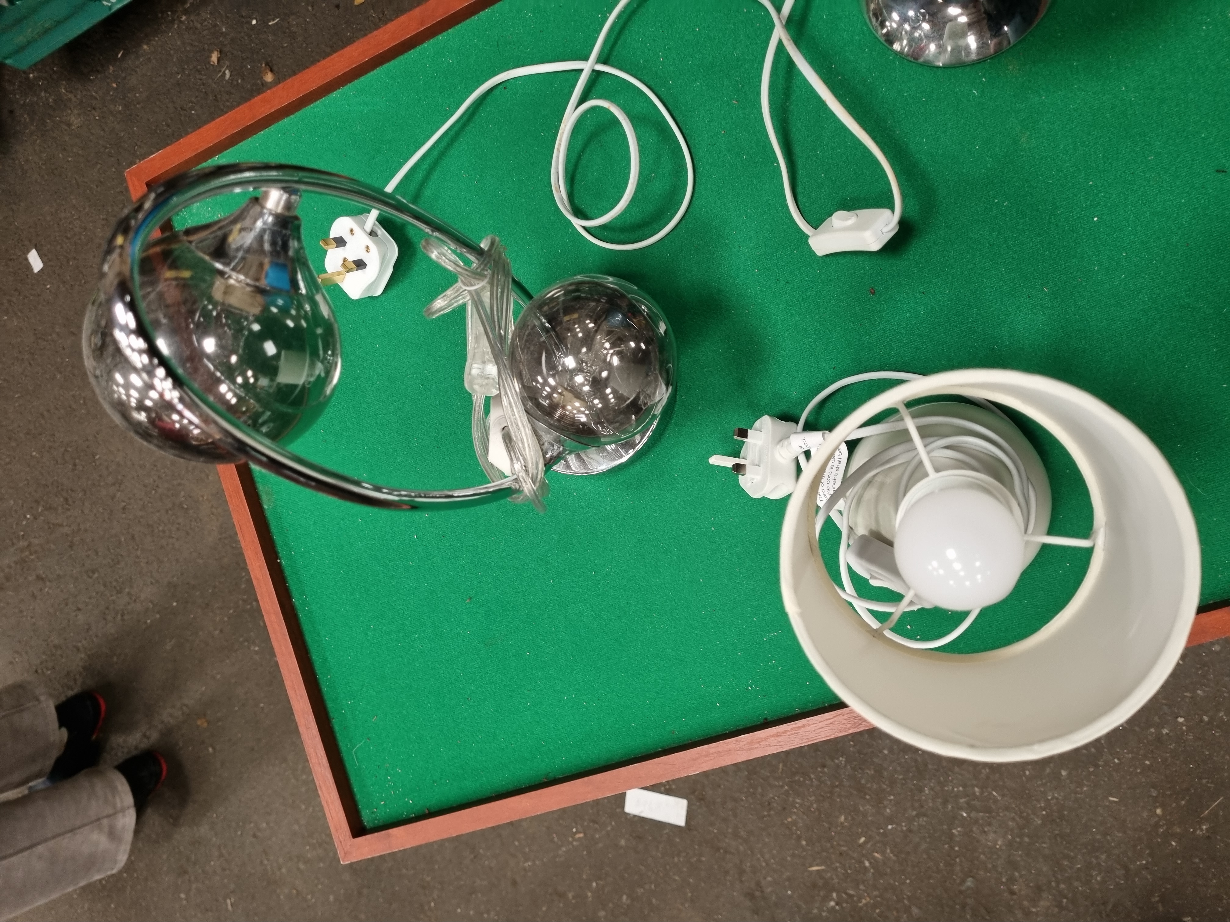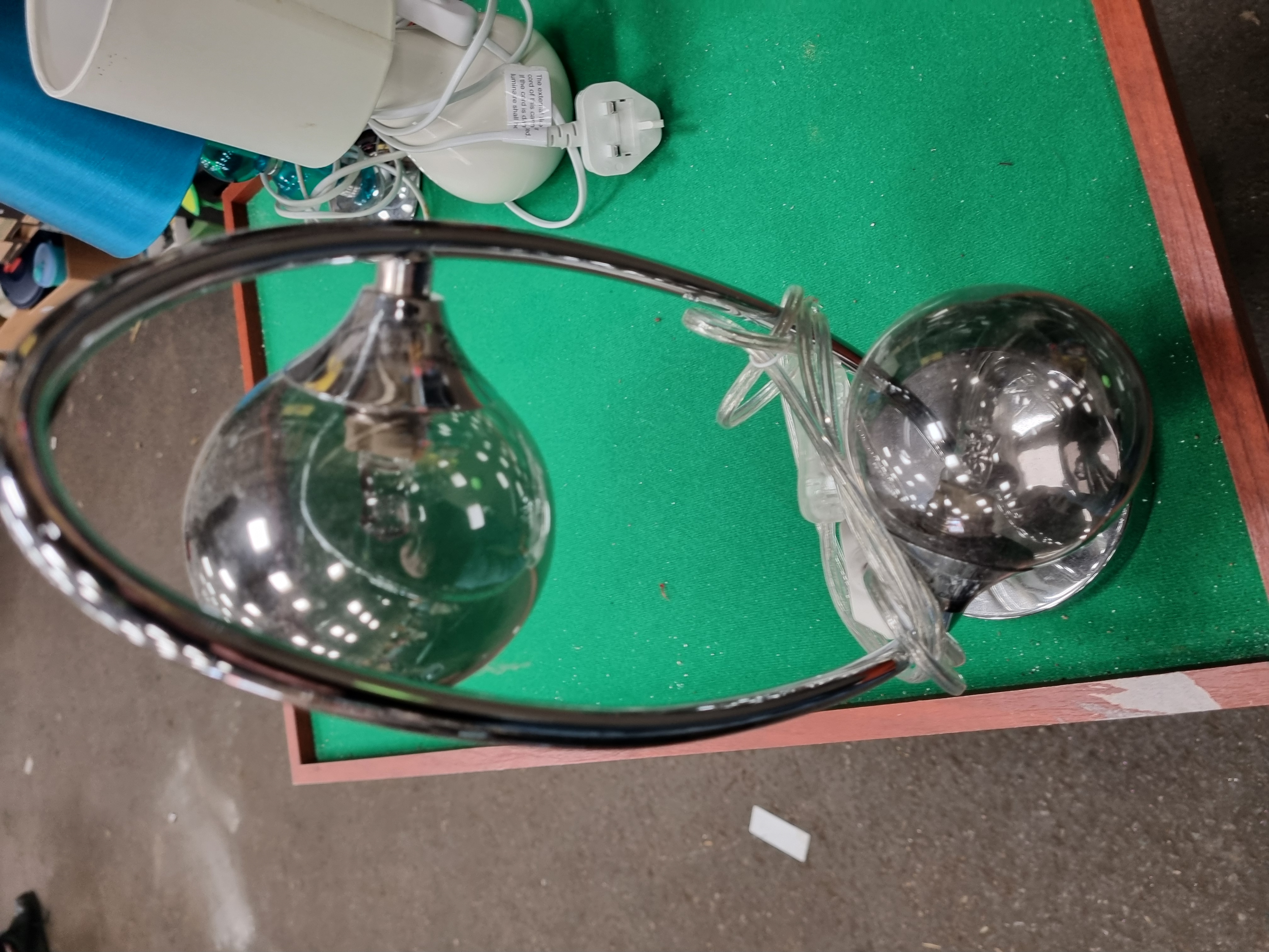 Lot 303: Three contemporary table lamps including a chrome and glass globe lamp in the mid-century modern style