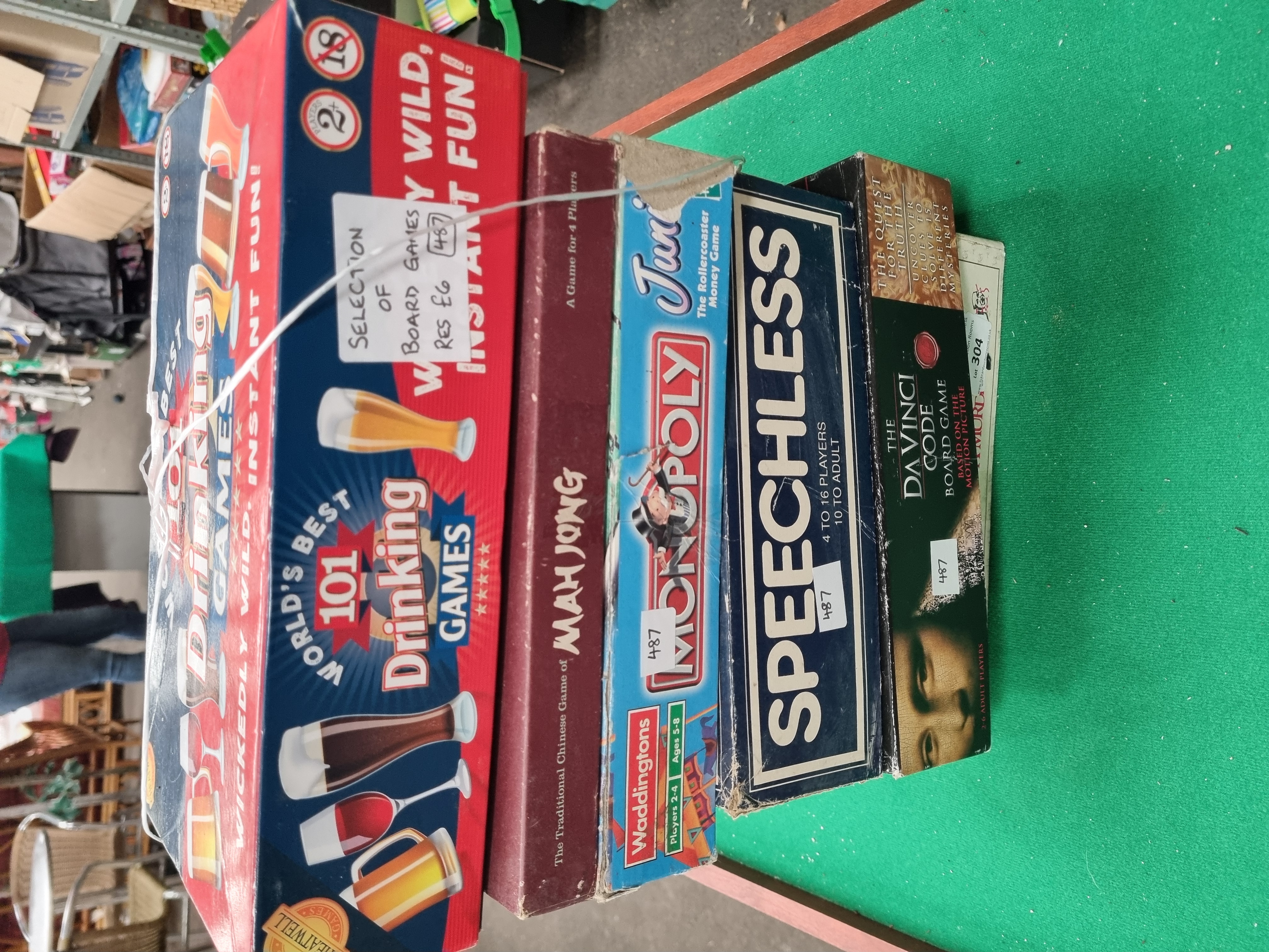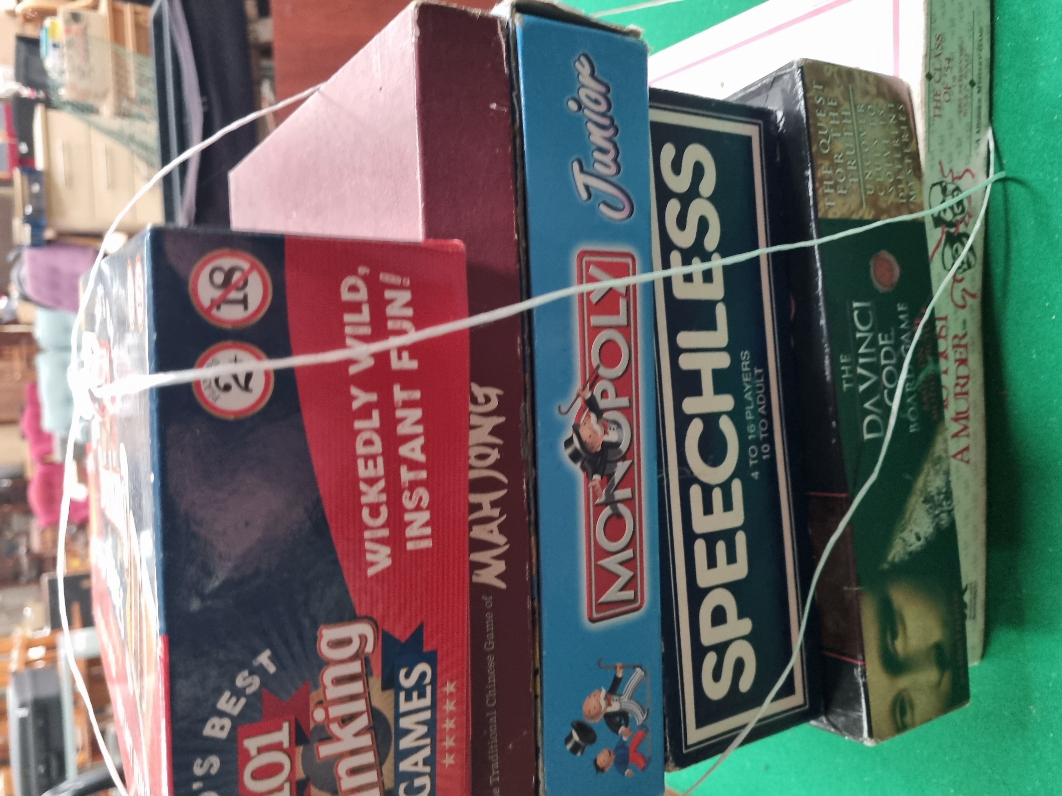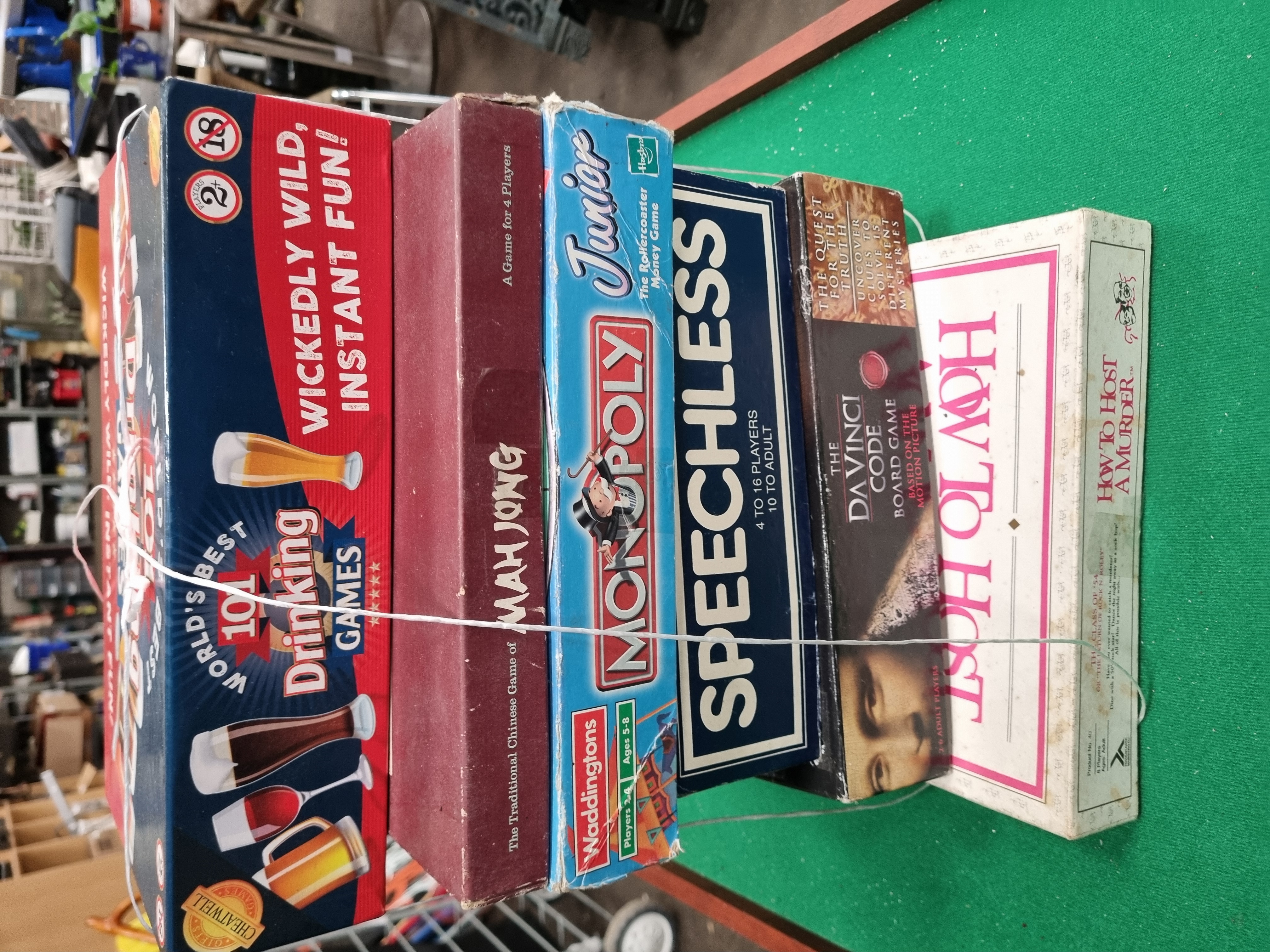 Lot 304: A Selection of Six Assorted Board and Party Games including Monopoly Junior and Mah Jong