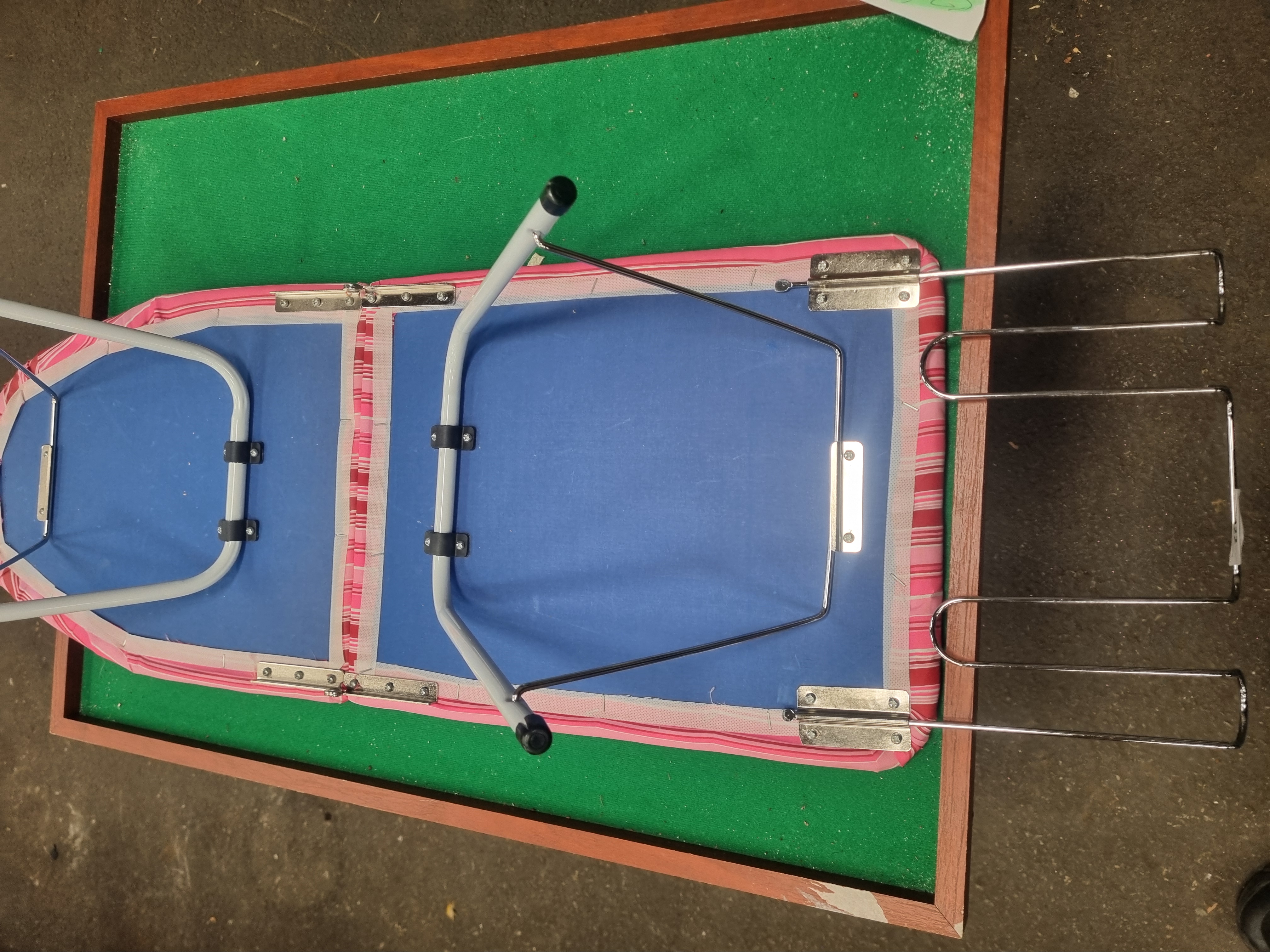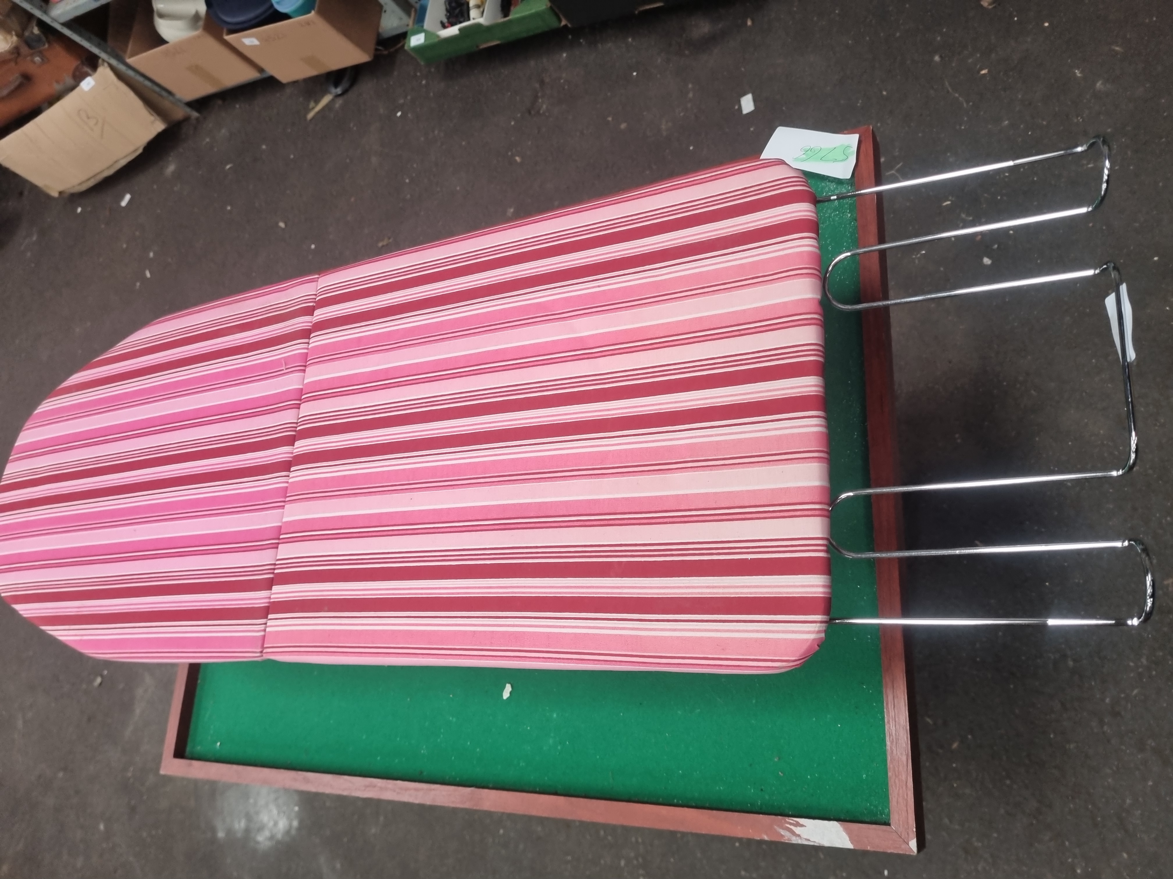 Lot 322: A Folding Tabletop Ironing Board with Striped Fabric Cover
