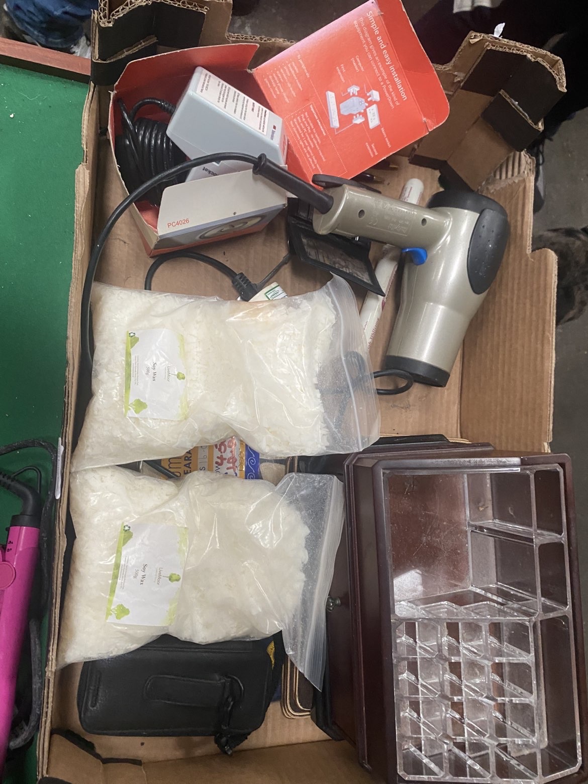 Lot 328: An Assortment of Hair Styling Appliances, Candle Making Supplies, and Vanity Accessories