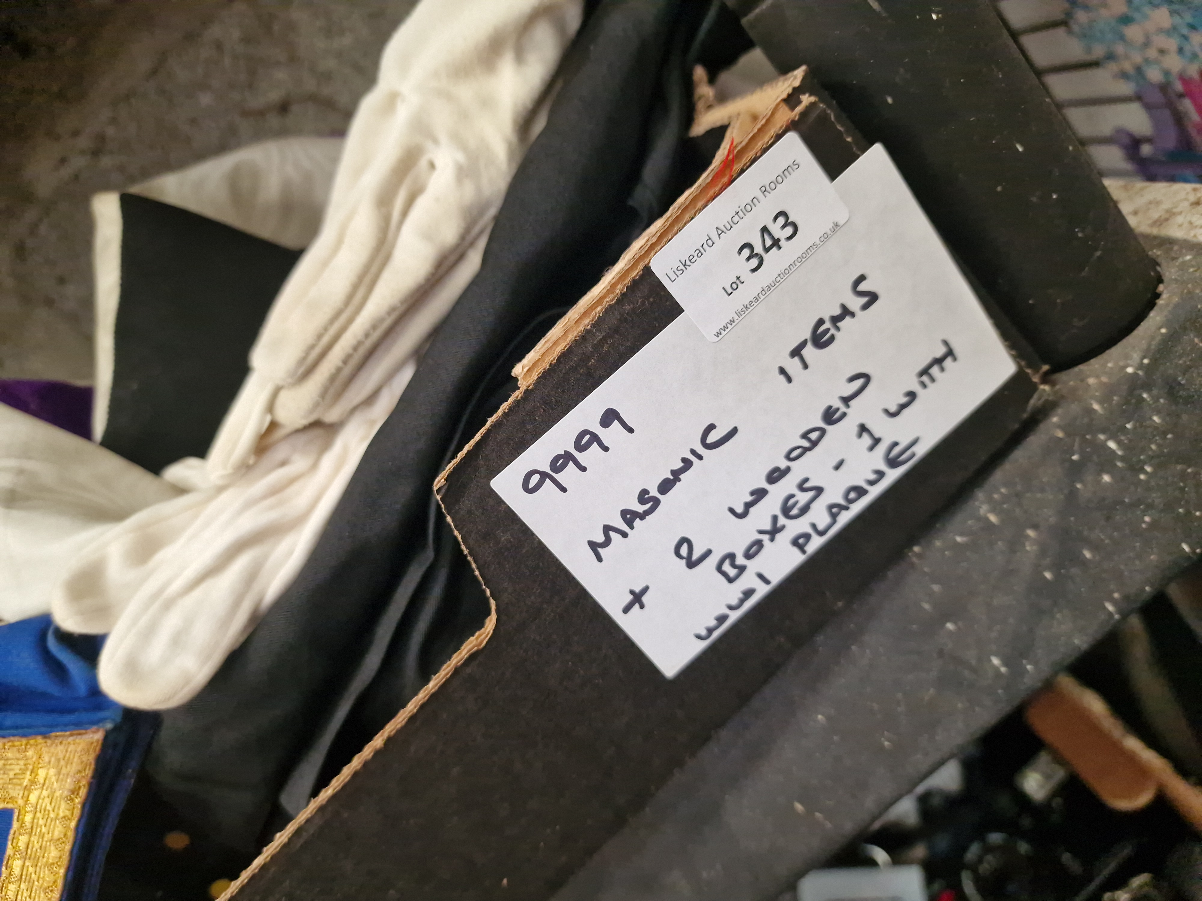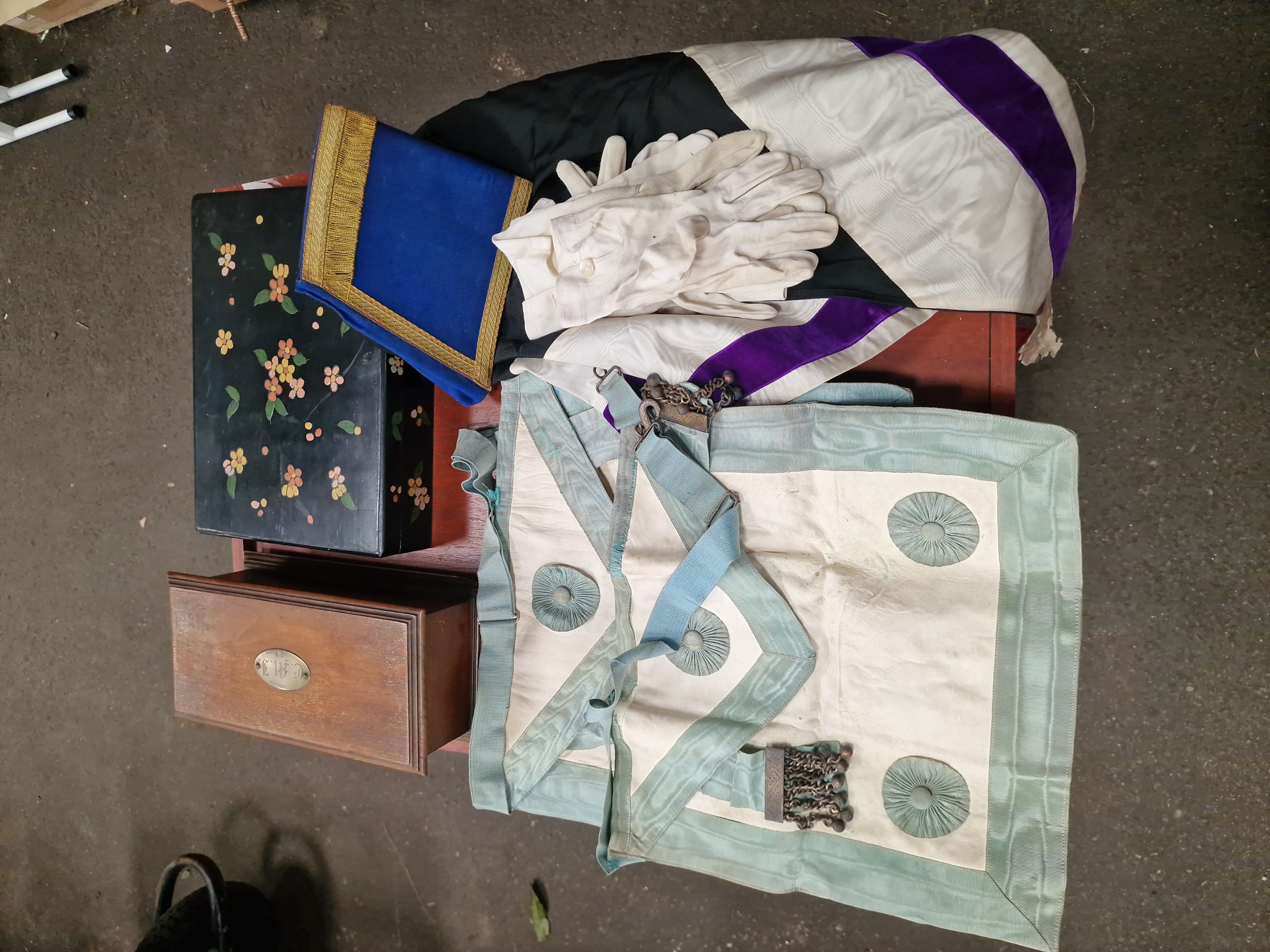 Lot 343: A Collection of Masonic Regalia and Associated Wooden Boxes