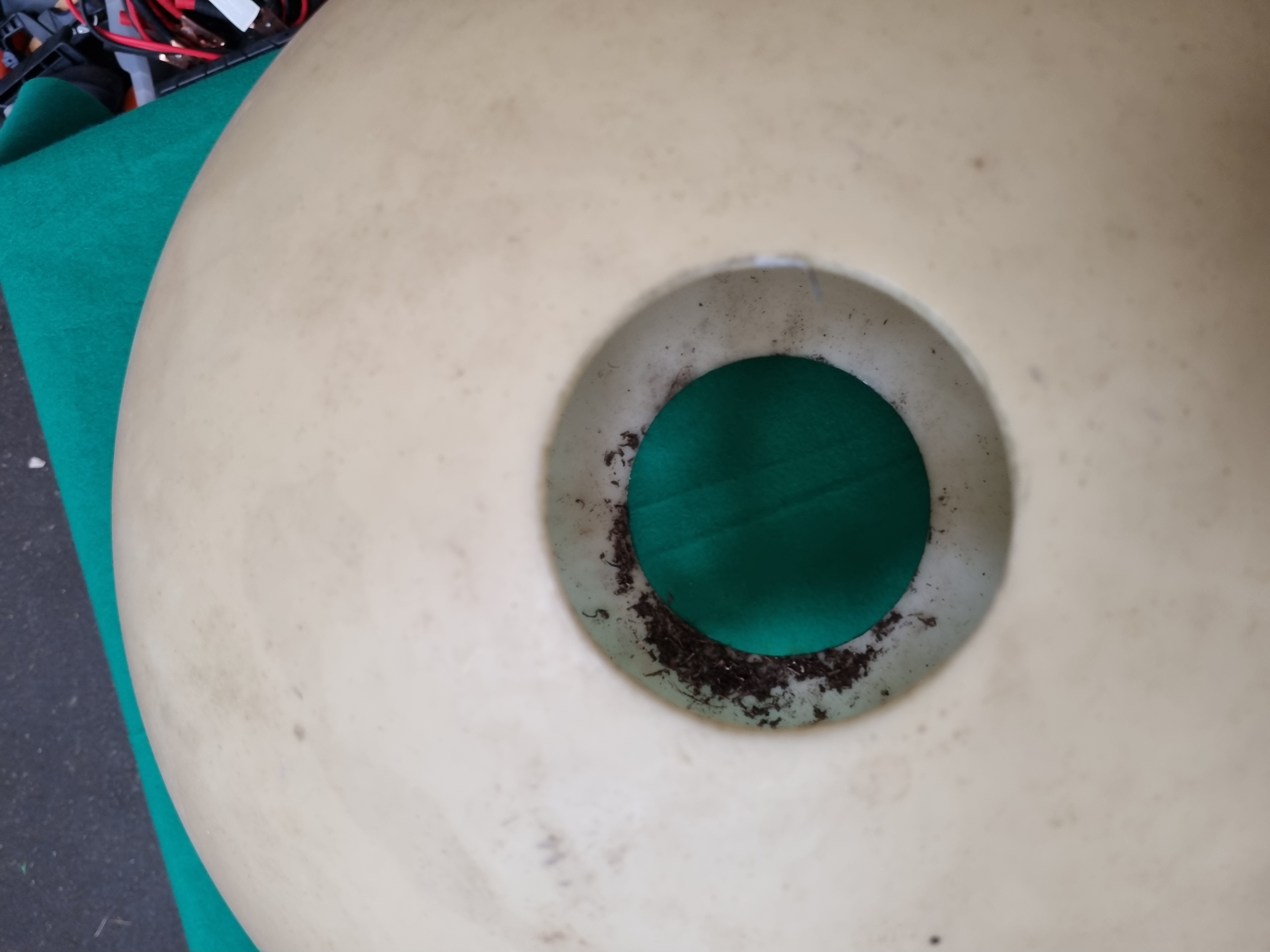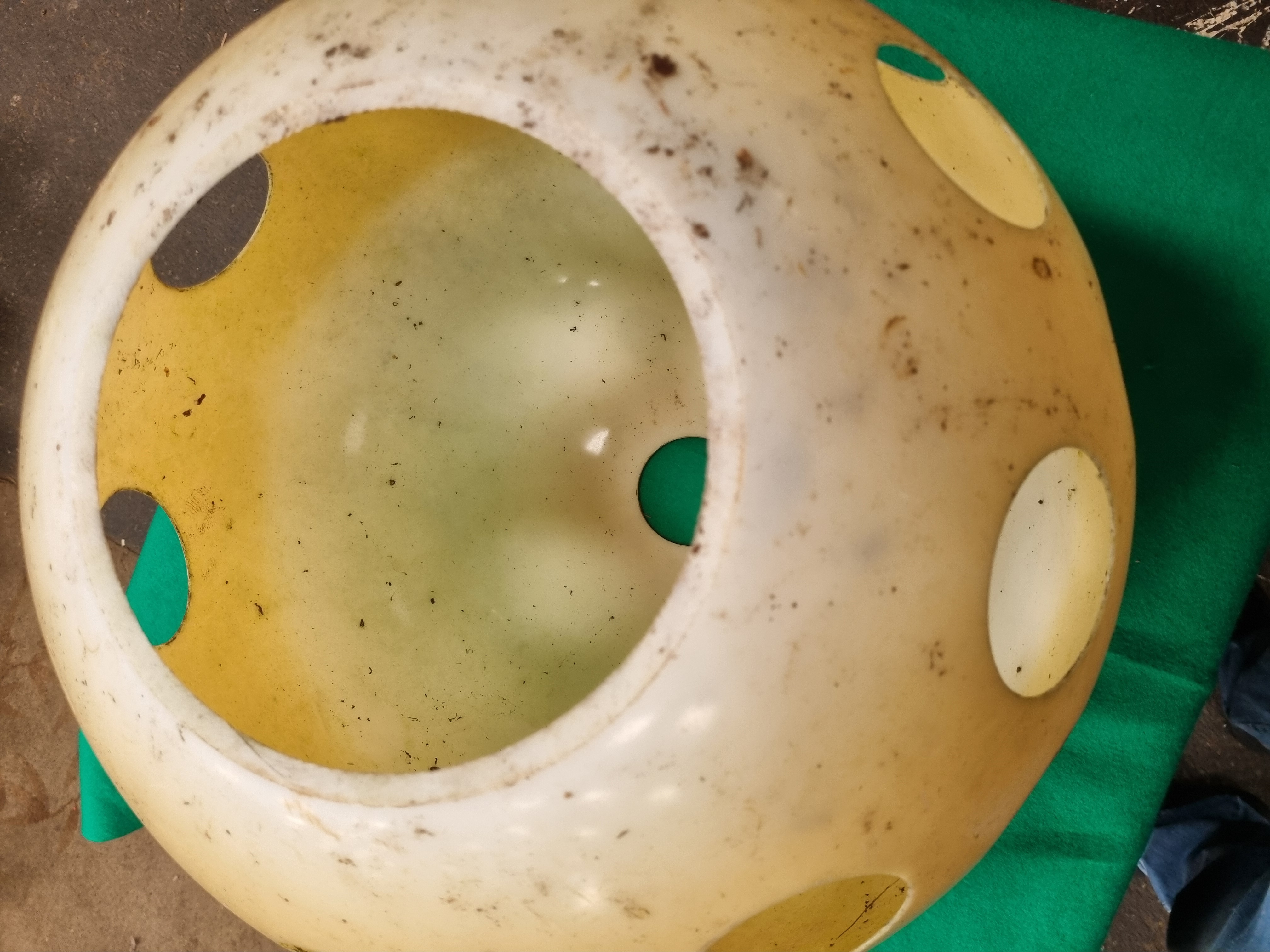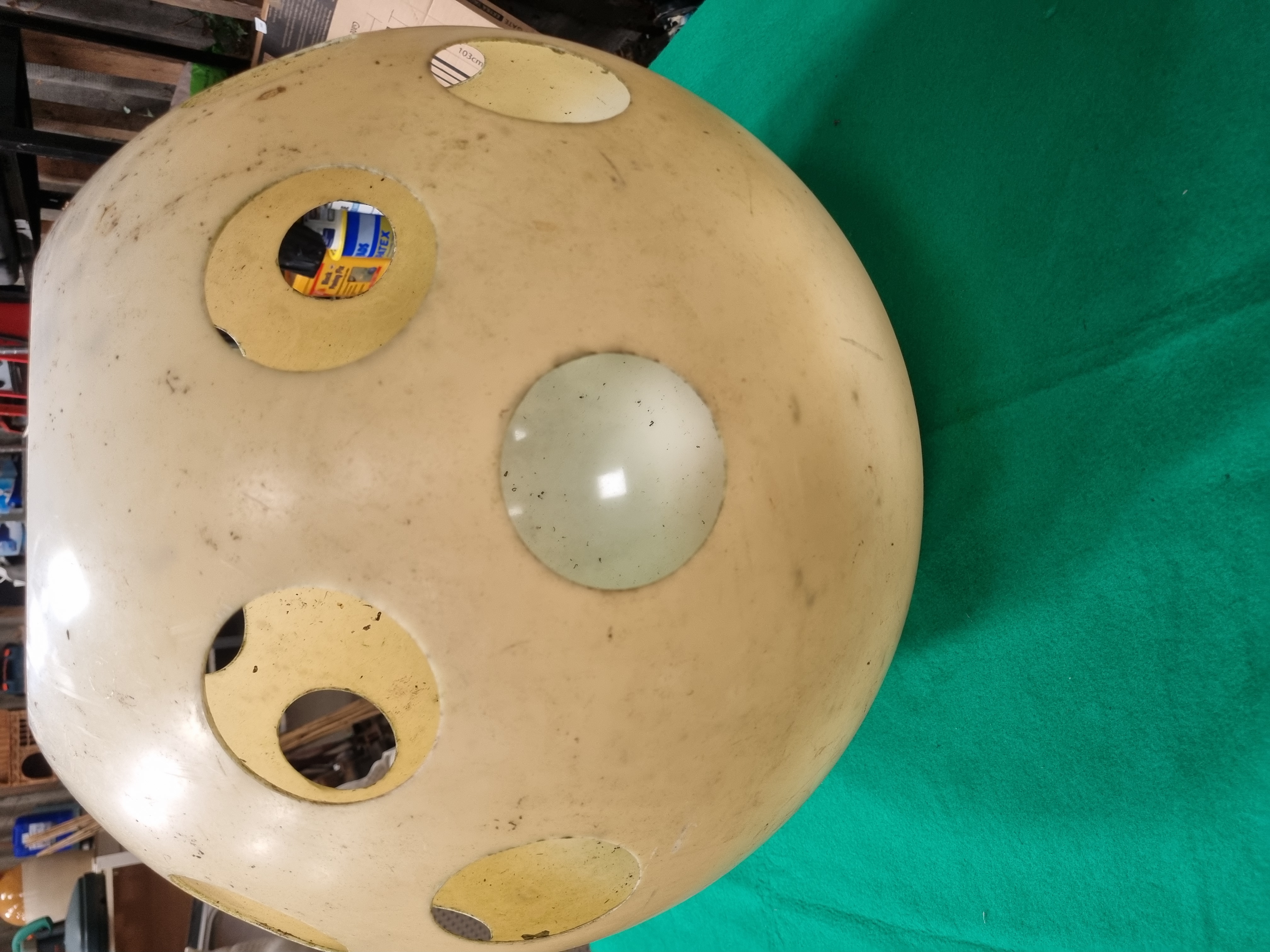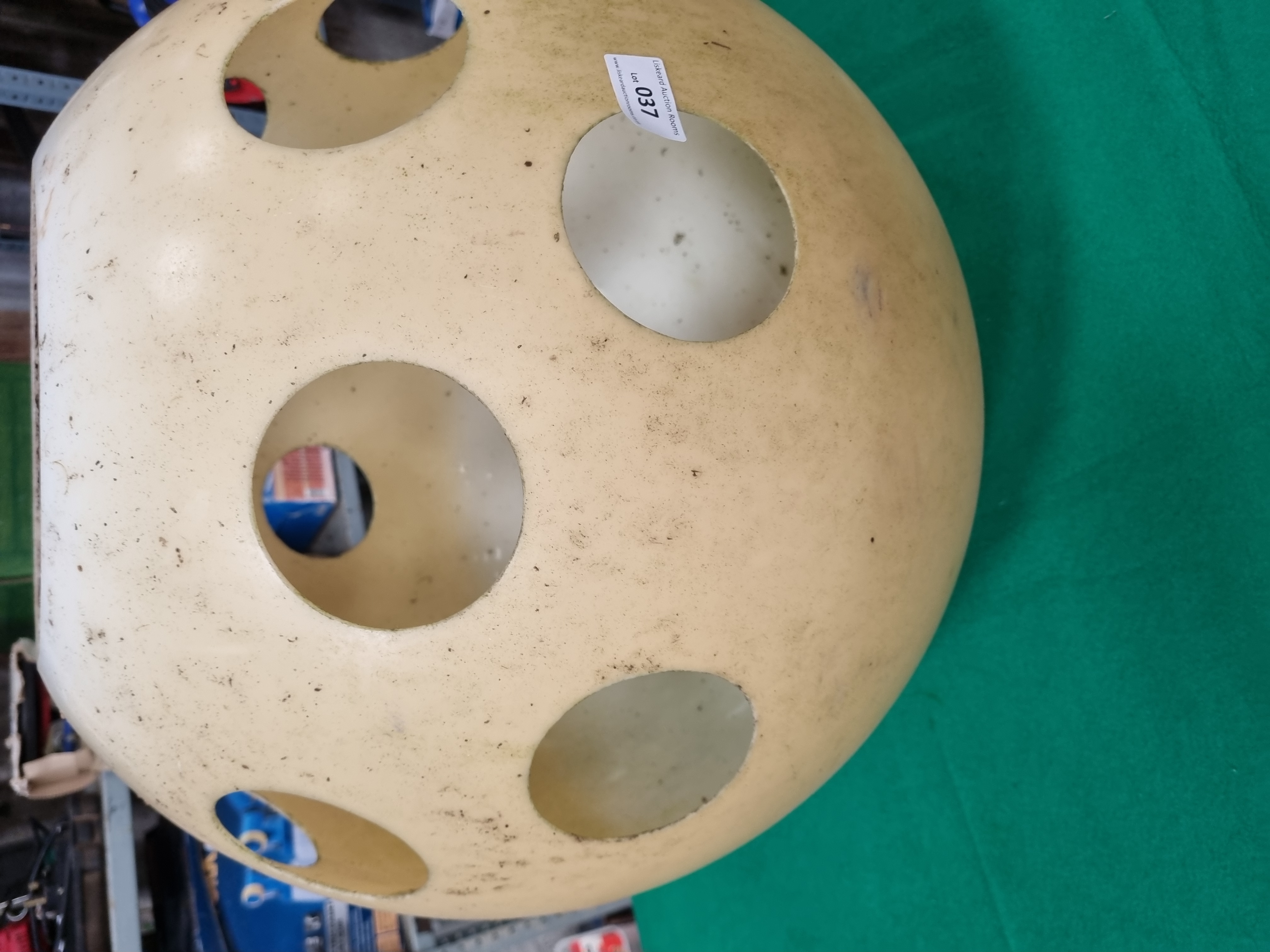Lot 37: A Modernist Cream Plastic Spherical Light Shade or Garden Ornament
