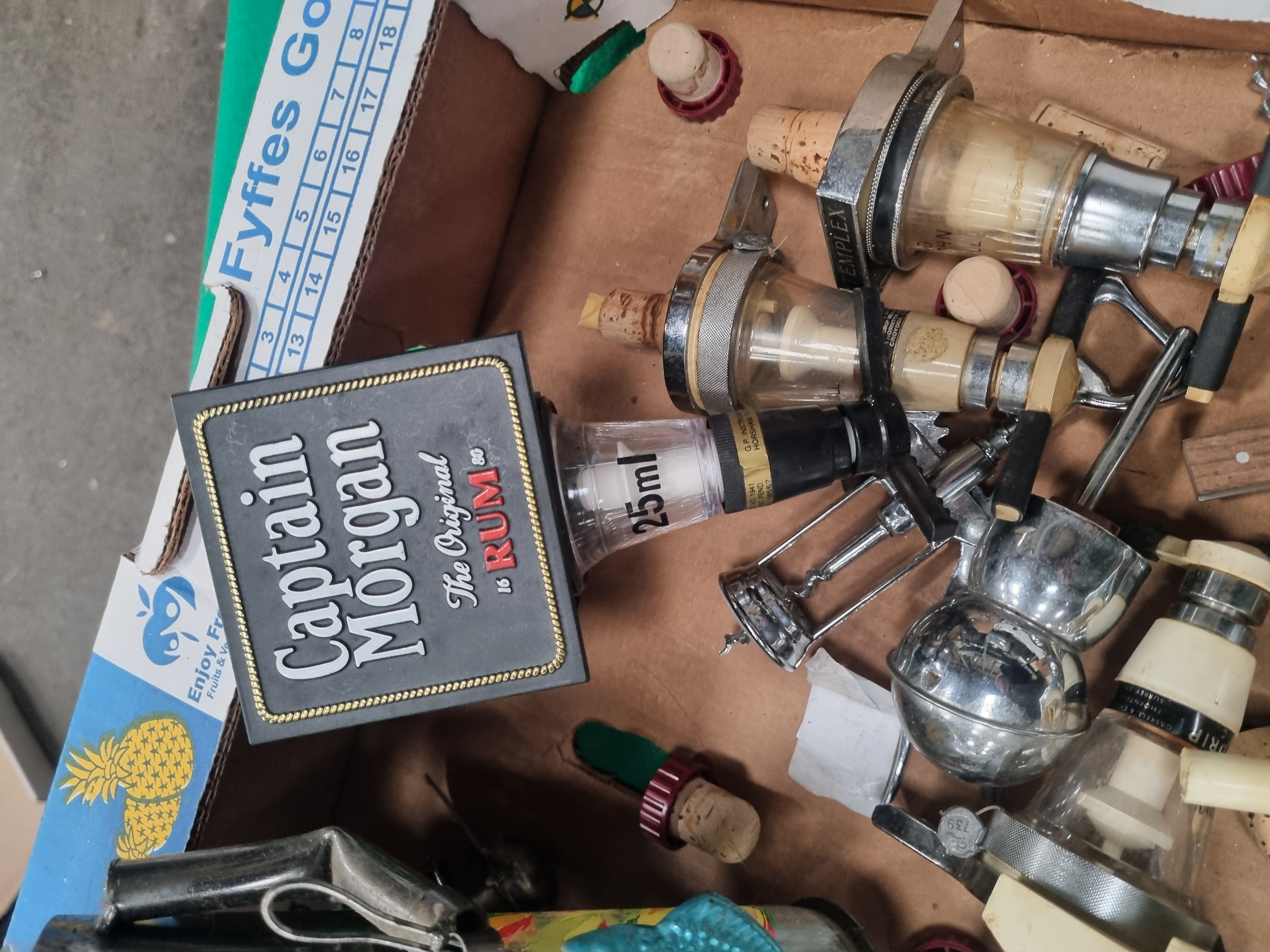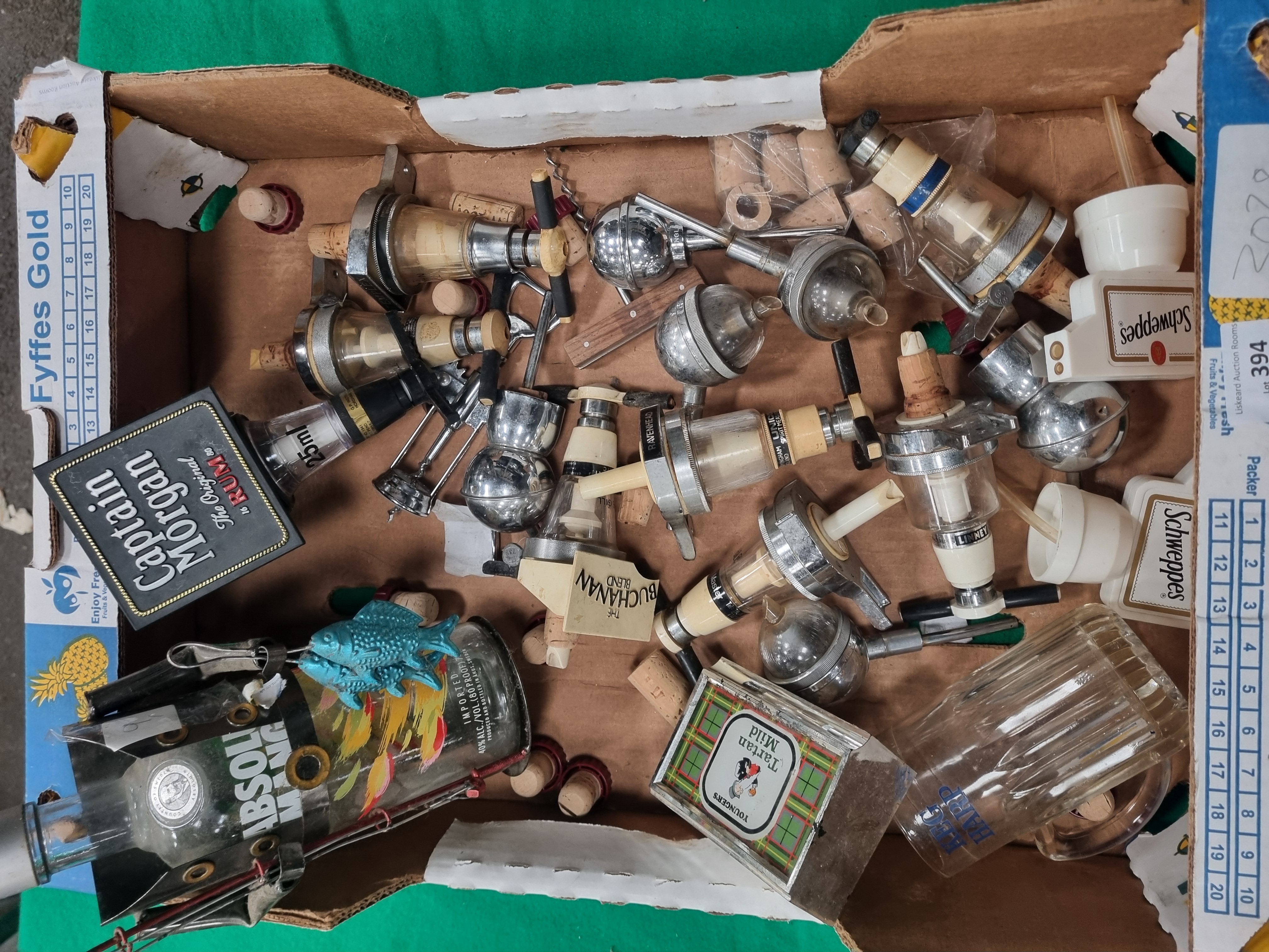 Lot 394: An Assortment of Vintage British Pub Spirit Optics and Barware including Captain Morgan and Schweppes