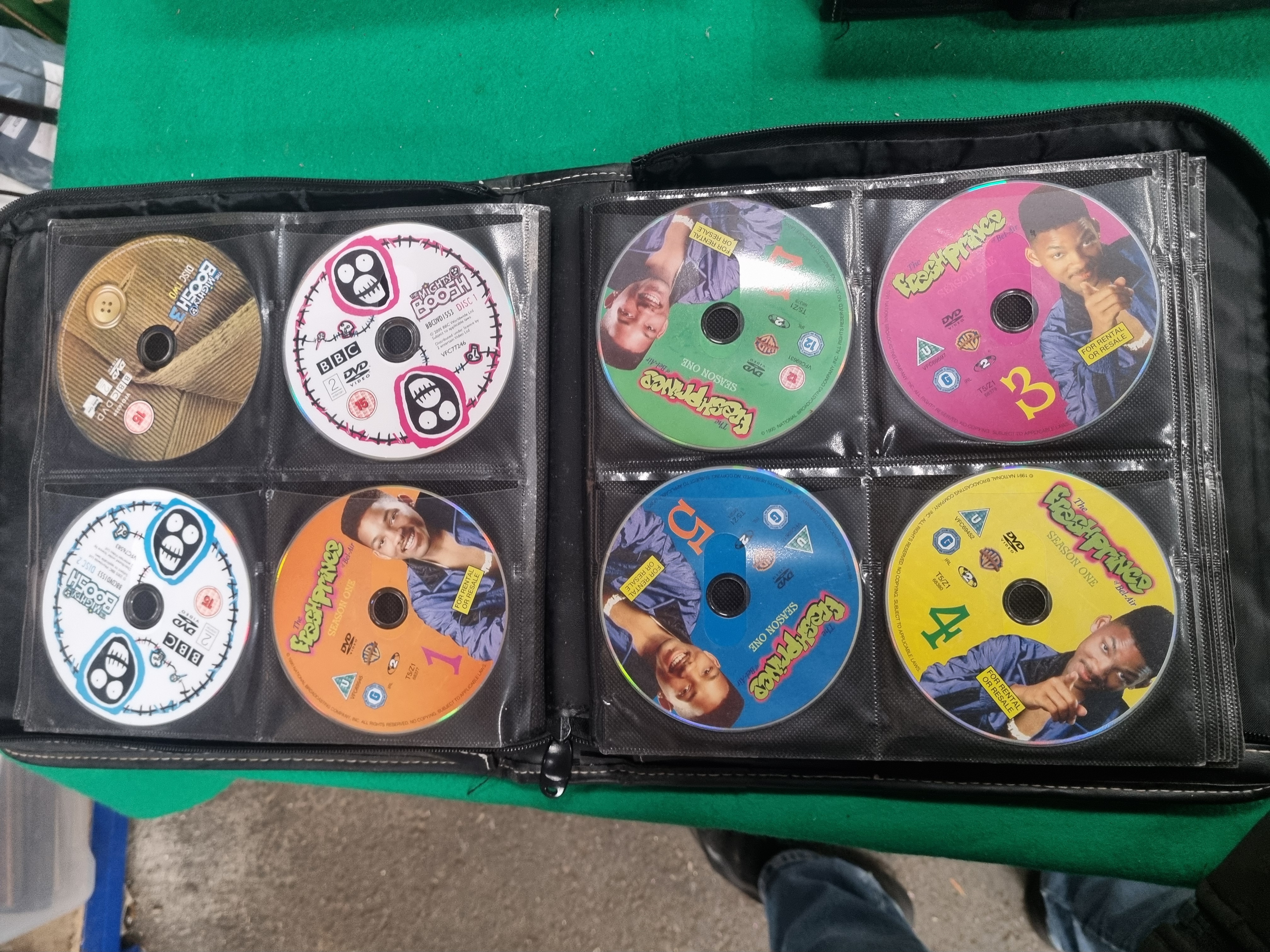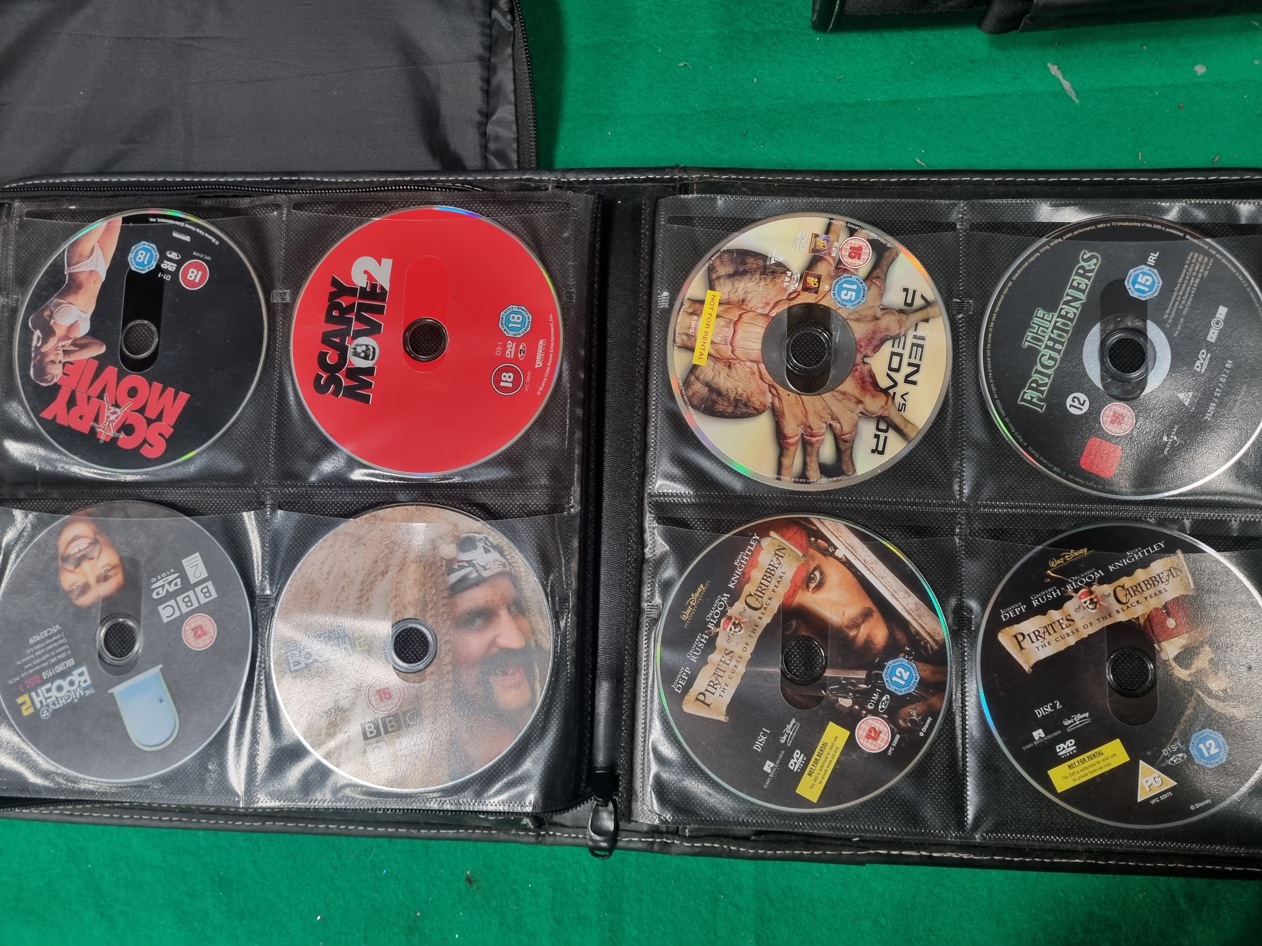 Lot 405: A Collection of Assorted Film and Television DVDs in a Zippered Storage Binder
