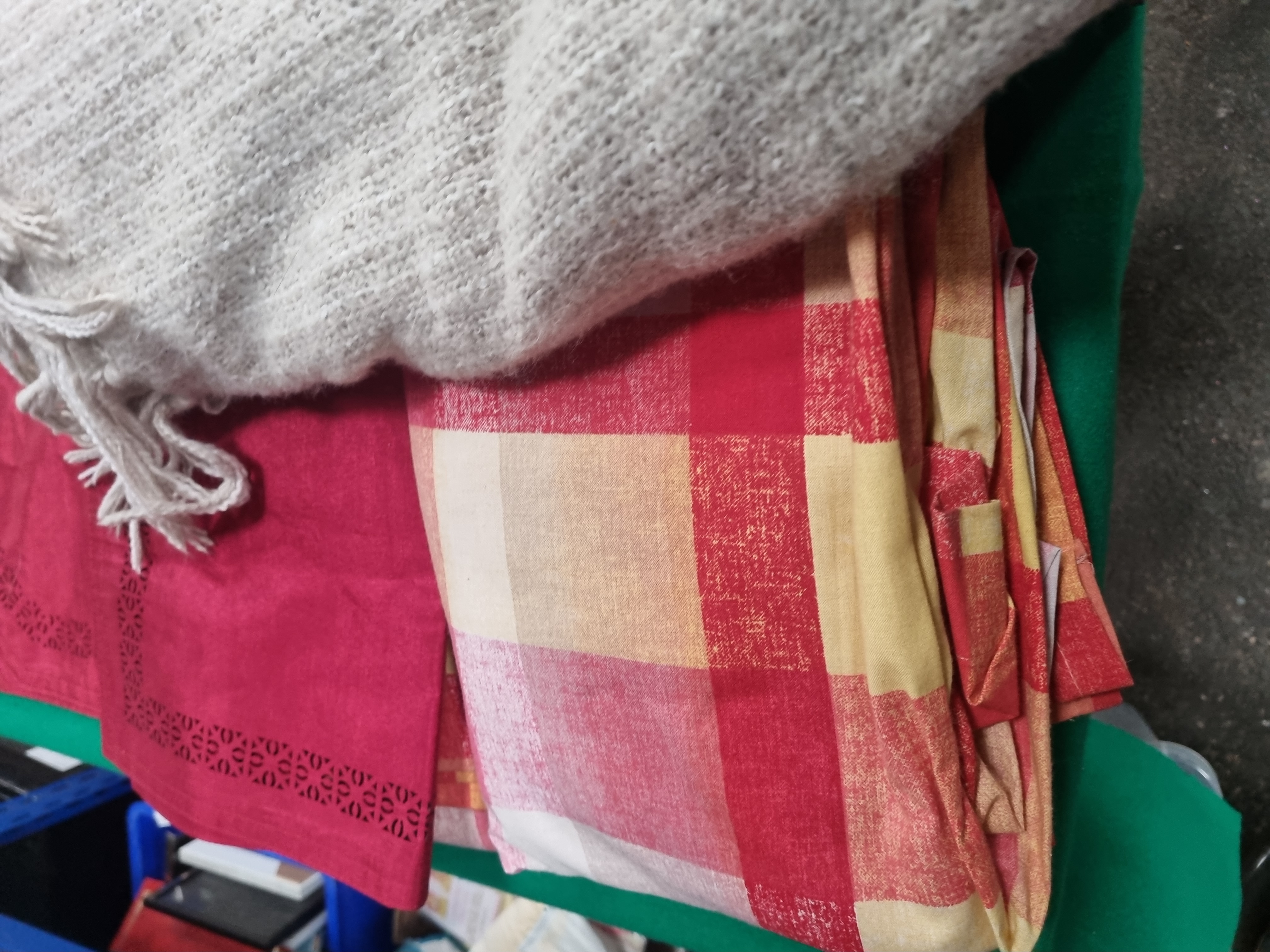 Lot 425: A Group of Assorted Household Textiles and a Wicker Basket