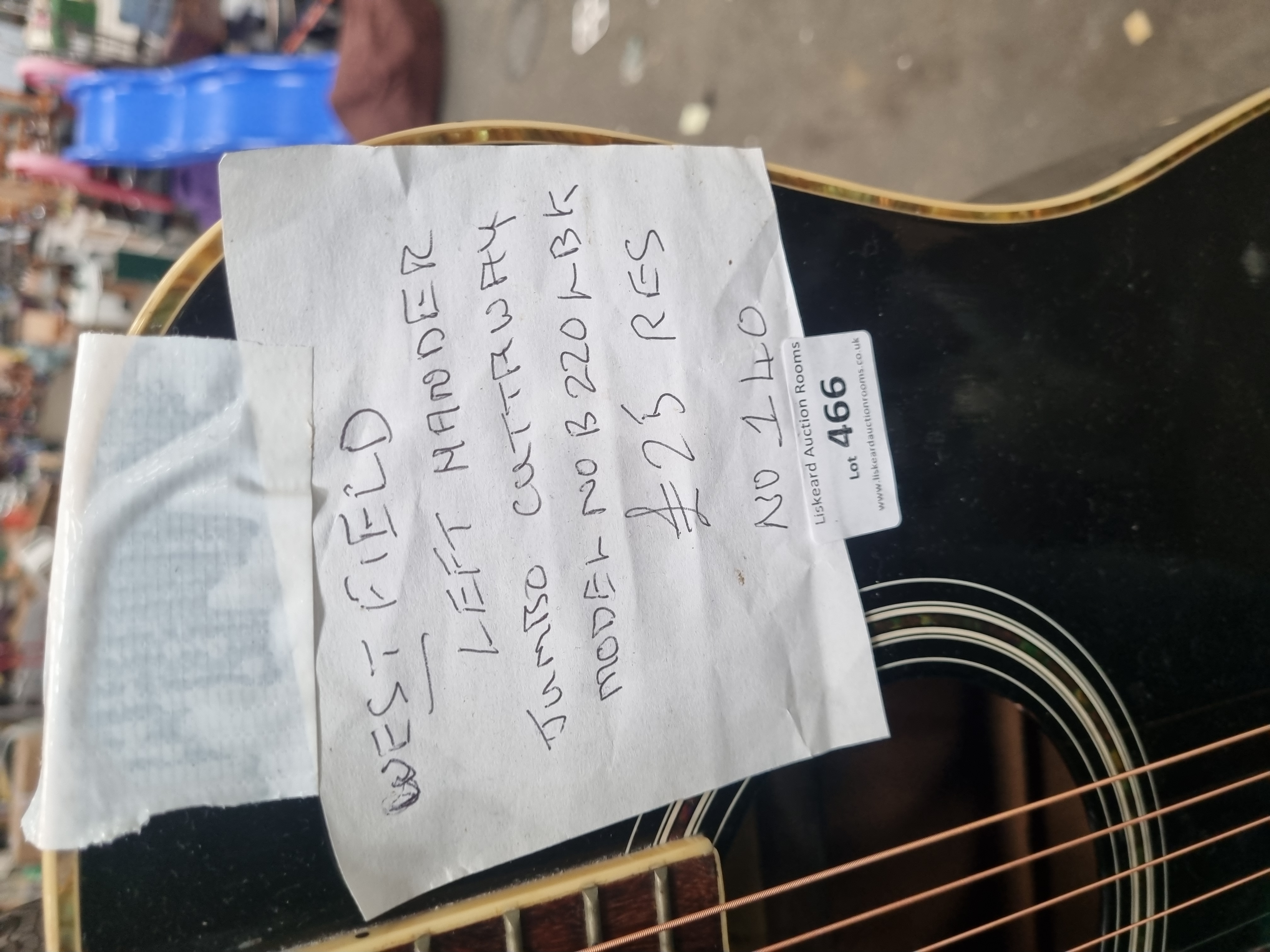 Lot 466: A Westfield B220CBK Left-Handed Jumbo Cutaway Acoustic Guitar