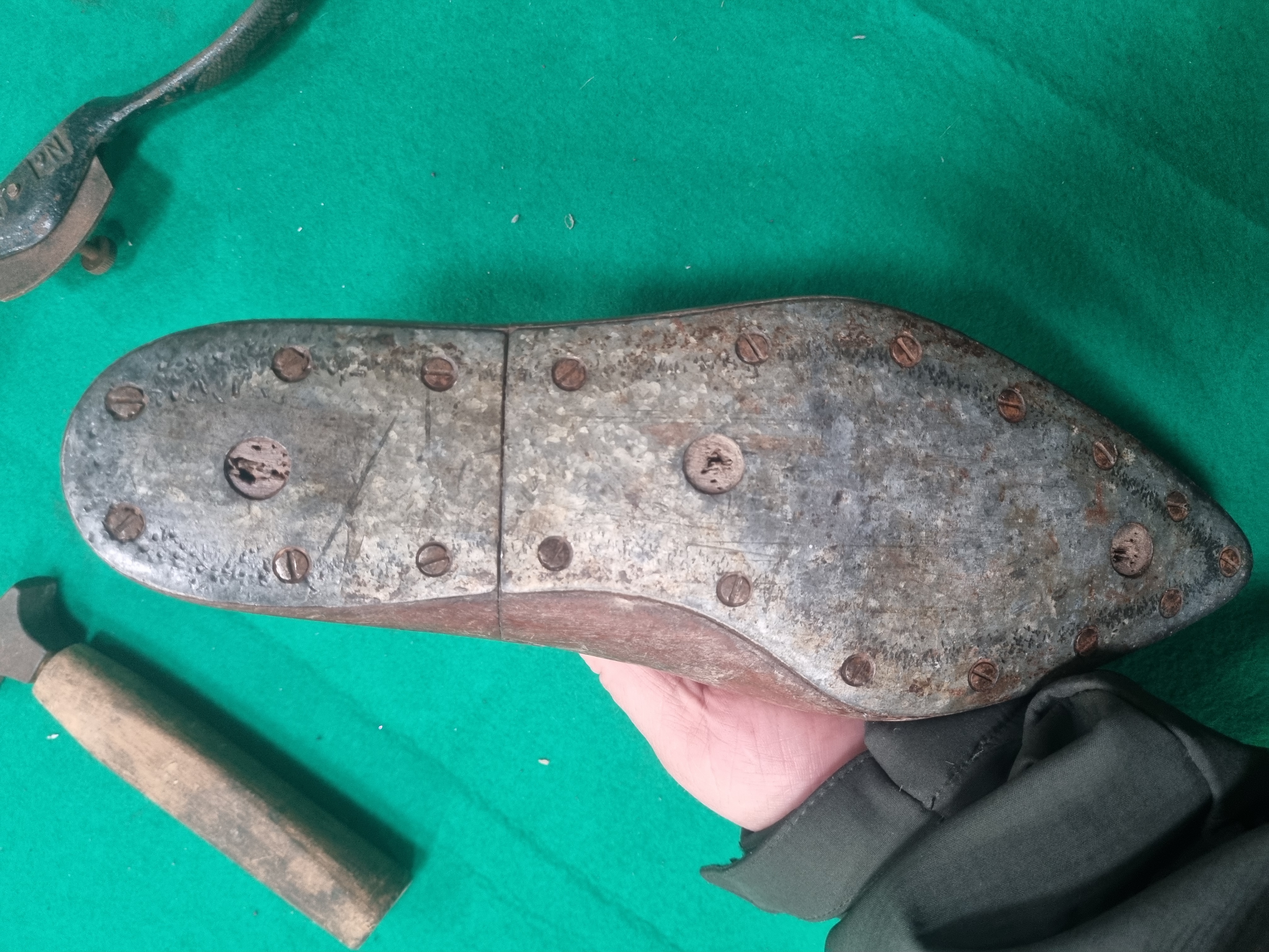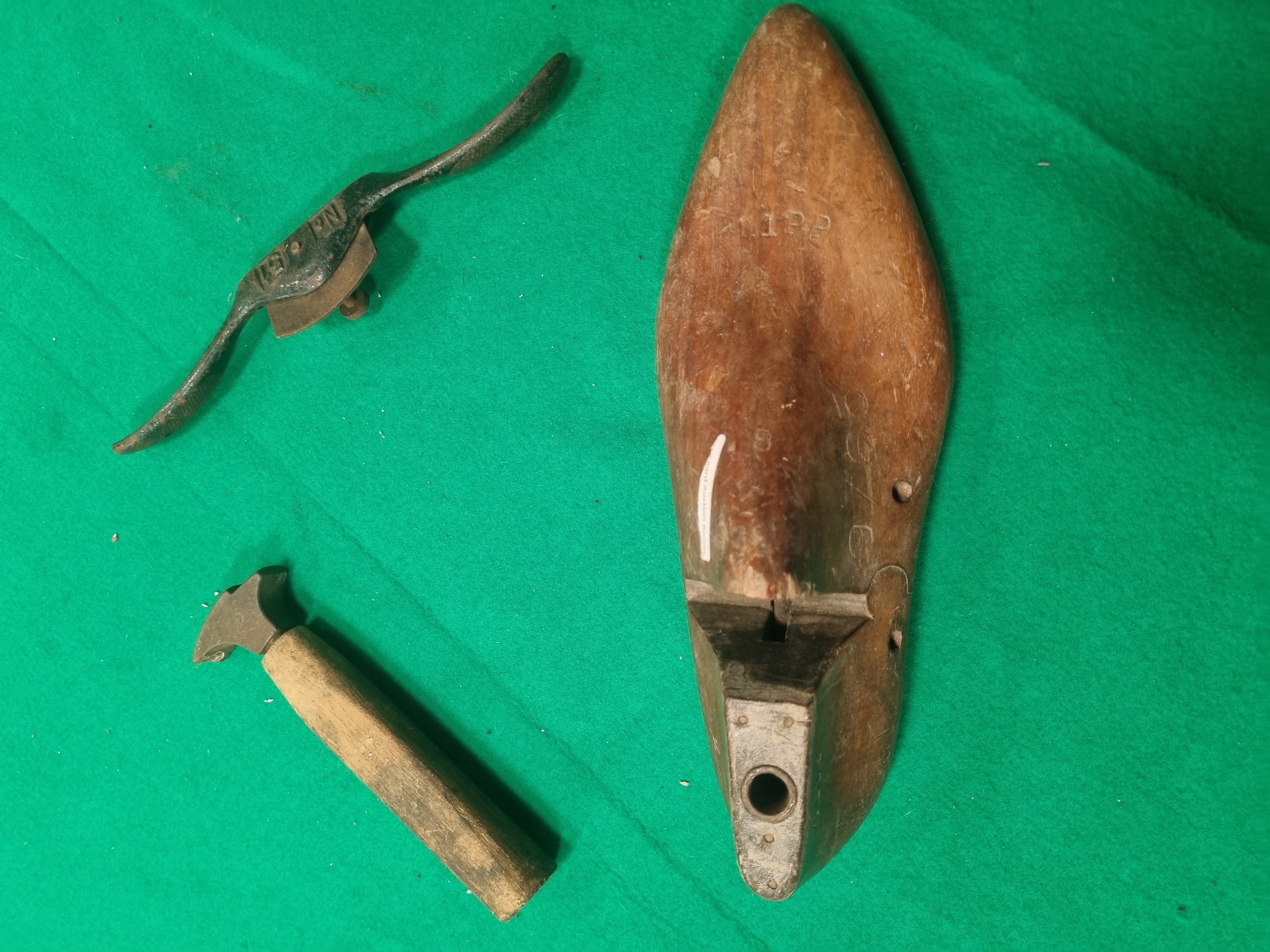 Lot 562: An Assortment of Vintage Cobbler's Tools, Glassware, and Ceramics