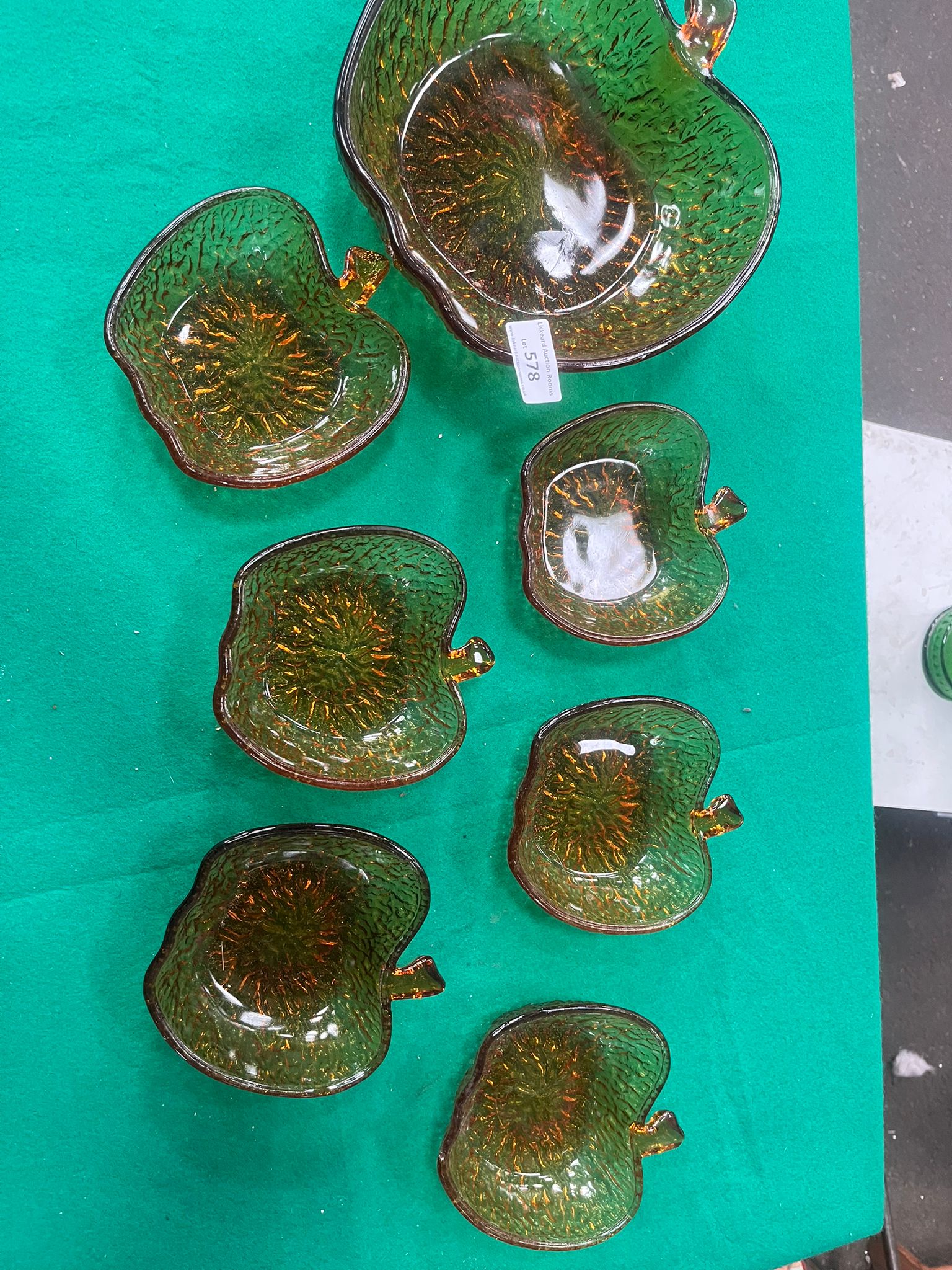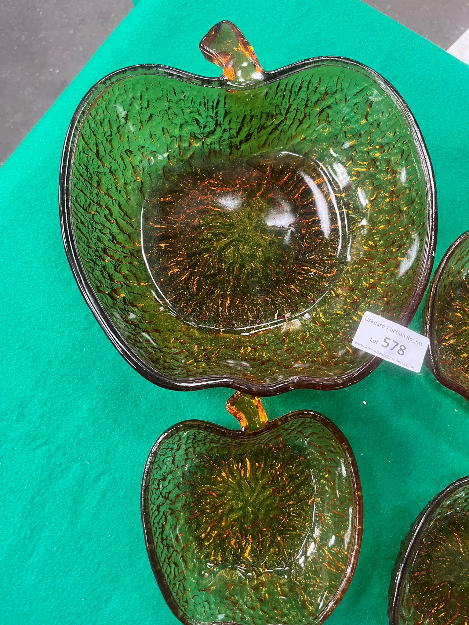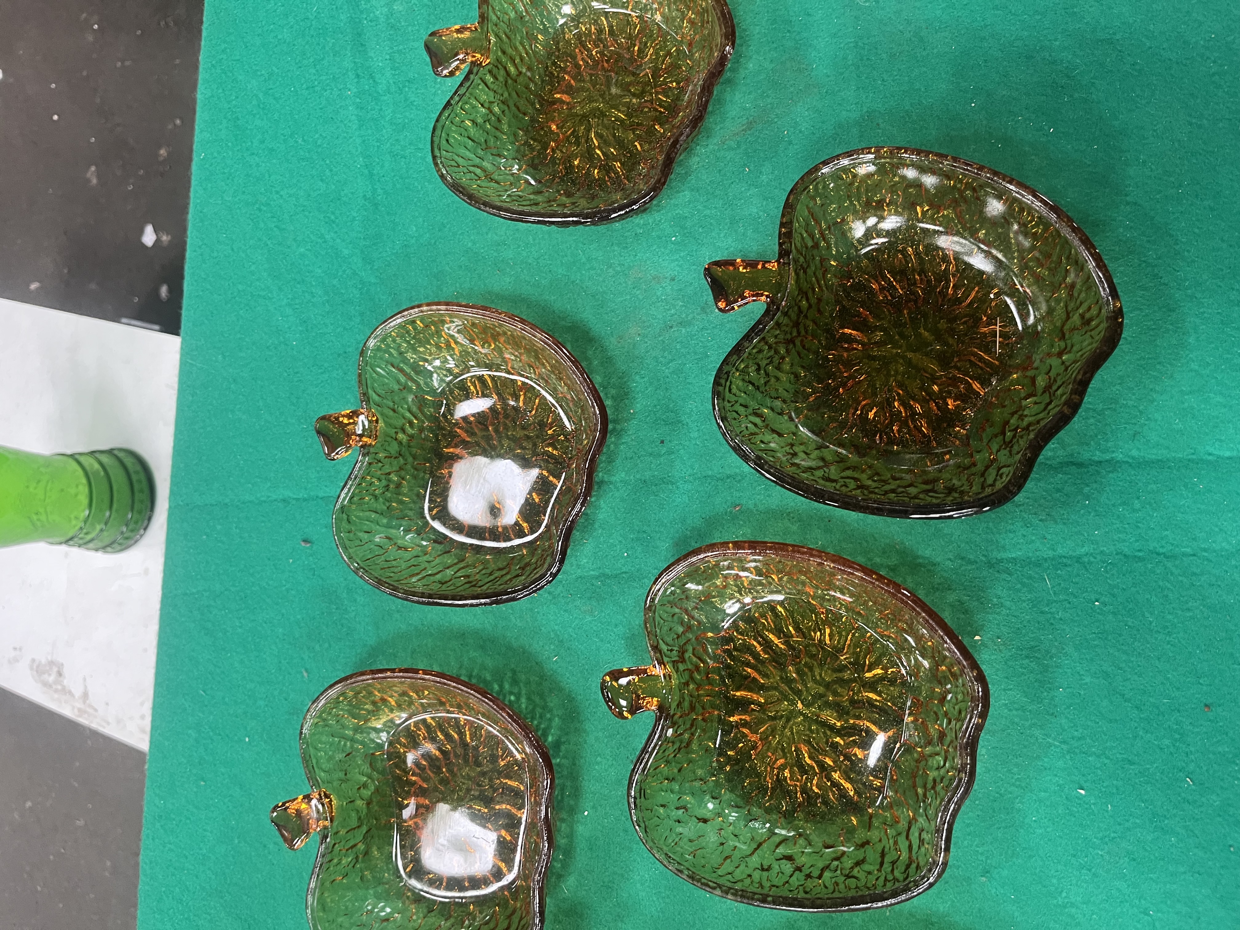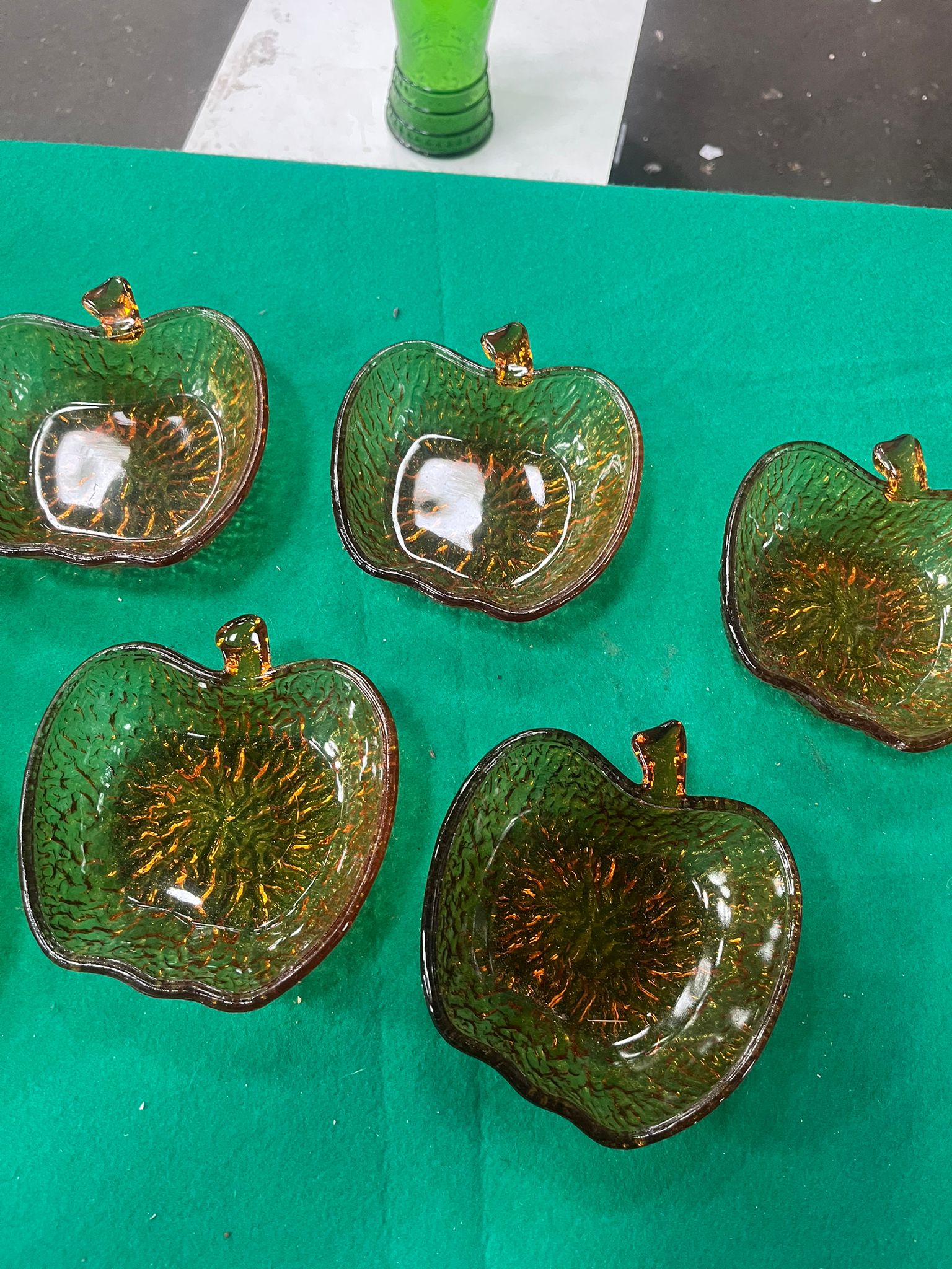 Lot 578: A Set of Vintage Hazel Atlas Orchard Pattern Apple Shaped Glass Bowls