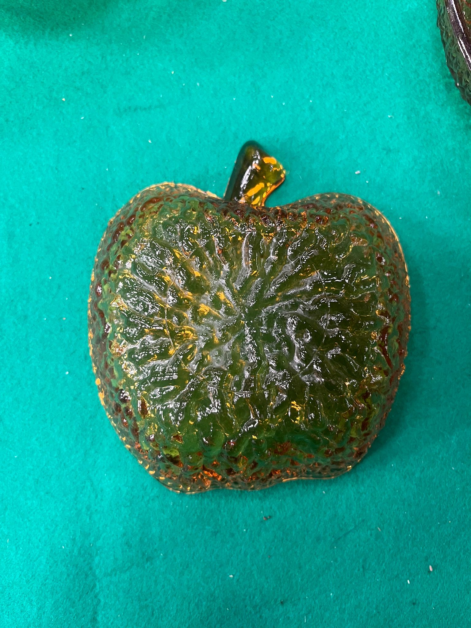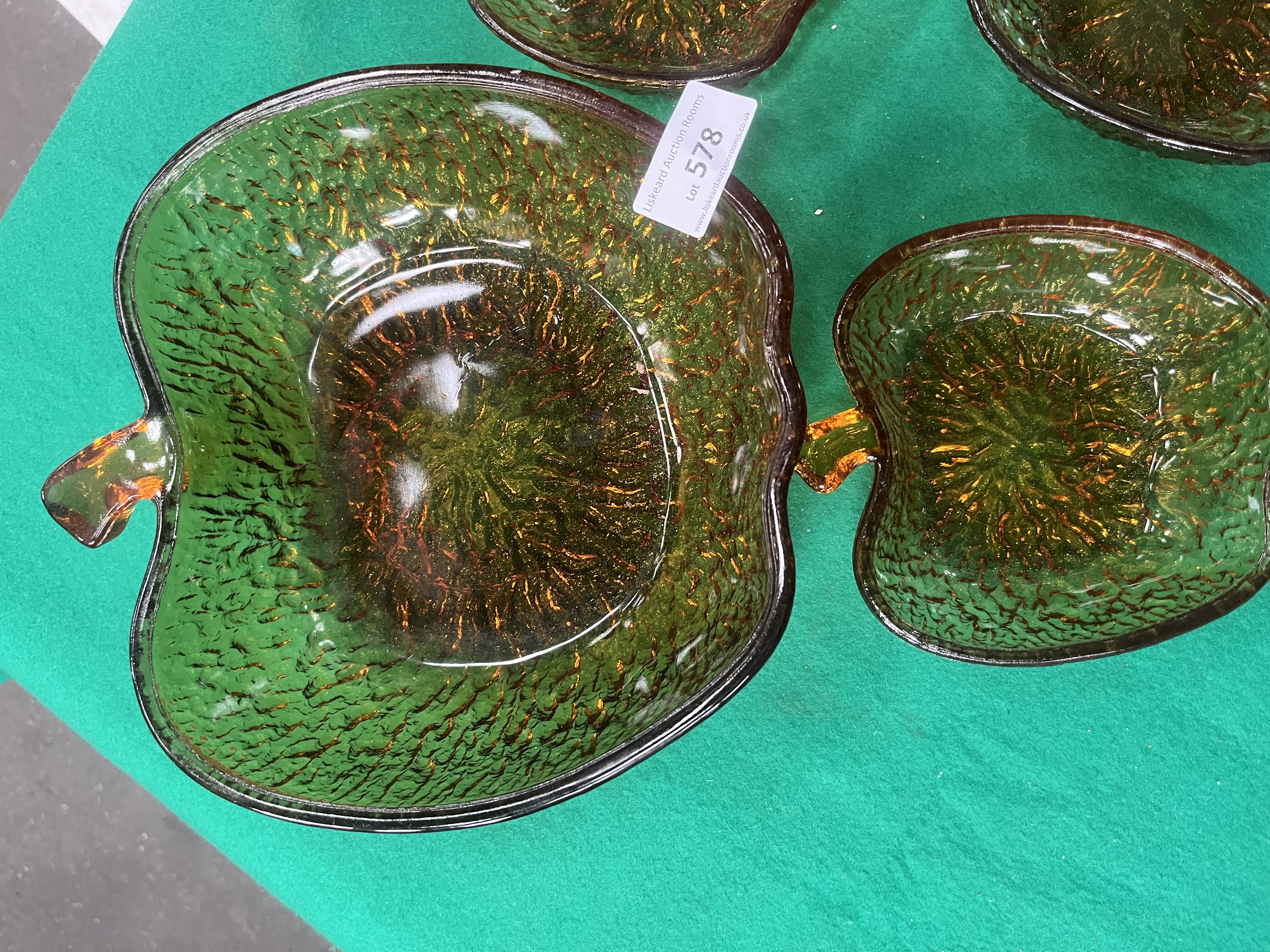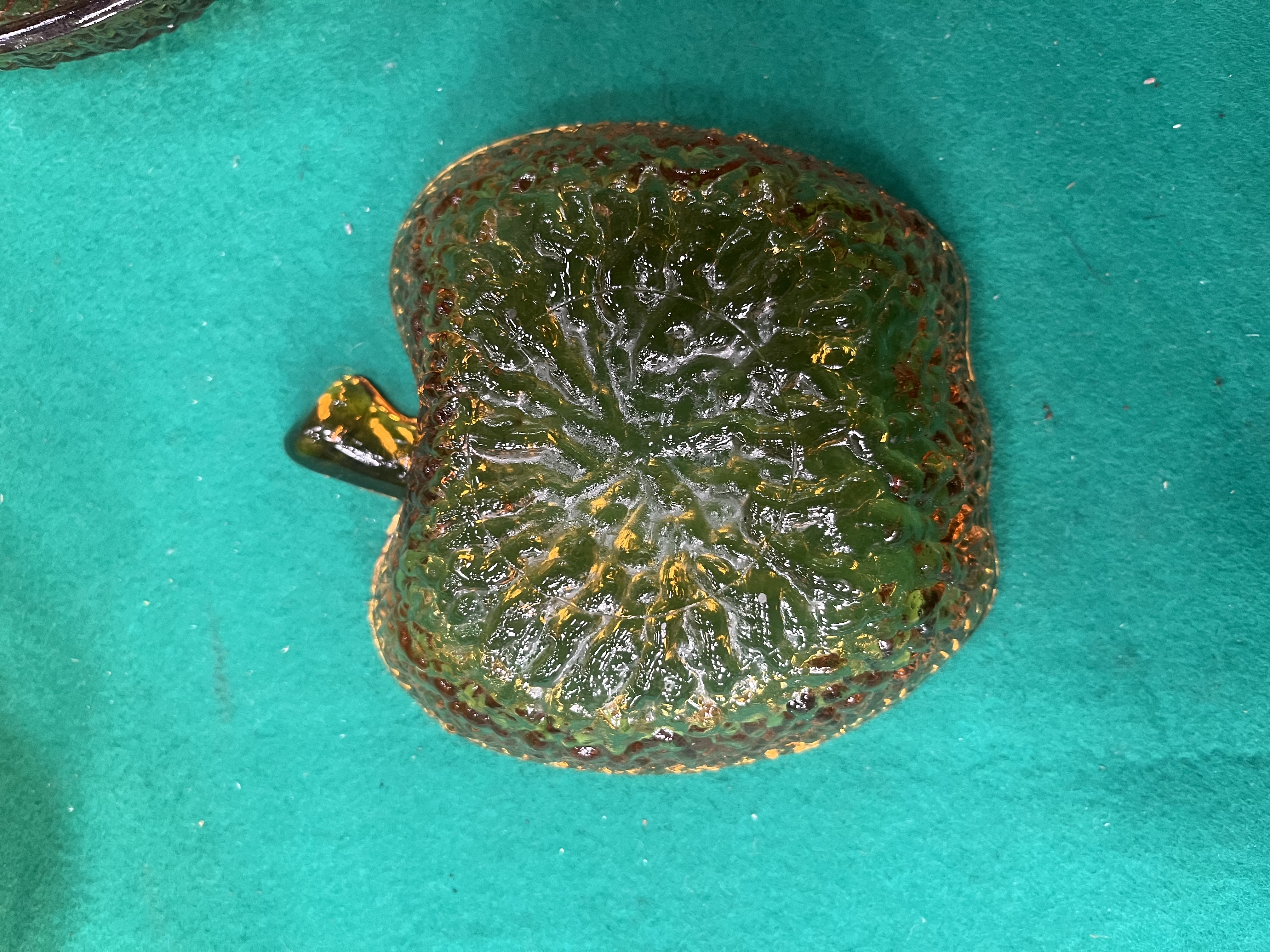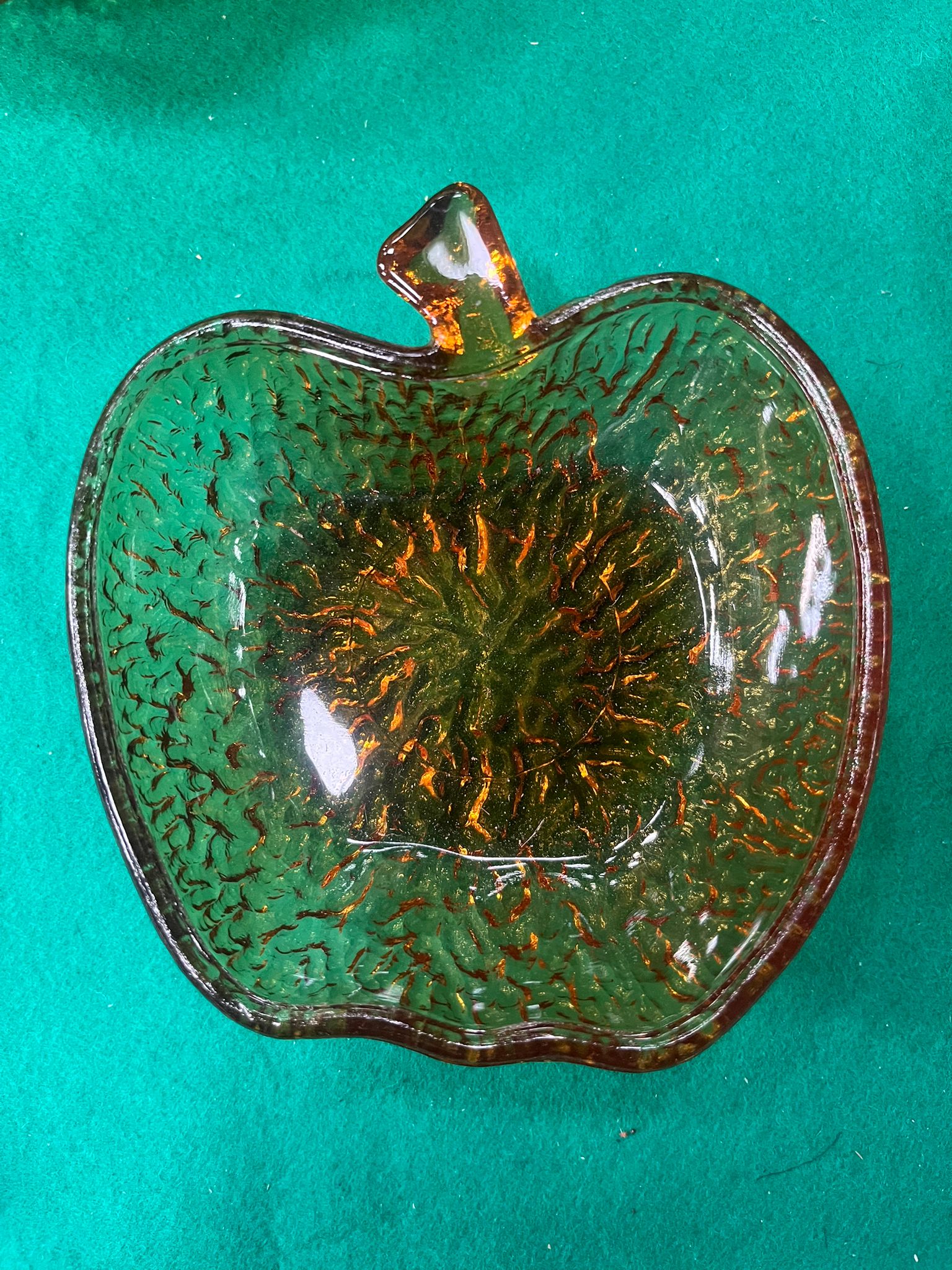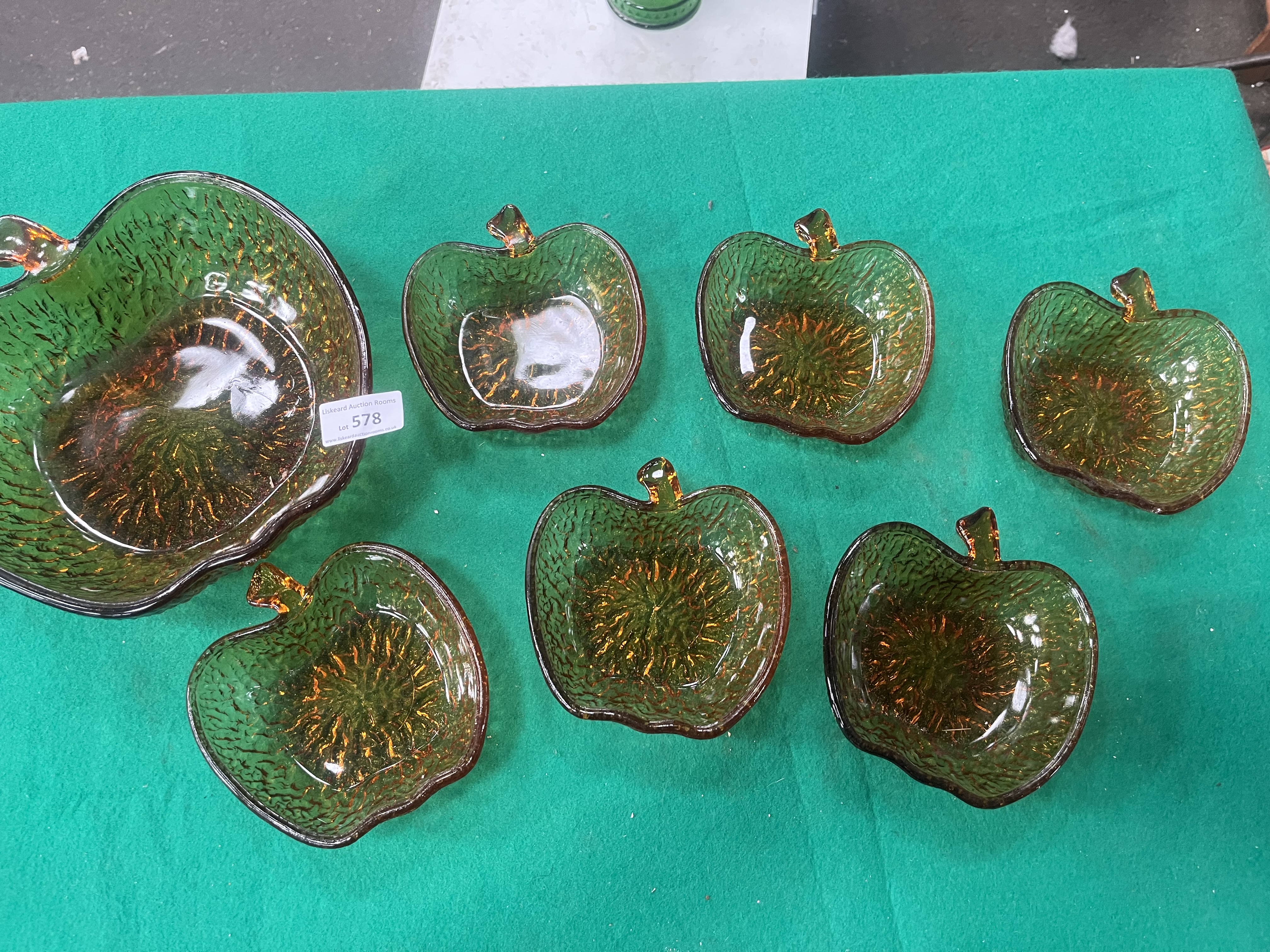 Lot 578: A Set of Vintage Hazel Atlas Orchard Pattern Apple Shaped Glass Bowls