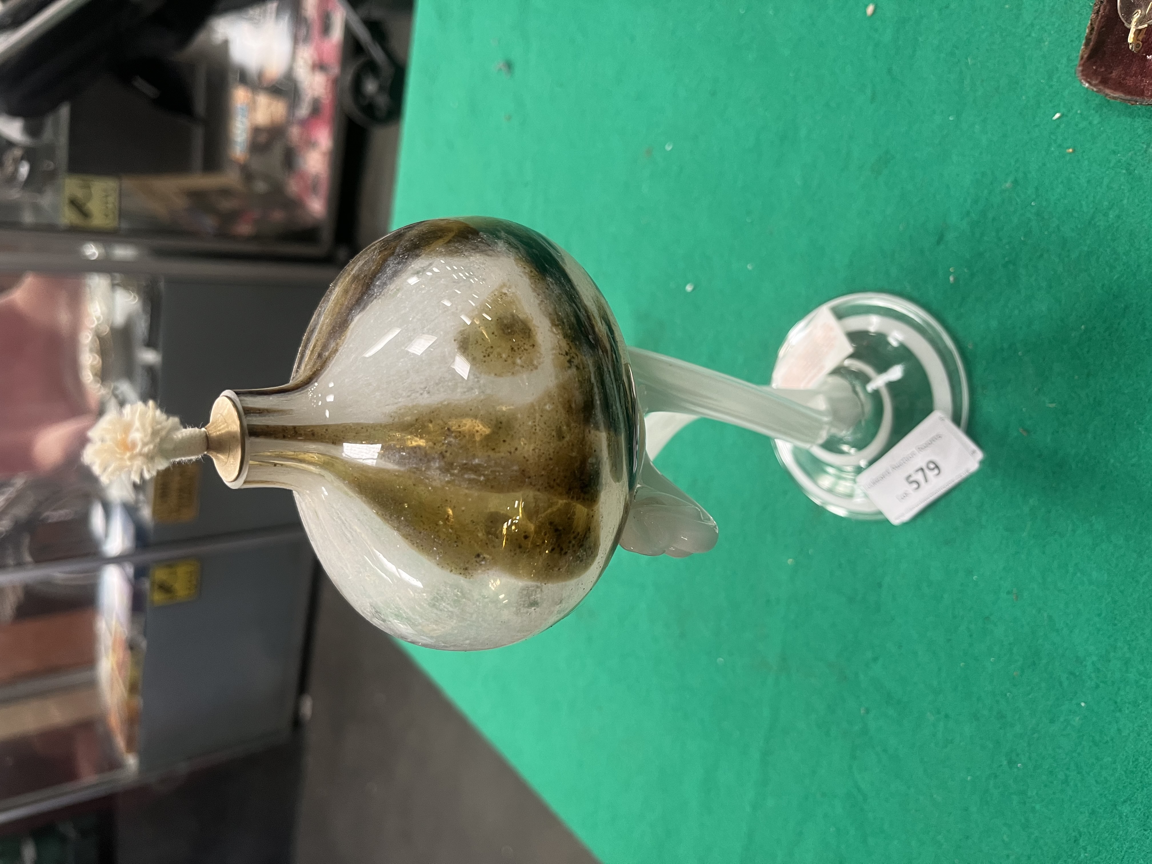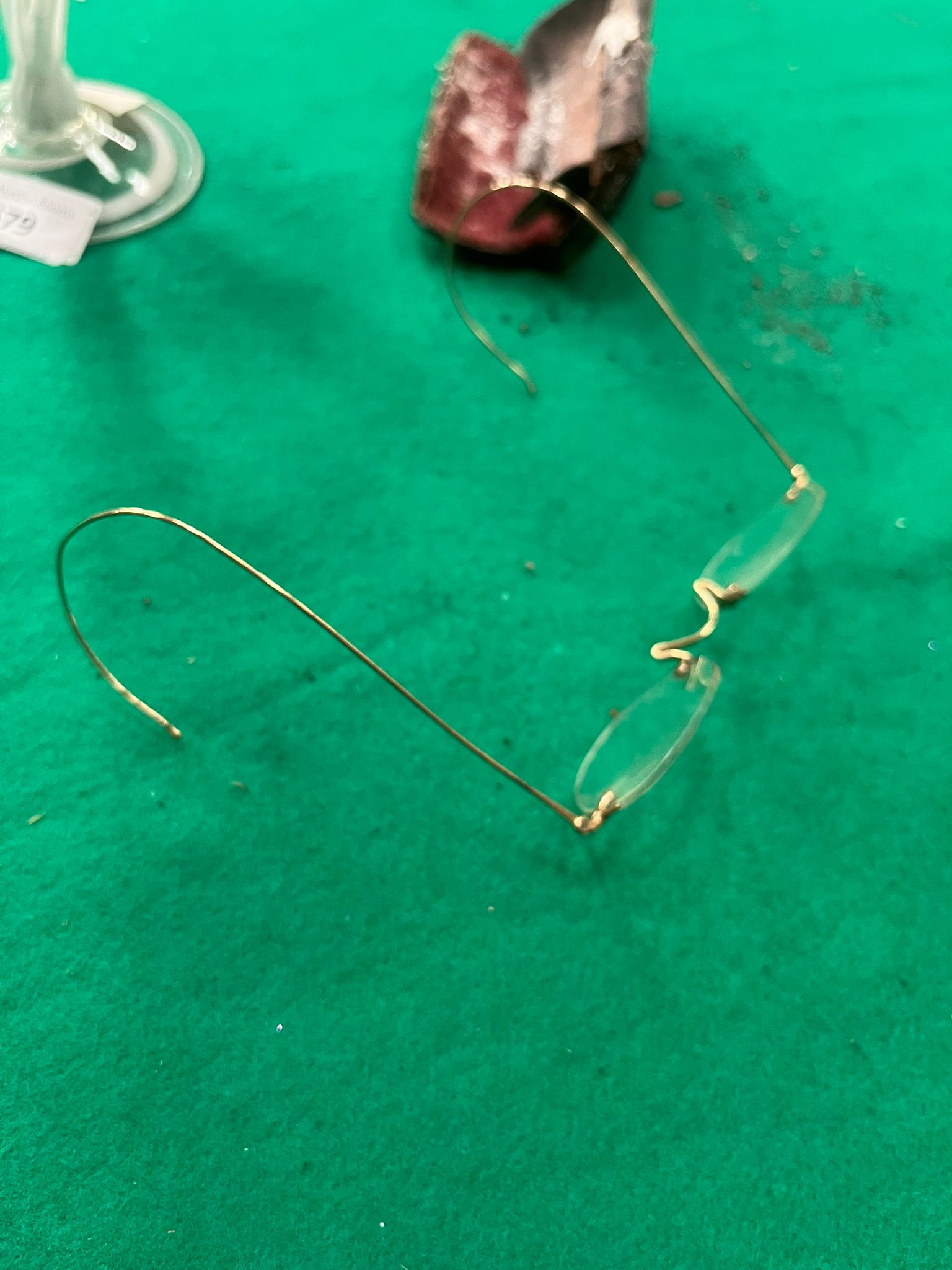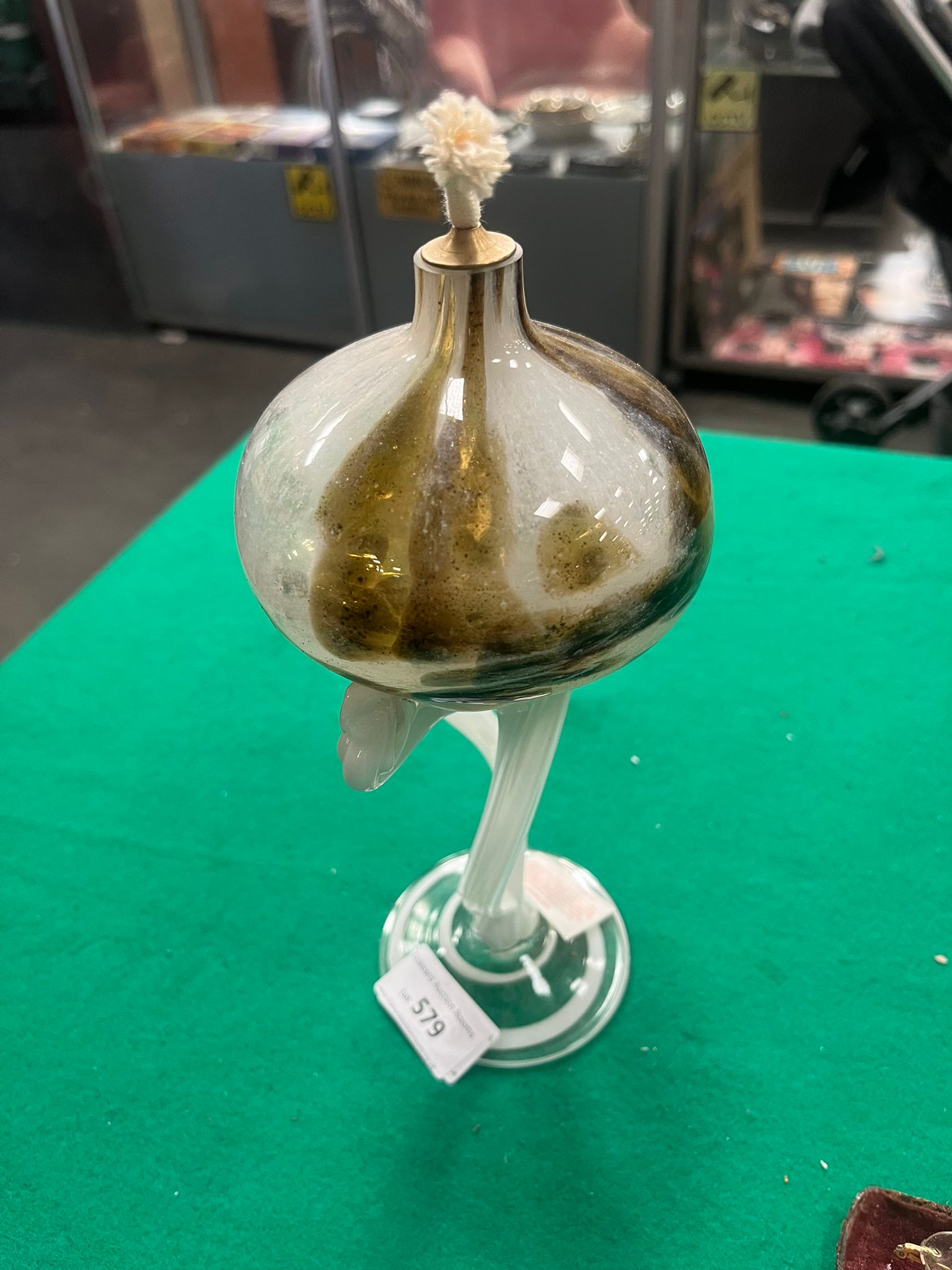 Lot 579: An Art Glass Oil Lamp and a Pair of Antique Rimless Spectacles