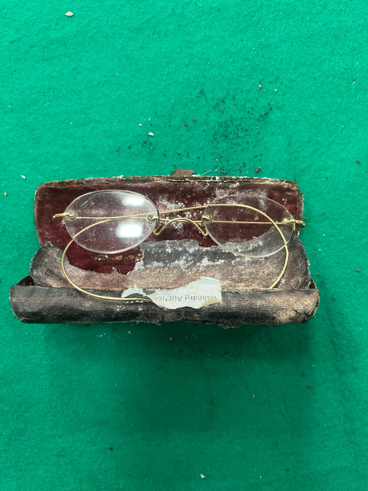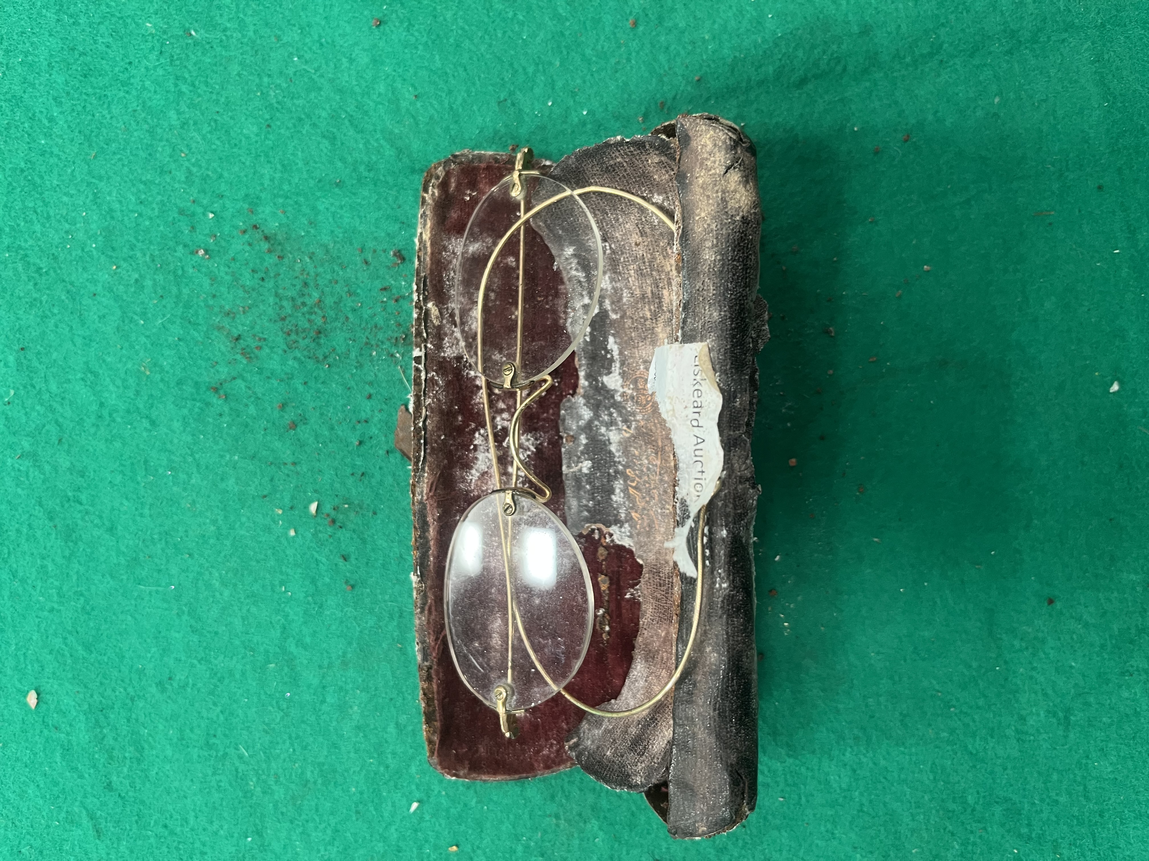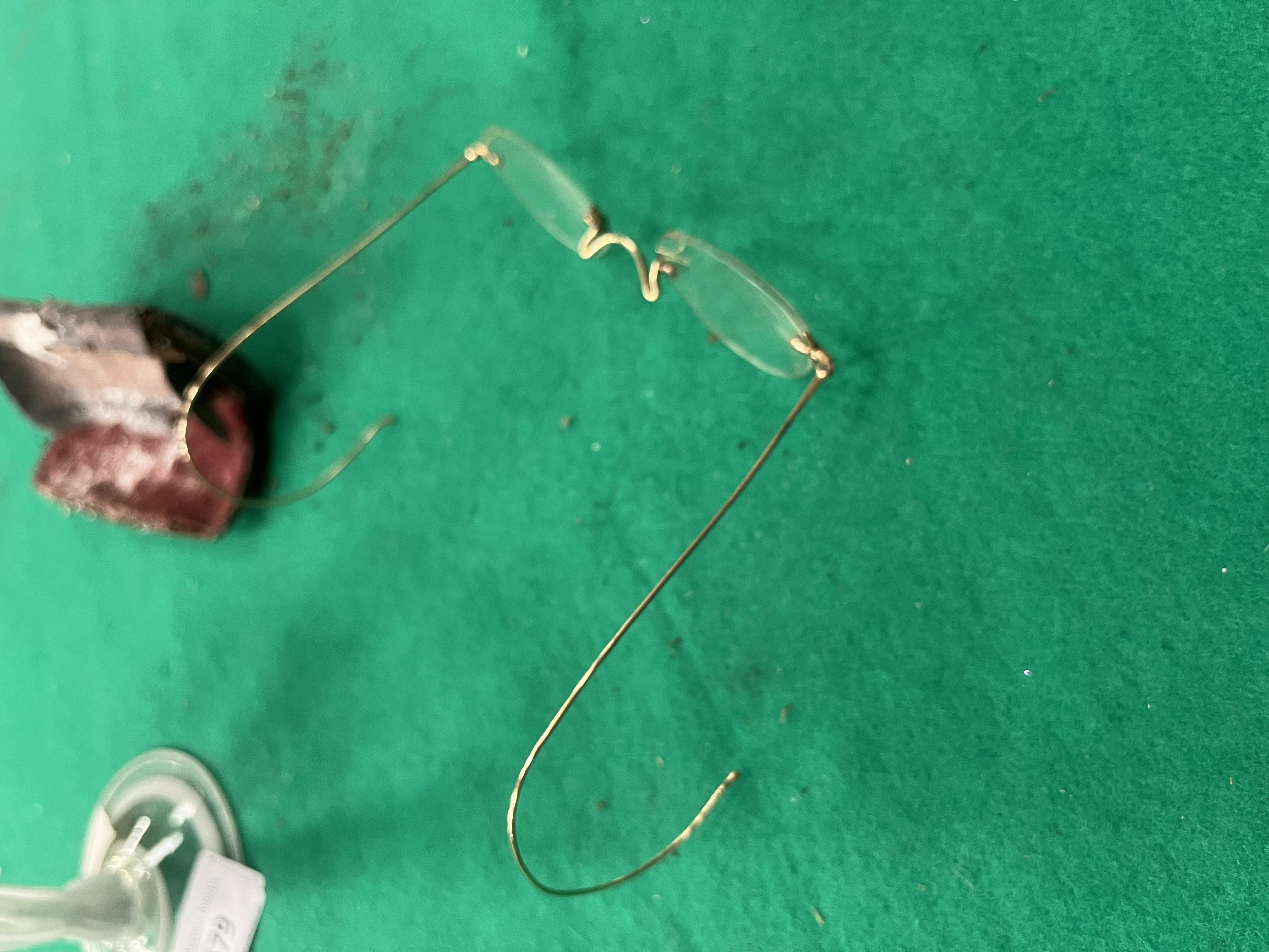 Lot 579: An Art Glass Oil Lamp and a Pair of Antique Rimless Spectacles