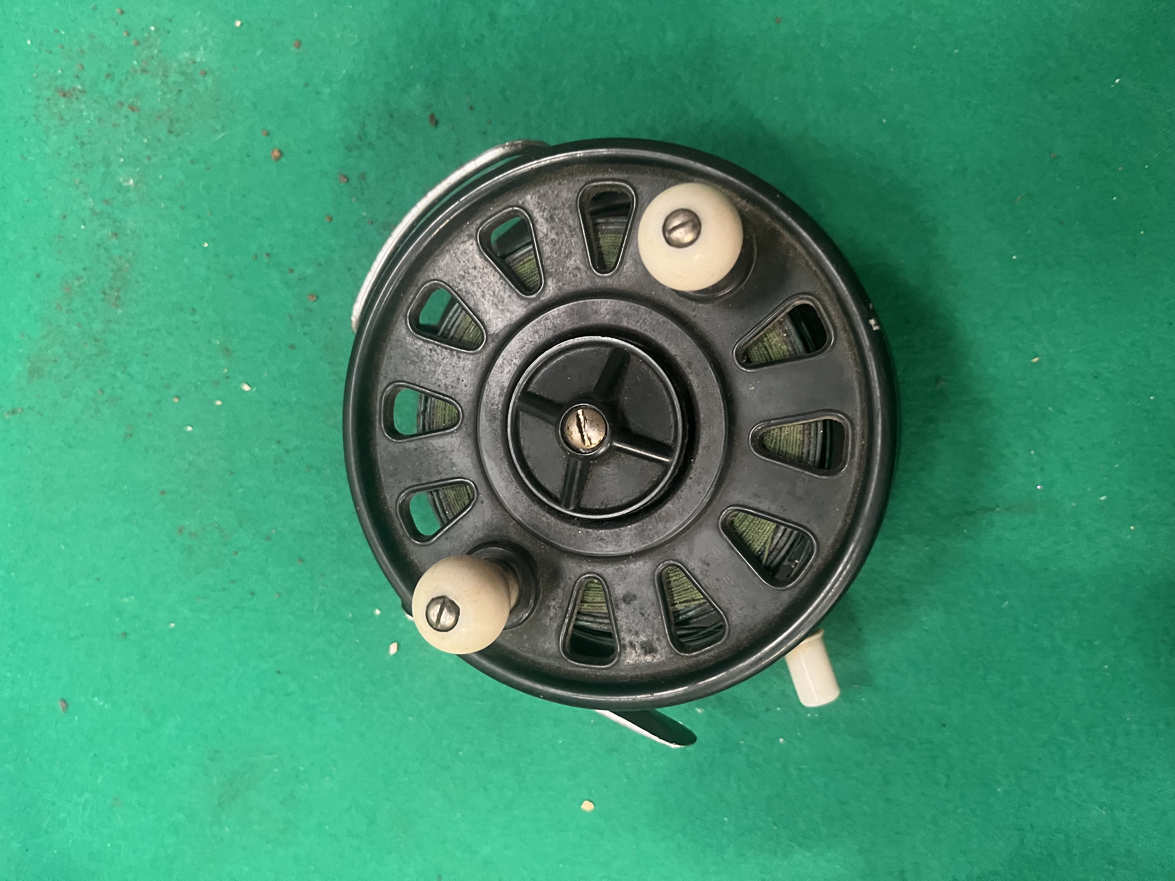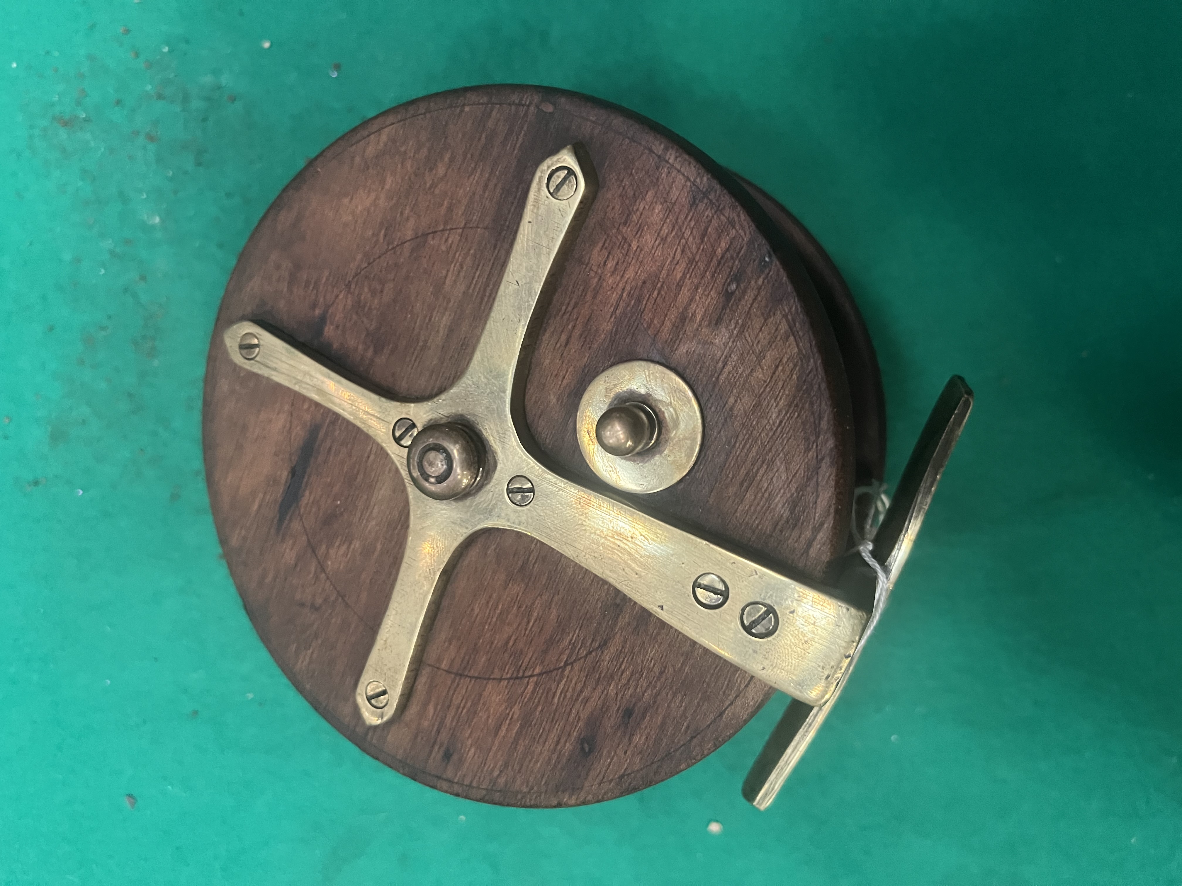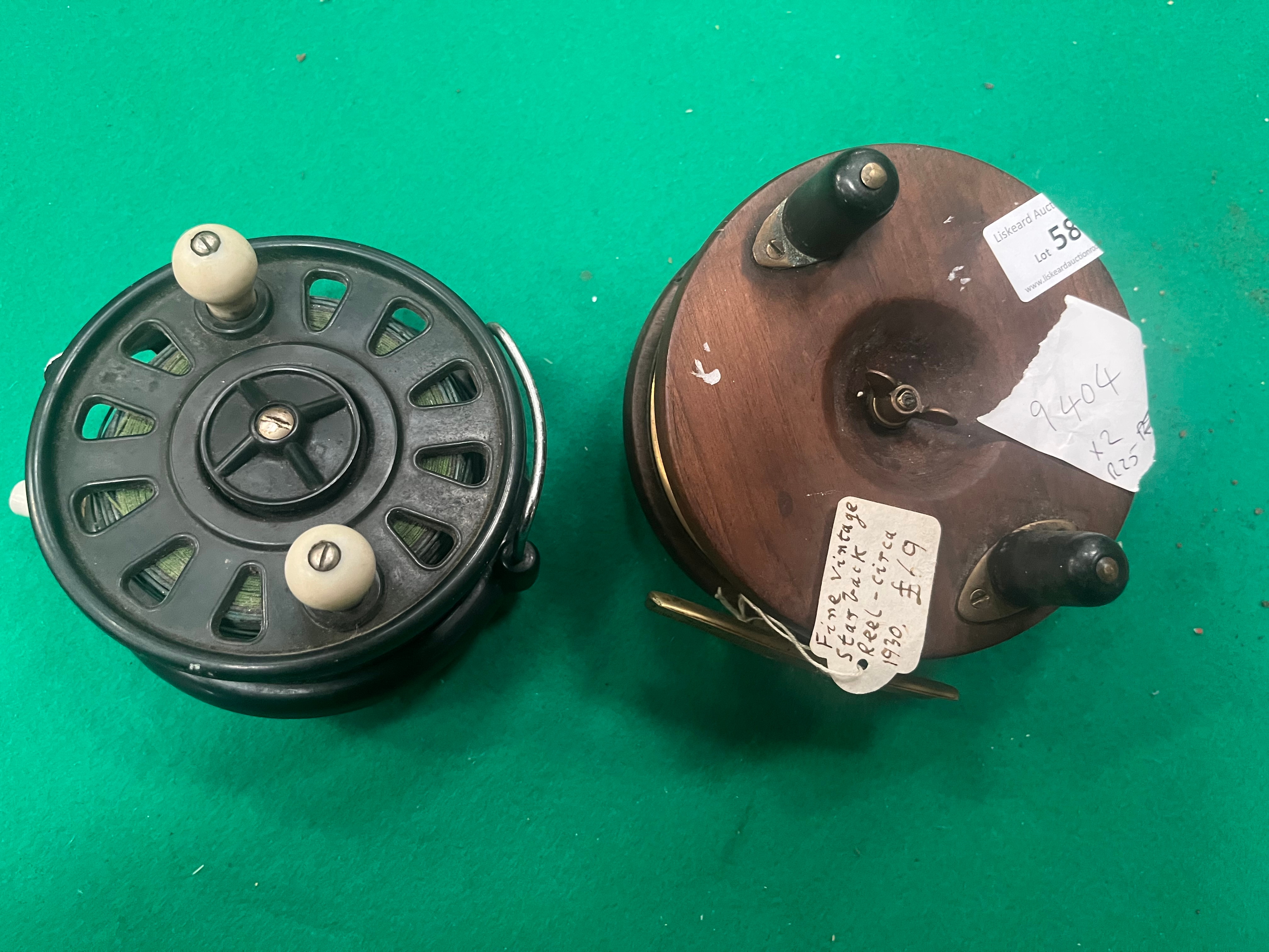 Lot 588: Two Vintage English Fishing Reels Including a Paramount Composite Reel and a Wooden Starback Reel