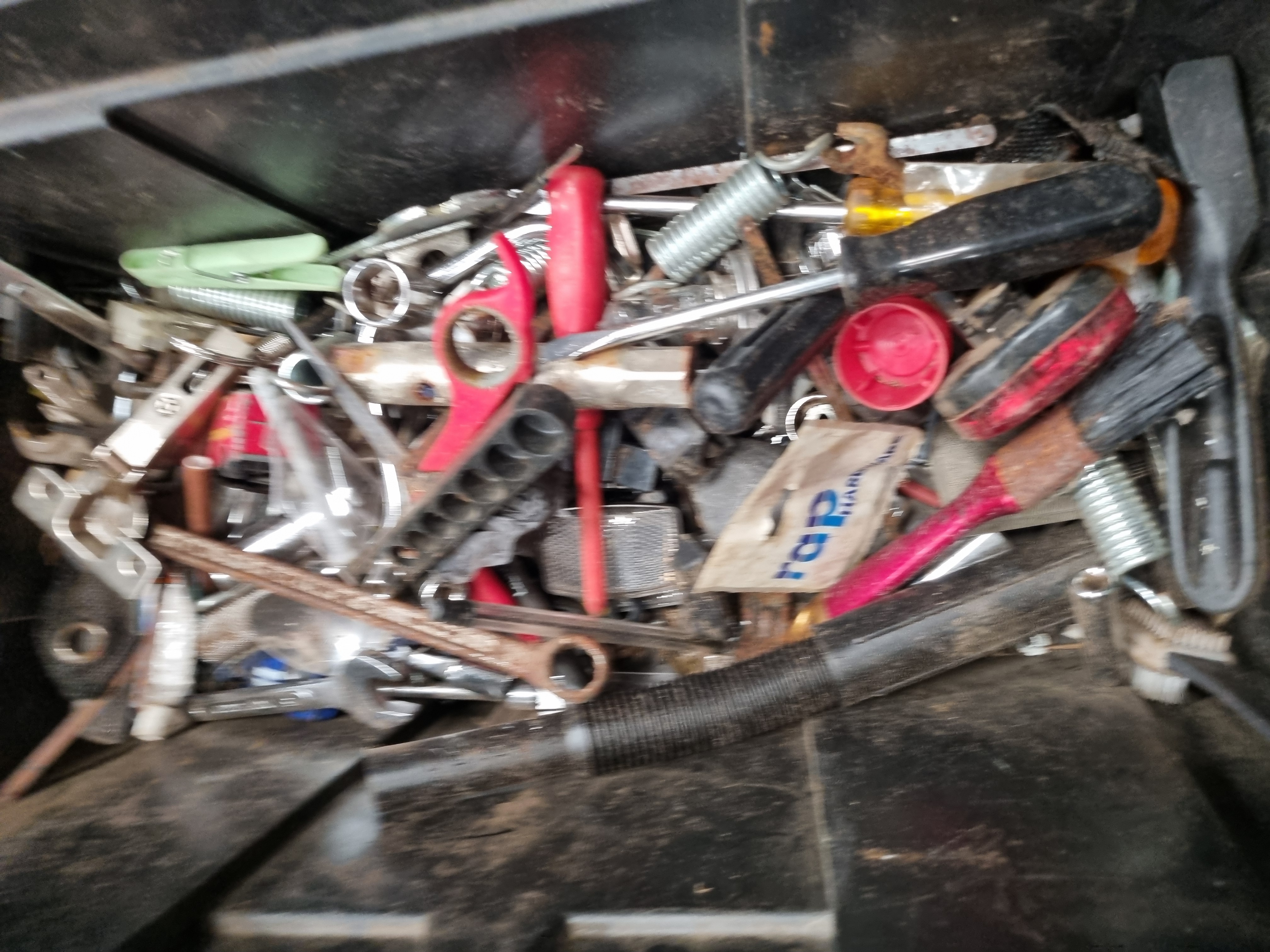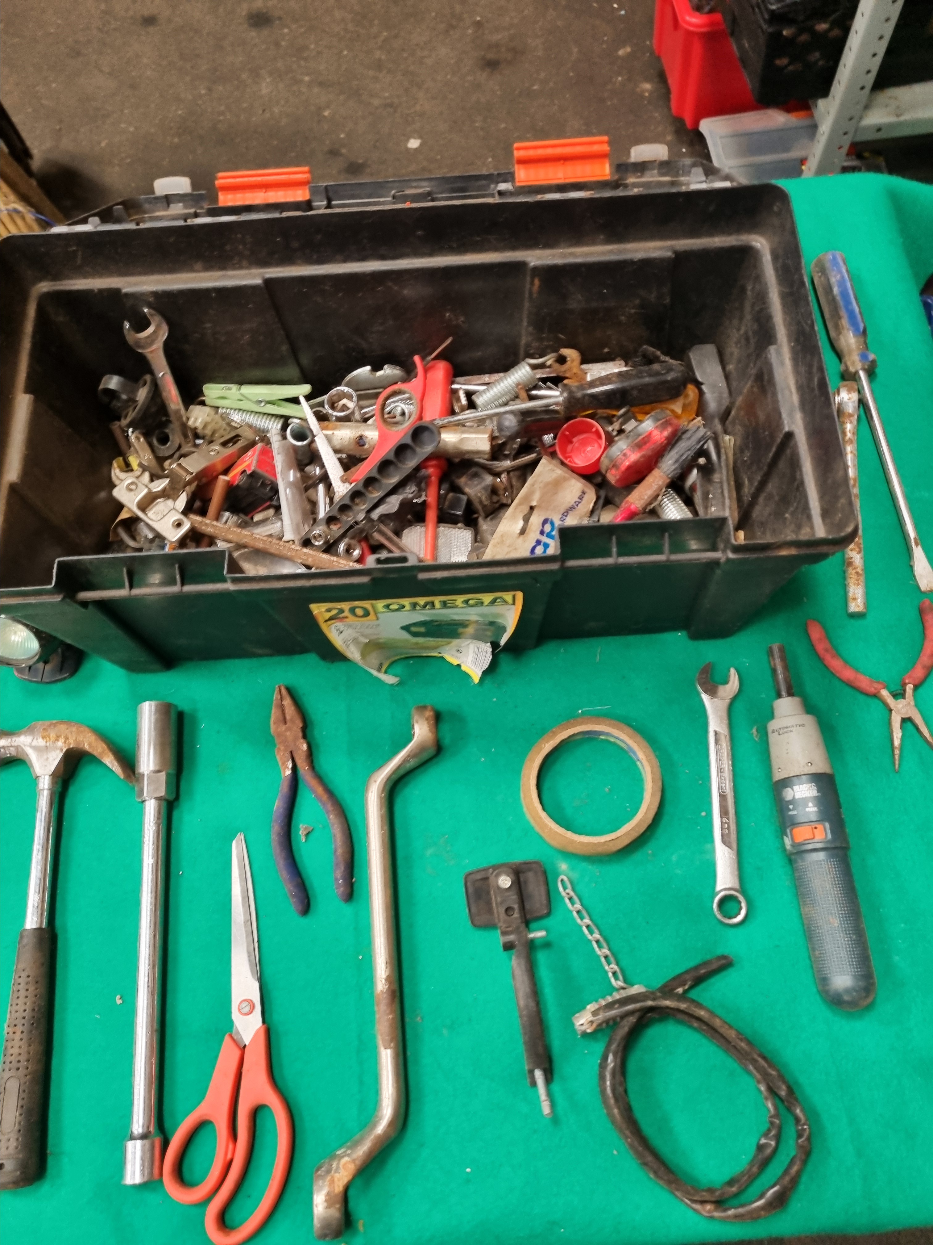 Lot 59: An Assortment of Hand Tools and Hardware contained within a Keter Omega 20 Toolbox