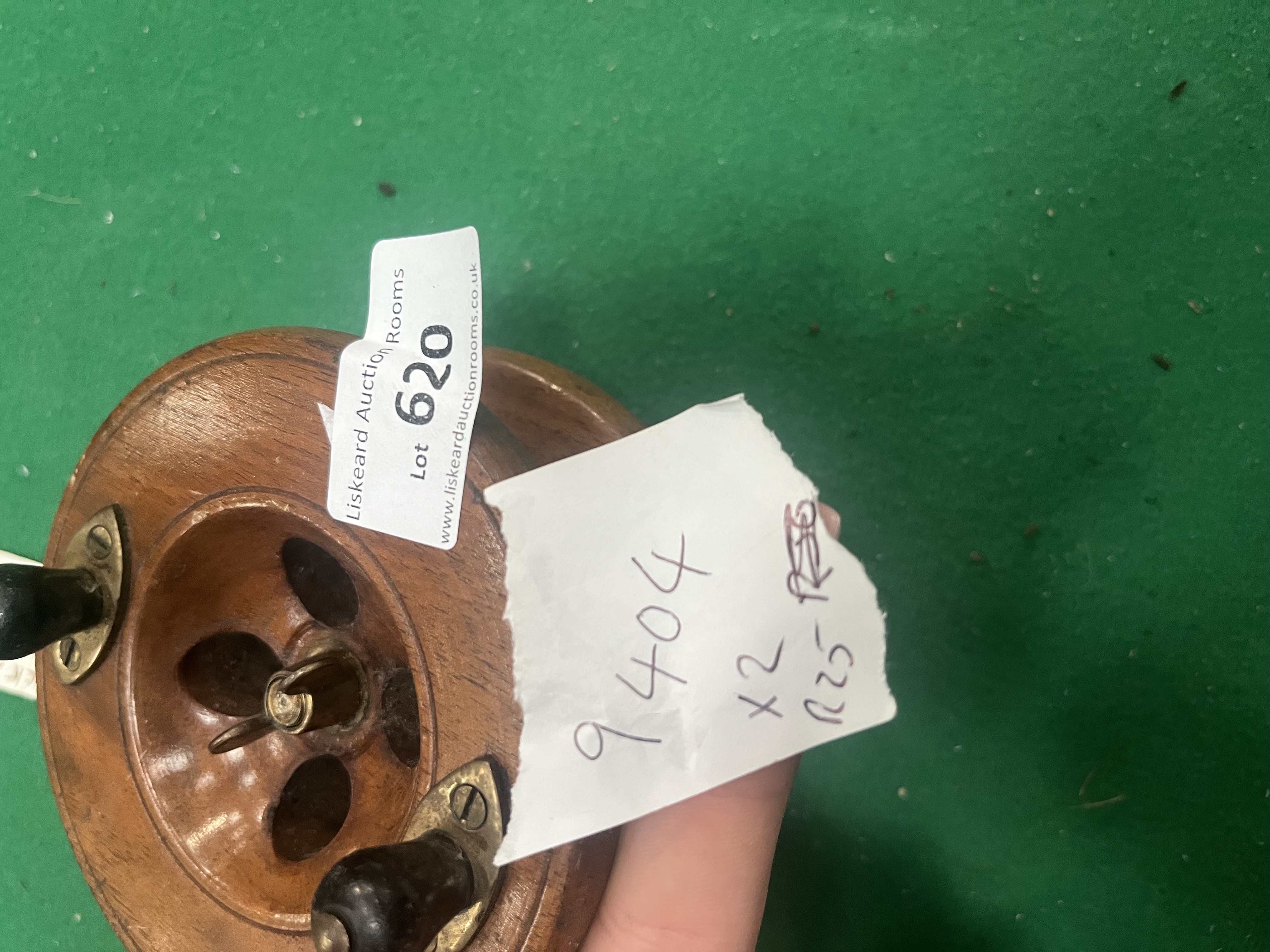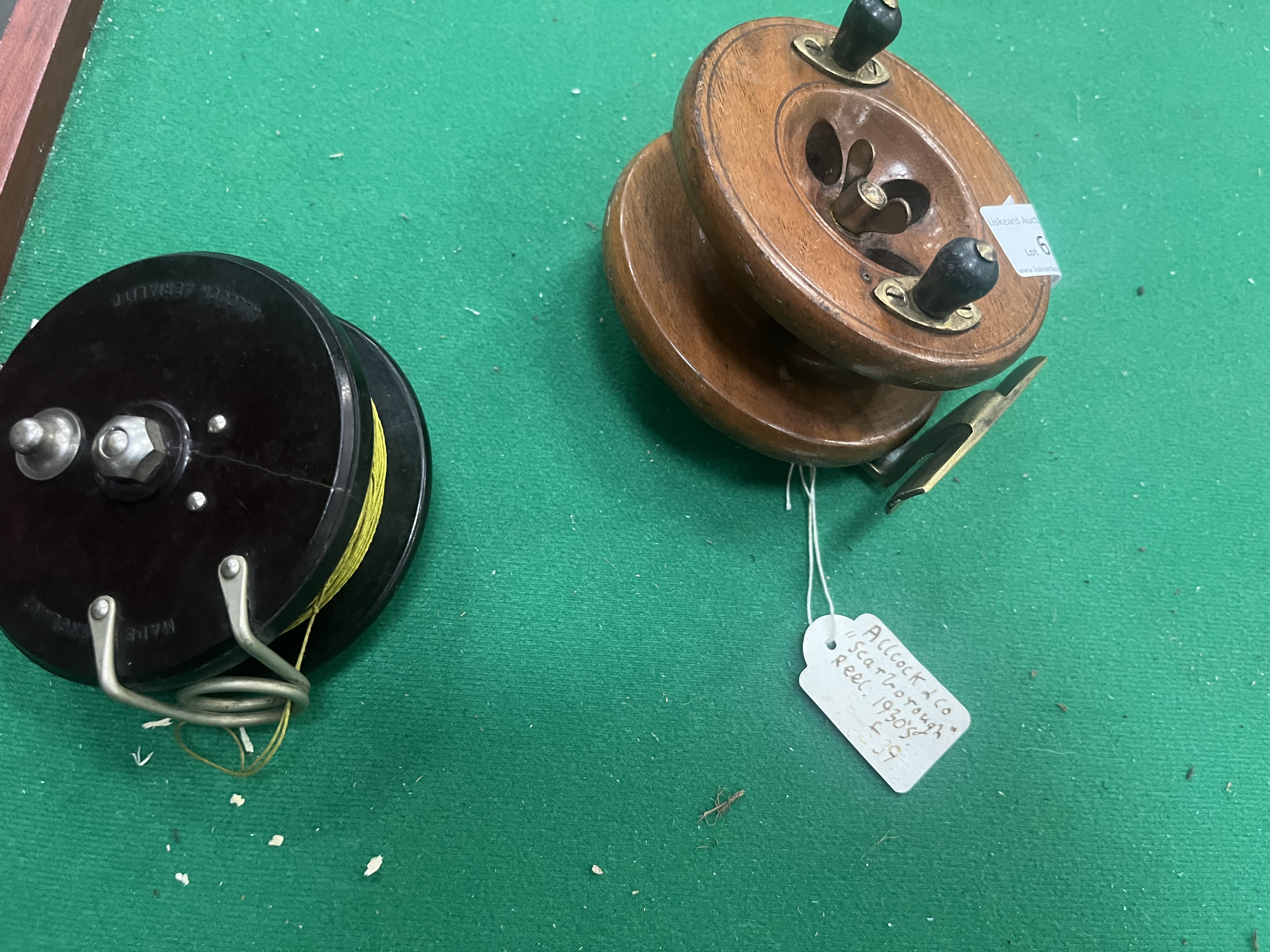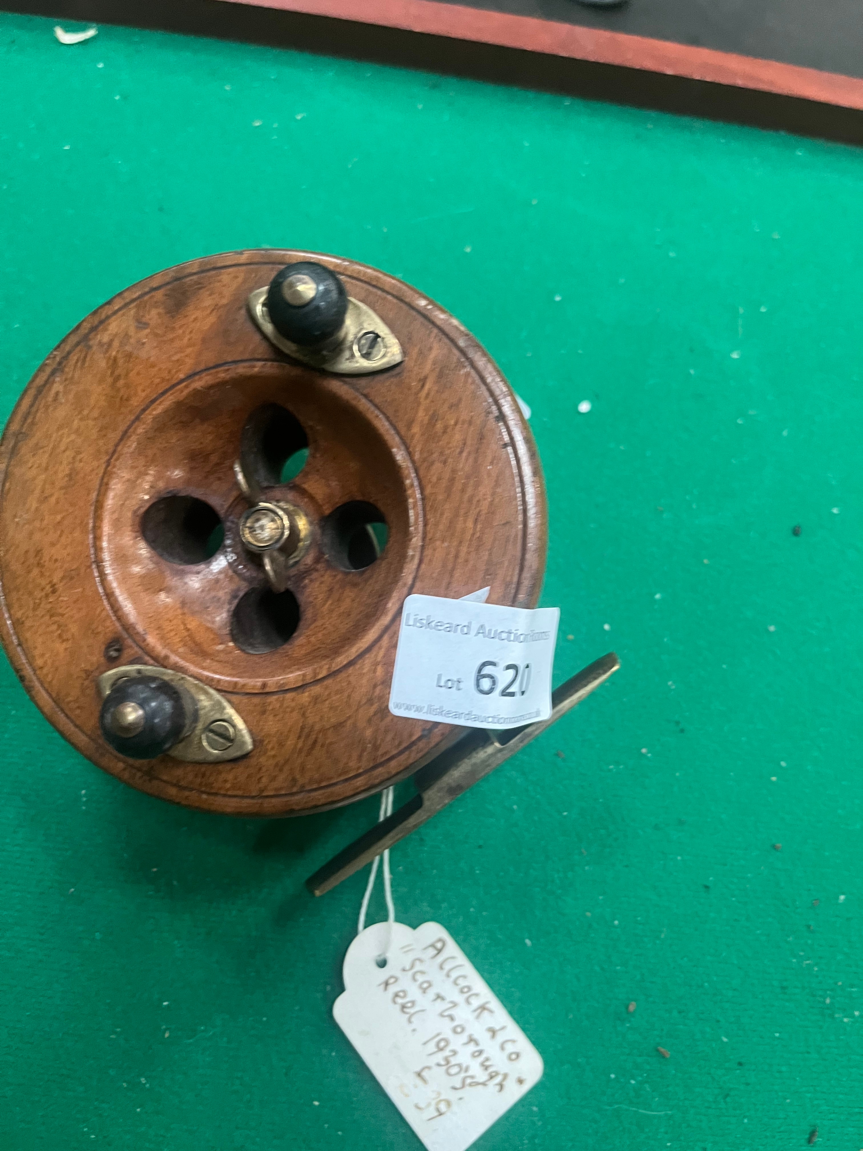Lot 620: Two Allcock and Co Fishing Reels comprising a Wooden Scarborough Reel and an Aerialite Reel