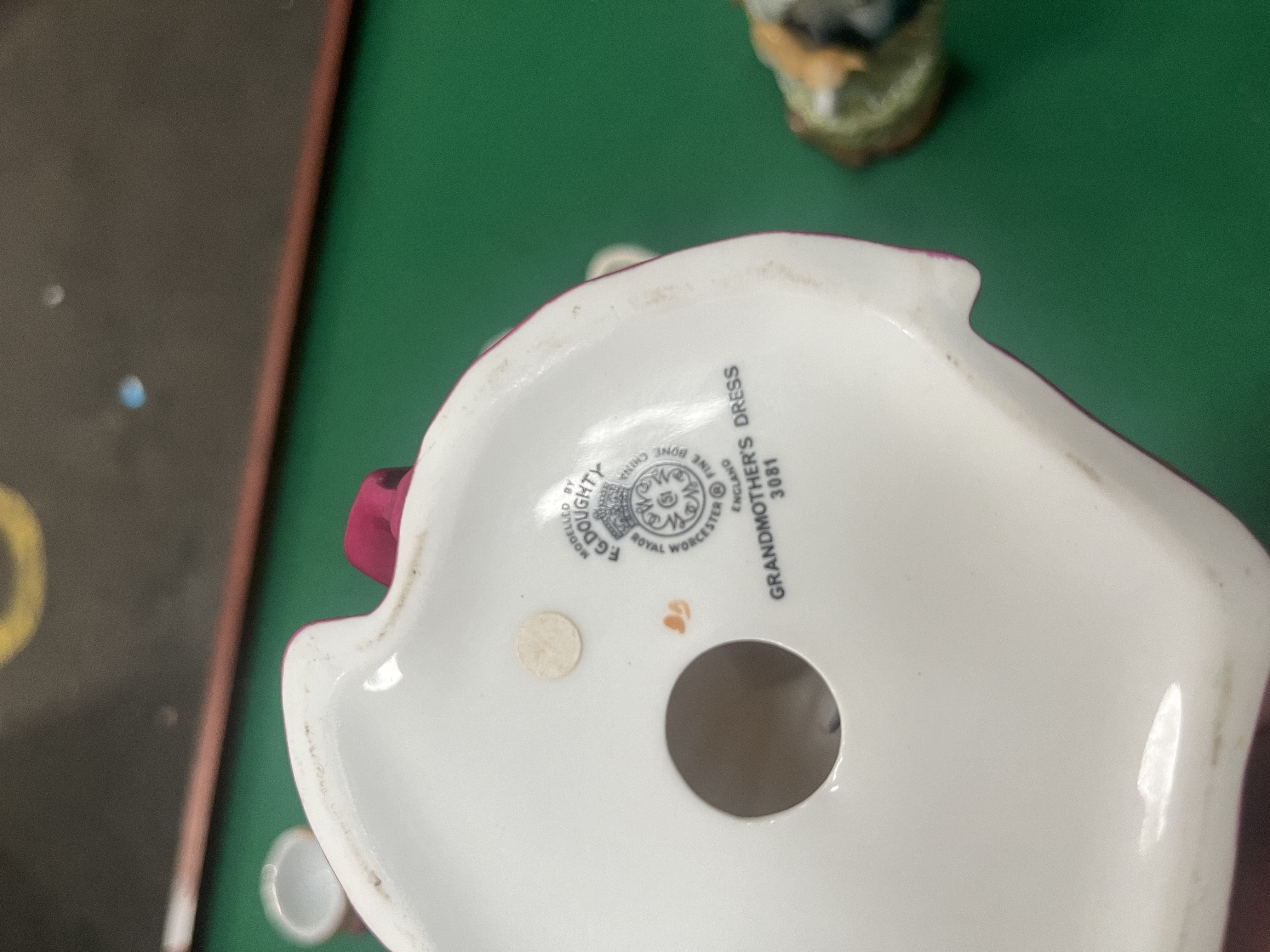 Lot 632: A Collection of Seven Ceramic Items Including a Royal Worcester Grandmothers Dress Figurine