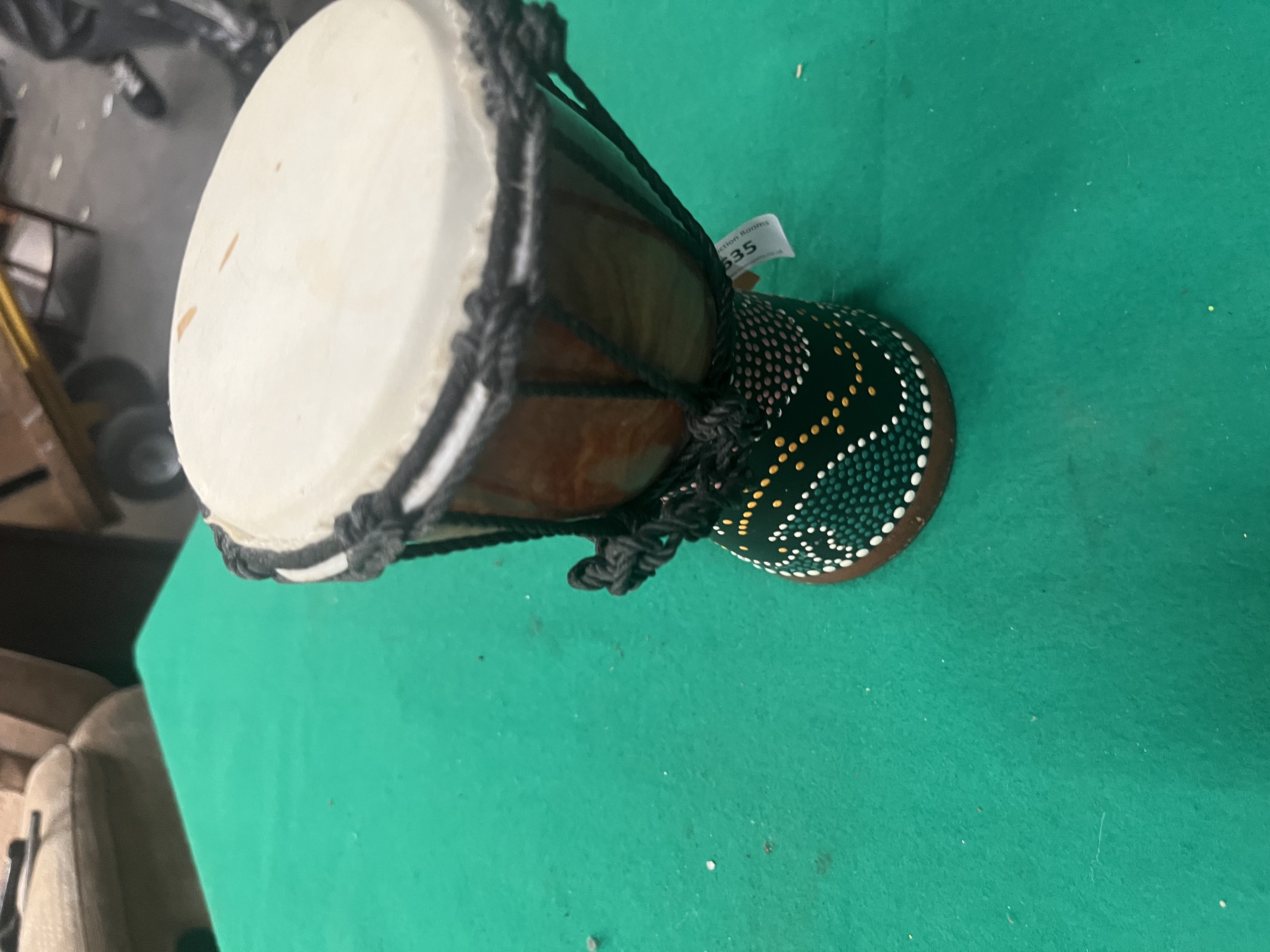 Lot 635: Miniature Hand-Painted Indonesian Djembe Drum