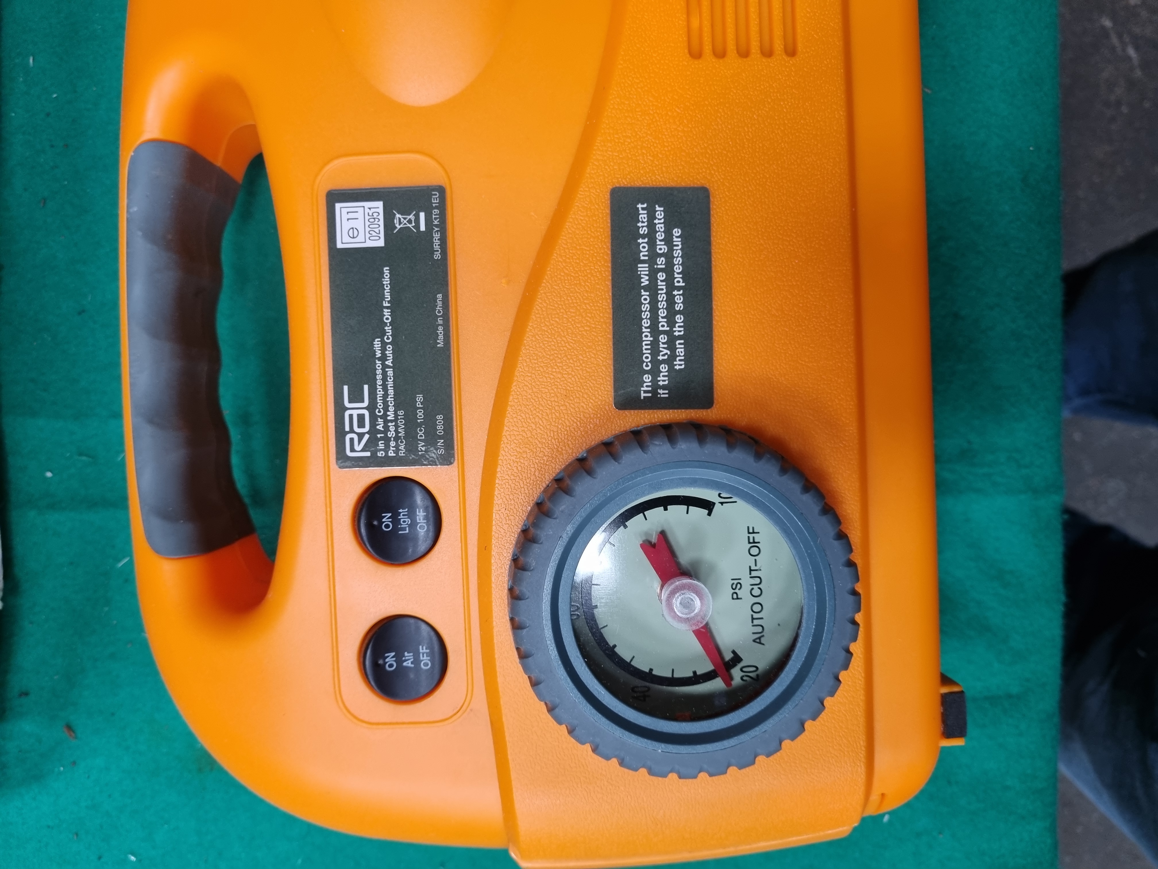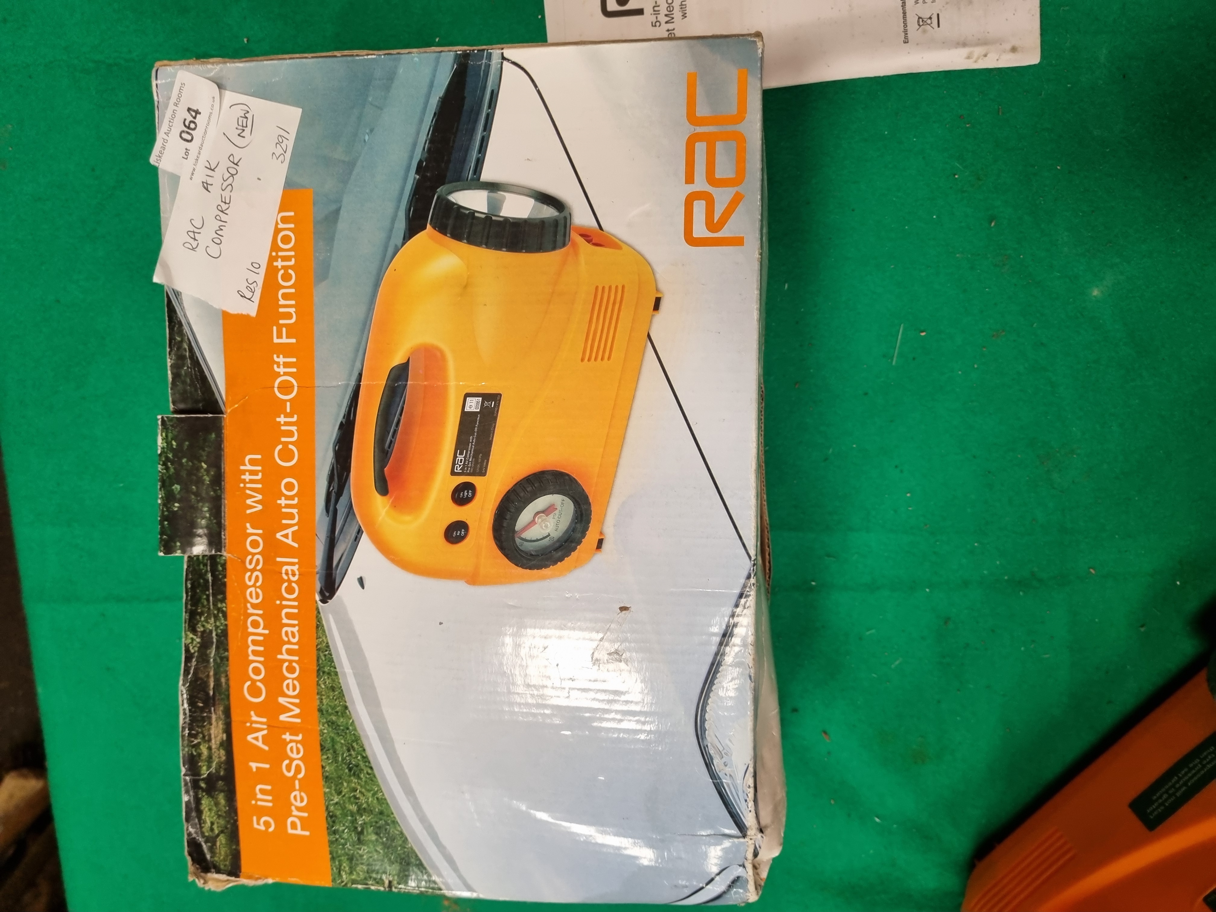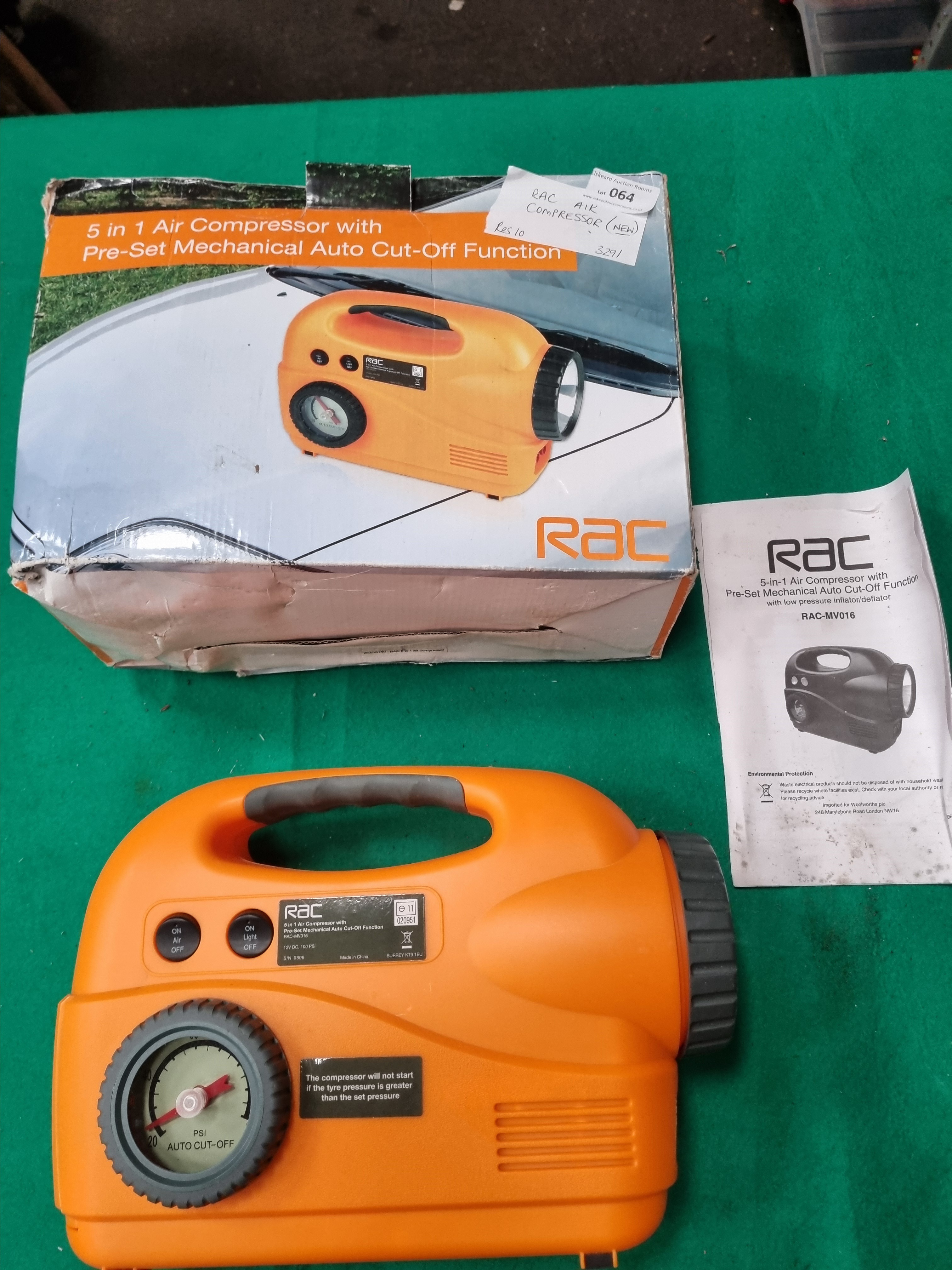 Lot 64: RAC Model RAC-MV016 5-in-1 Portable 12V Air Compressor