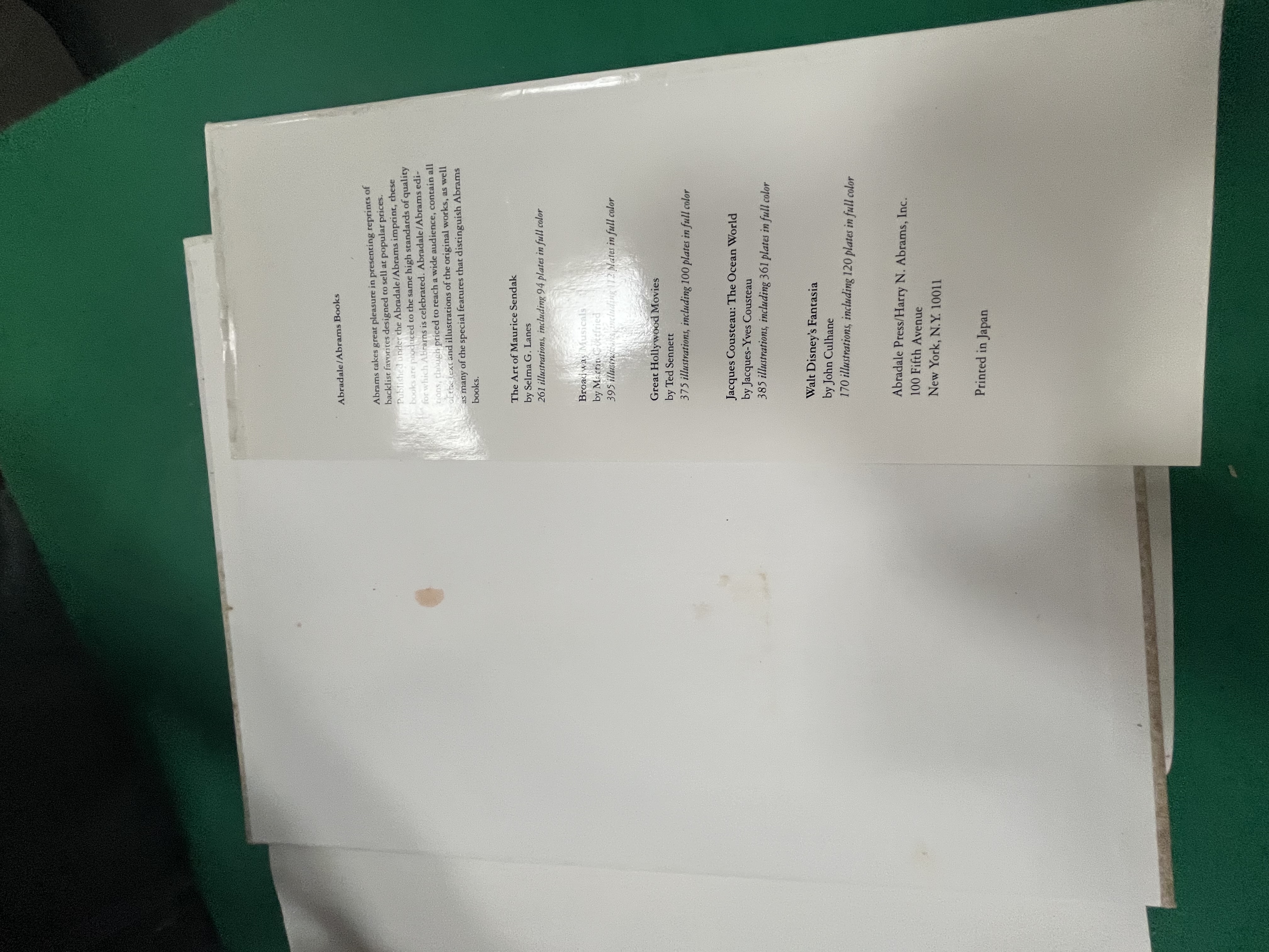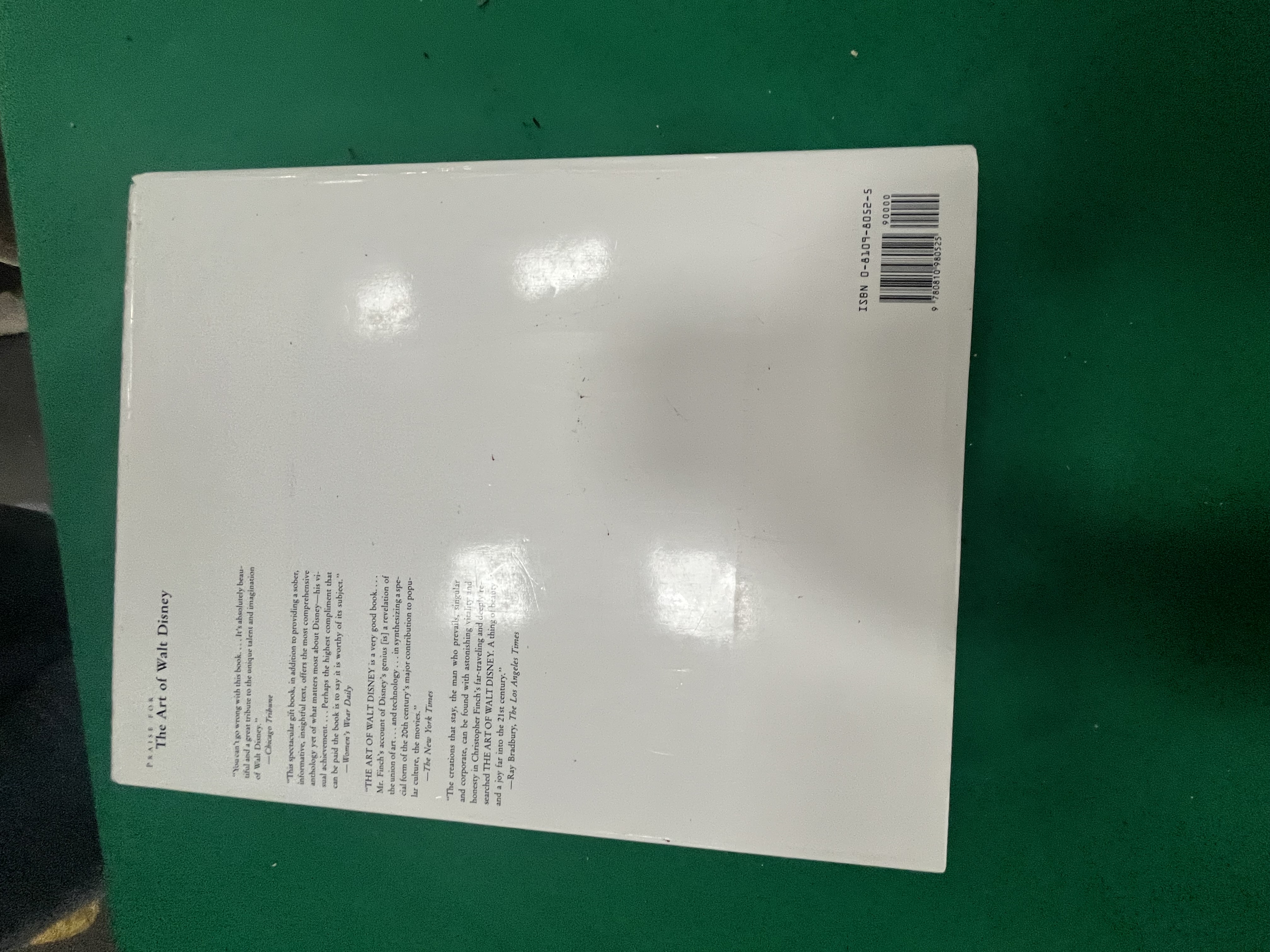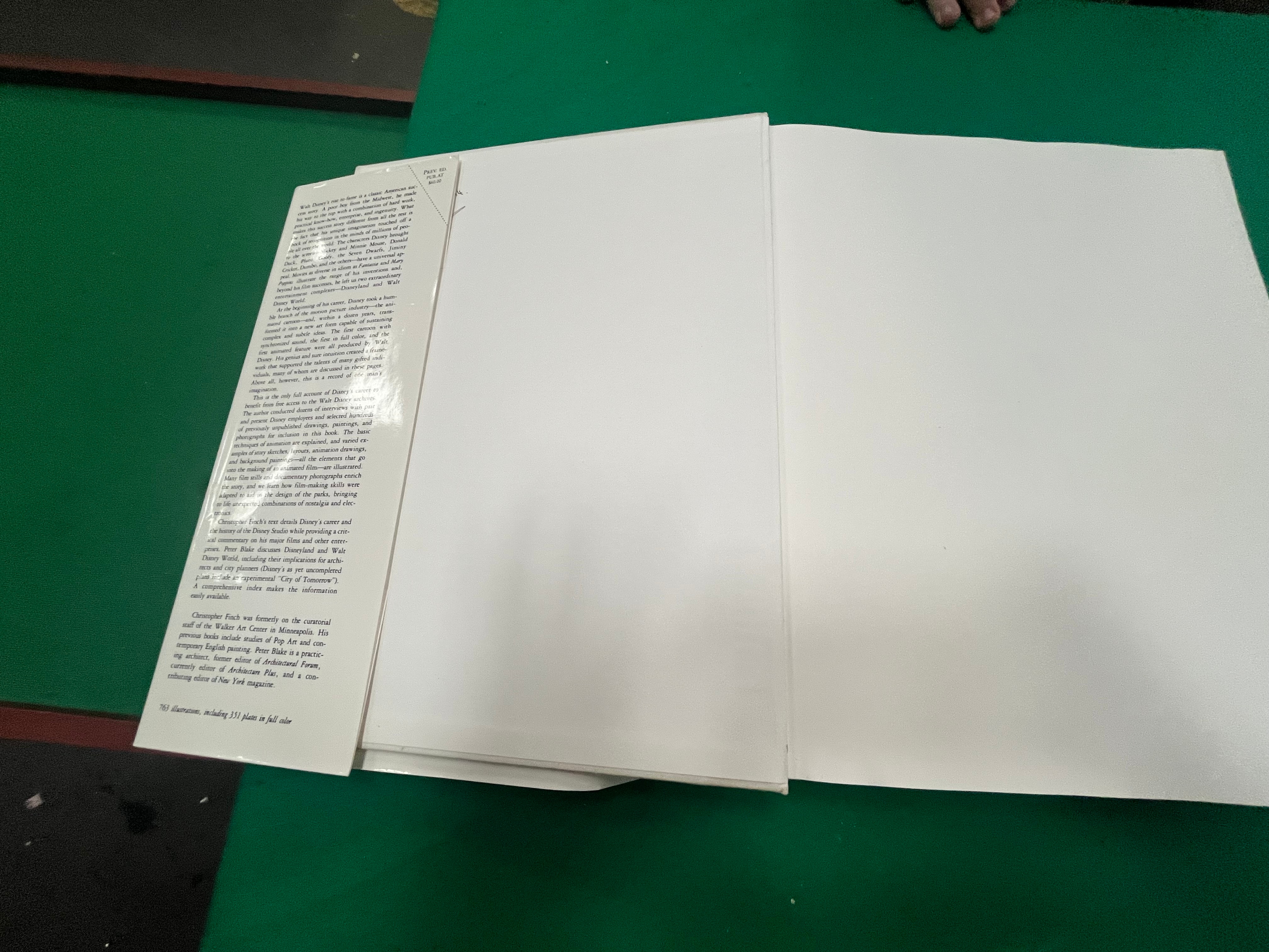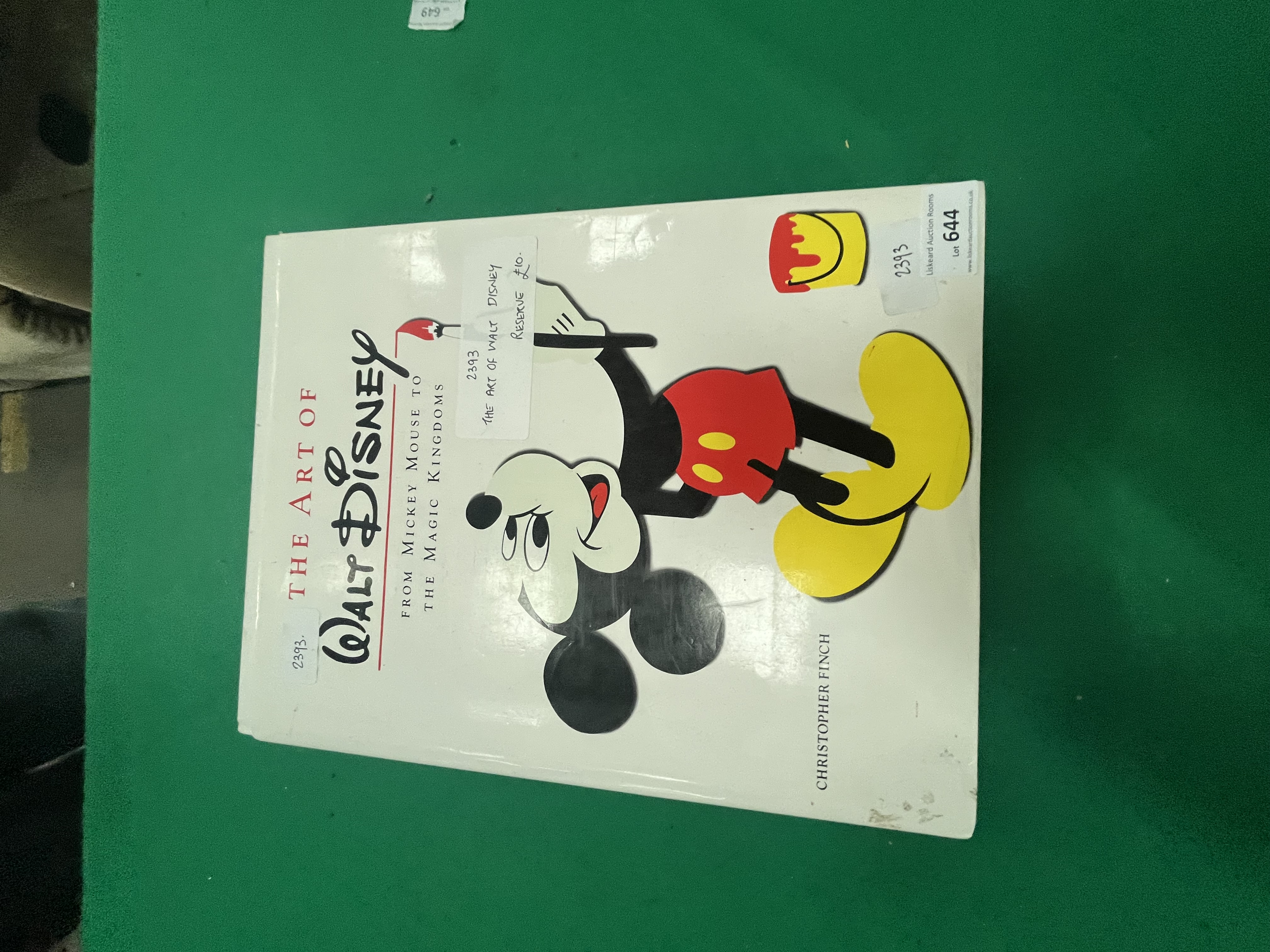 This large-format hardcover volume is a reprint of the 1973 original, published by Abradale Press, an imprint of Harry N. Abrams, Inc., New York. Titled The Art of Walt Disney: From Mickey Mouse to the Magic Kingdoms, the work is authored by Christopher Finch and features a special essay by Peter Blake. The book contains a total of 763 illustrations, including 351 plates in full colour. The volume is bound in publisher’s white boards and is accompanied by an illustrated dust jacket featuring a Mickey Mouse motif with a paint bucket. The publication was printed in Japan and bears the ISBN 0-8109-8052-5. Multiple auction house labels are present on the front of the dust jacket, including a printed label from Liskeard Auction Rooms and a handwritten lot and reserve sticker.