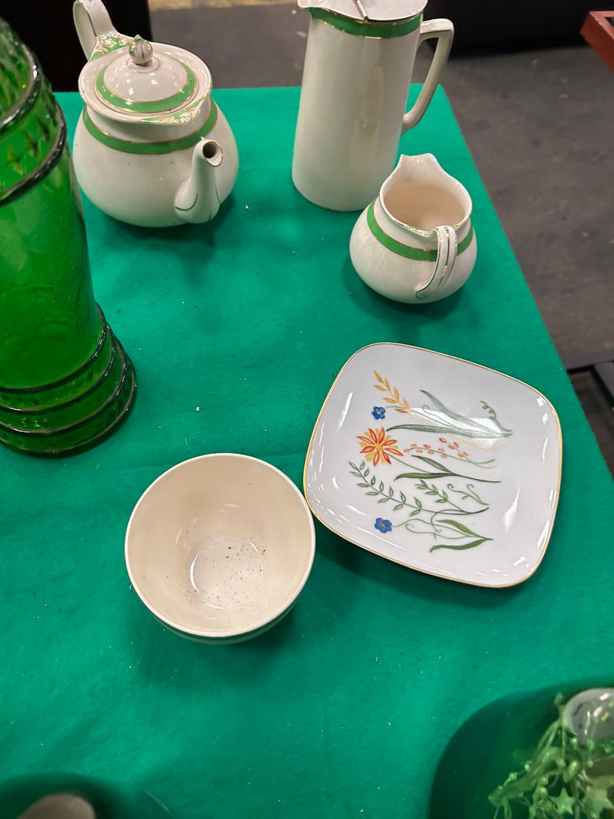 Lot 662: A Collection of Vintage English and German Ceramics and Green Glassware