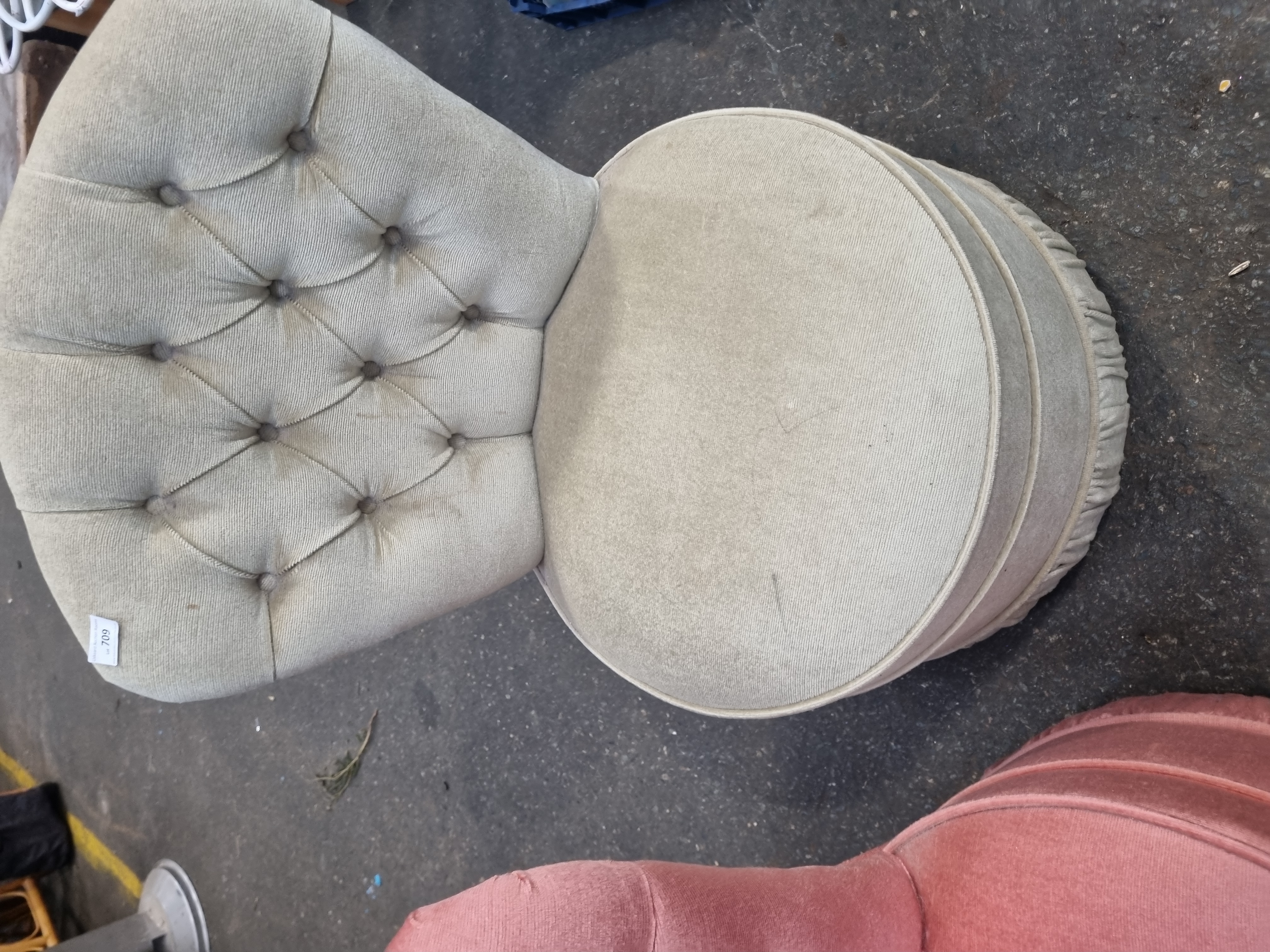 Lot 709: A Pair of Mid-20th Century Tufted Boudoir Slipper Chairs