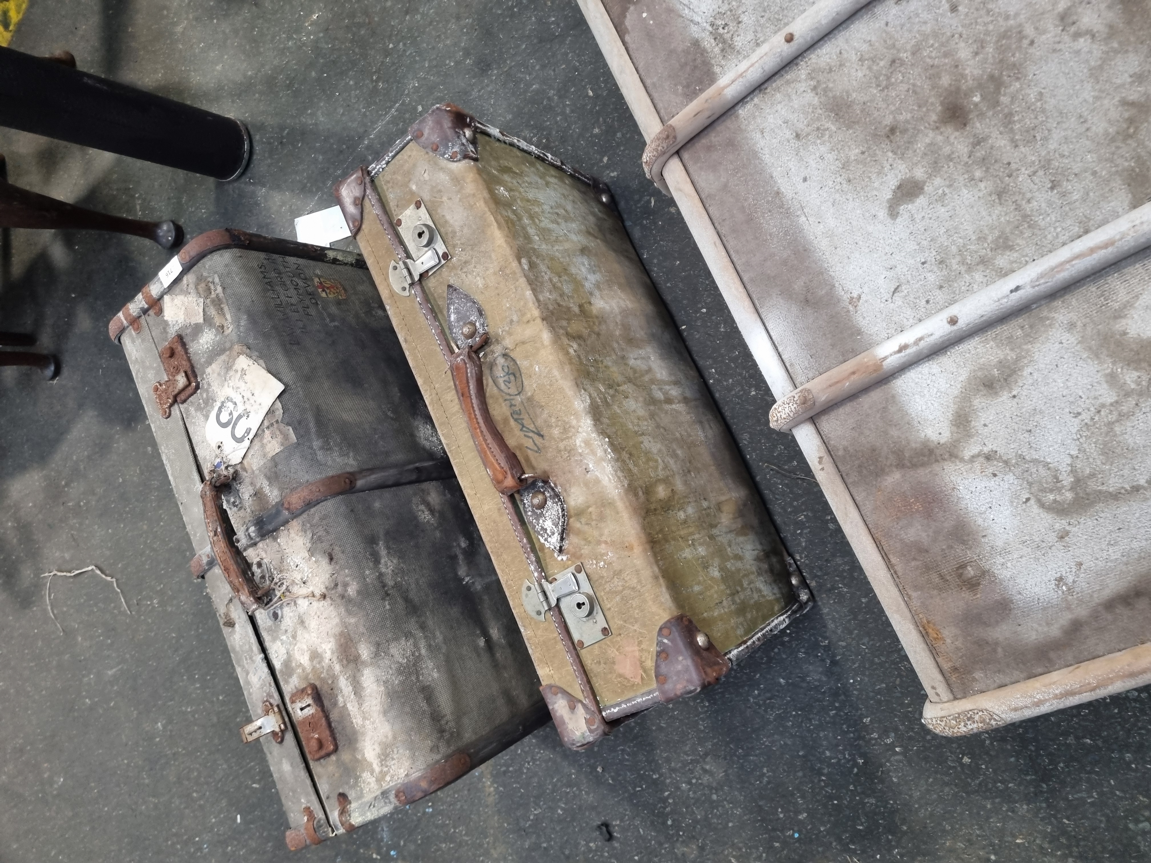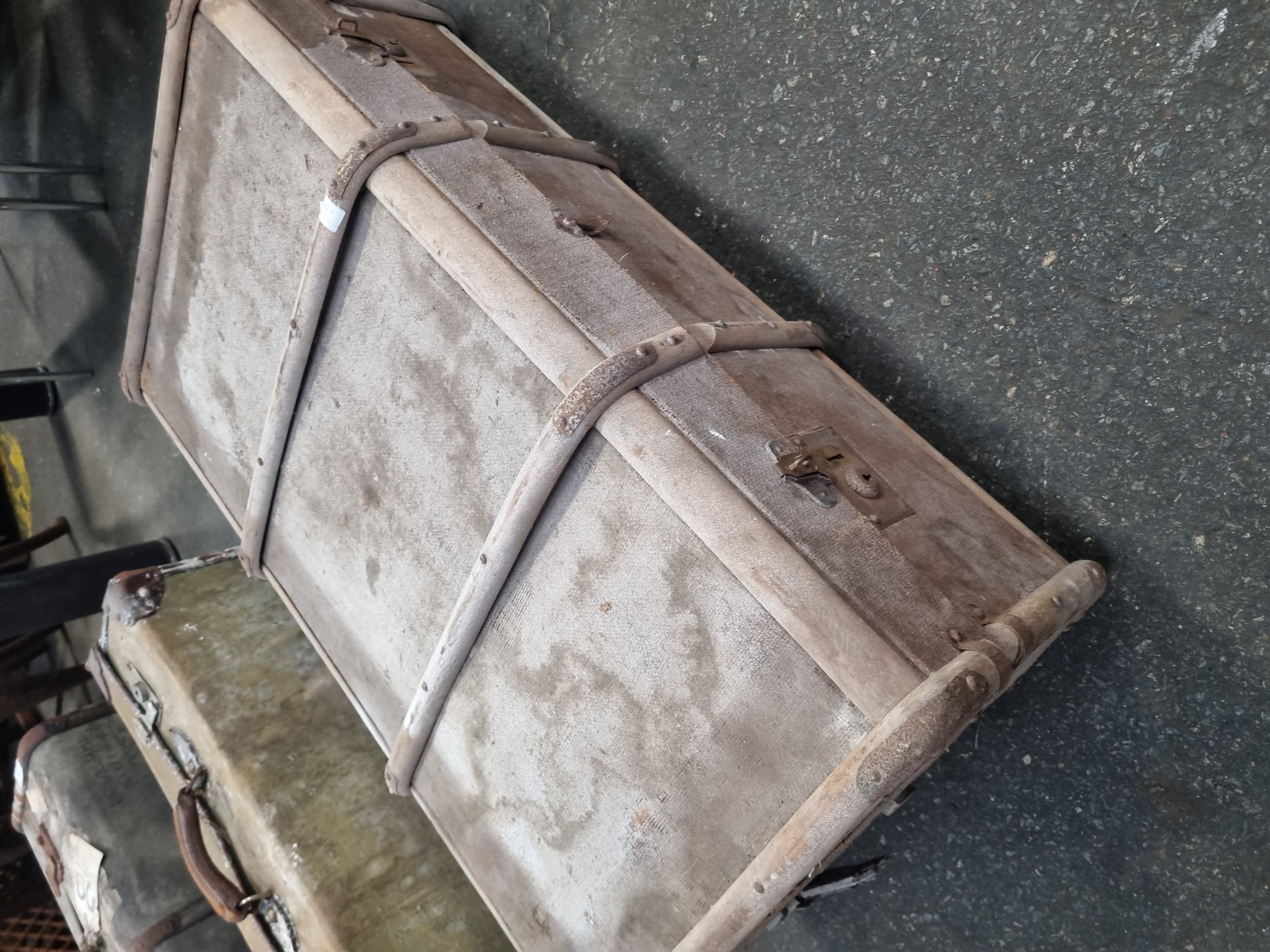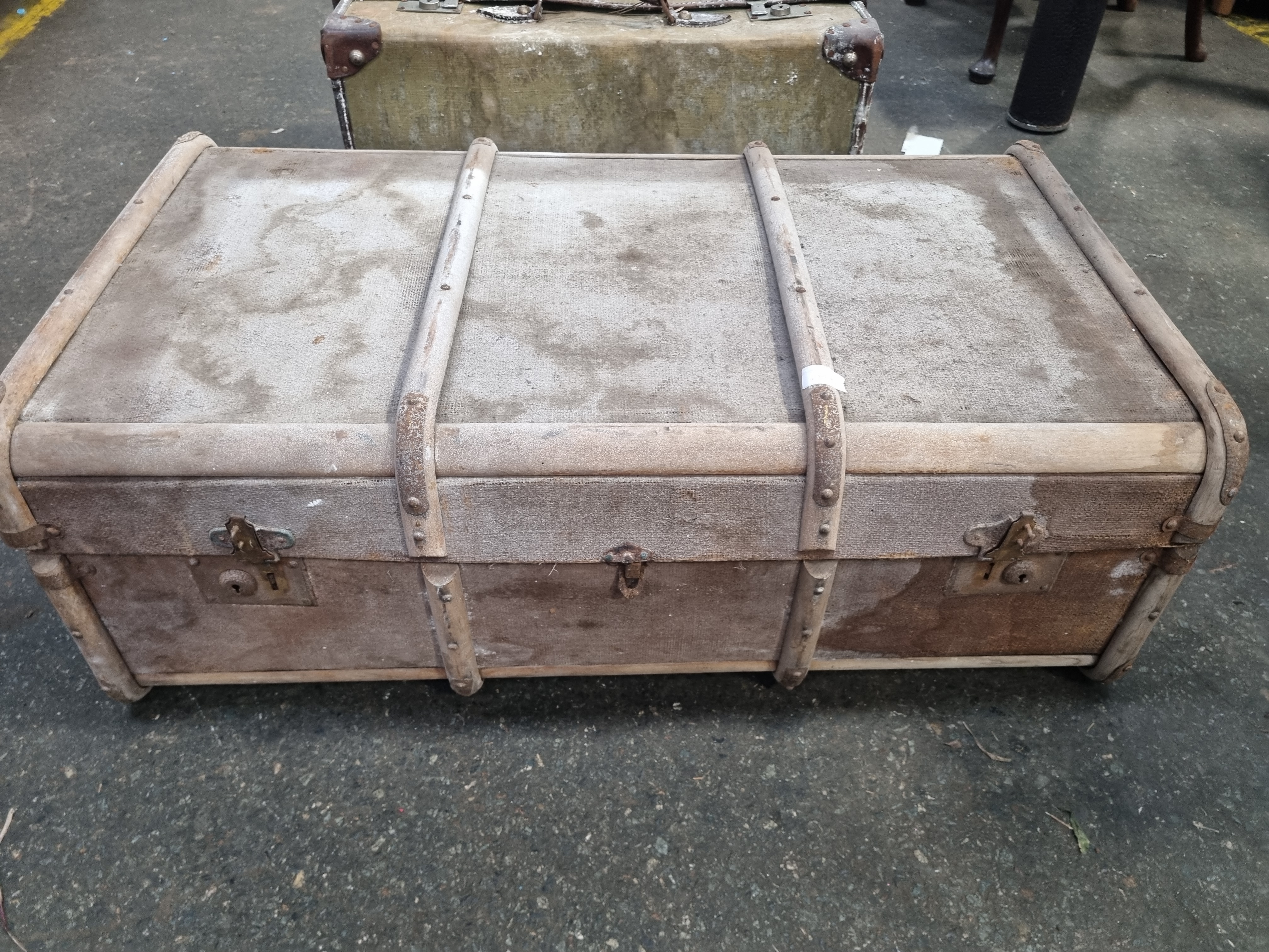 Lot 716: A Trio of Vintage Travel Luggage comprising a Steamer Trunk and Two Suitcases