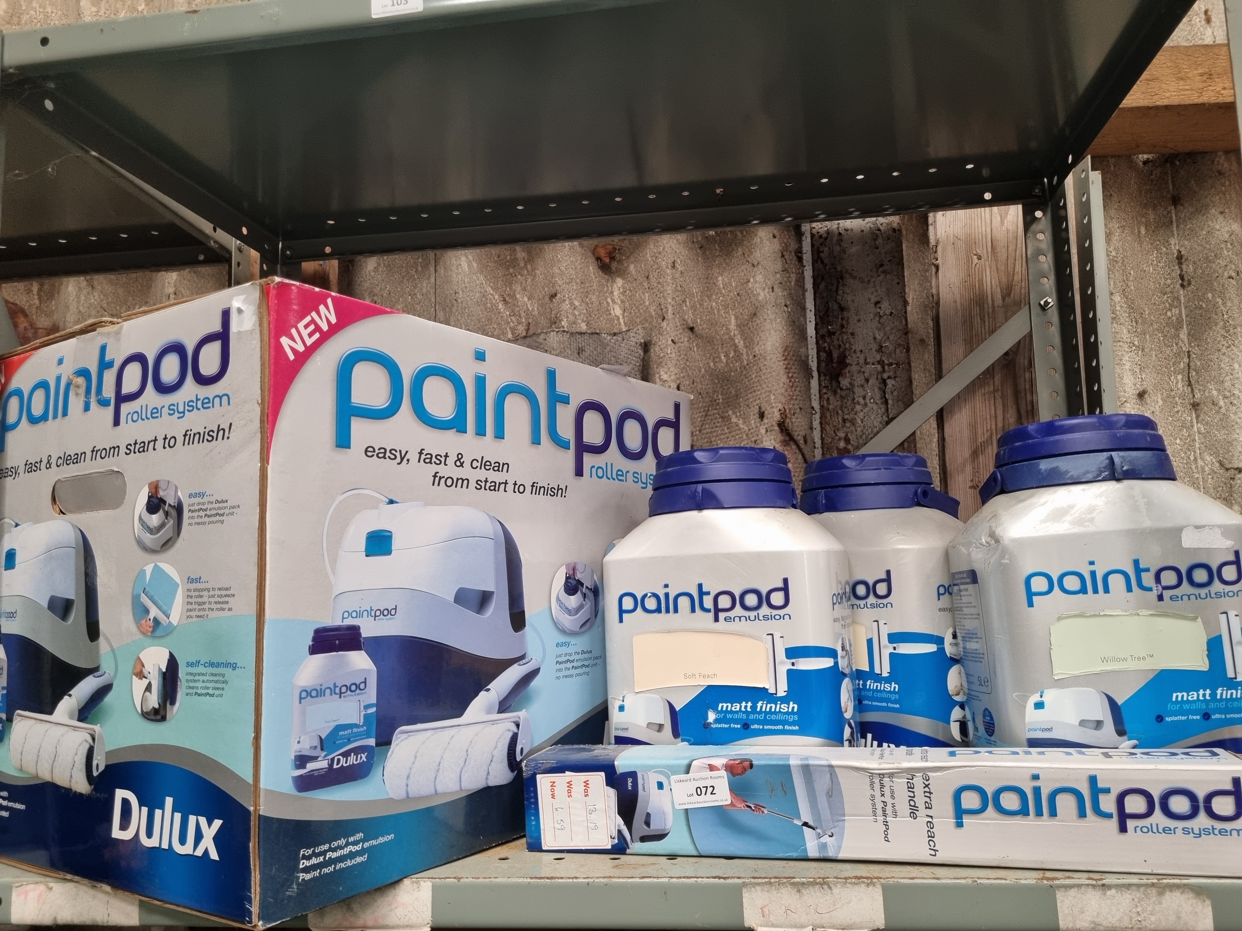 Lot 72: An Assortment of Dulux PaintPod Roller System Equipment and Emulsion Paint