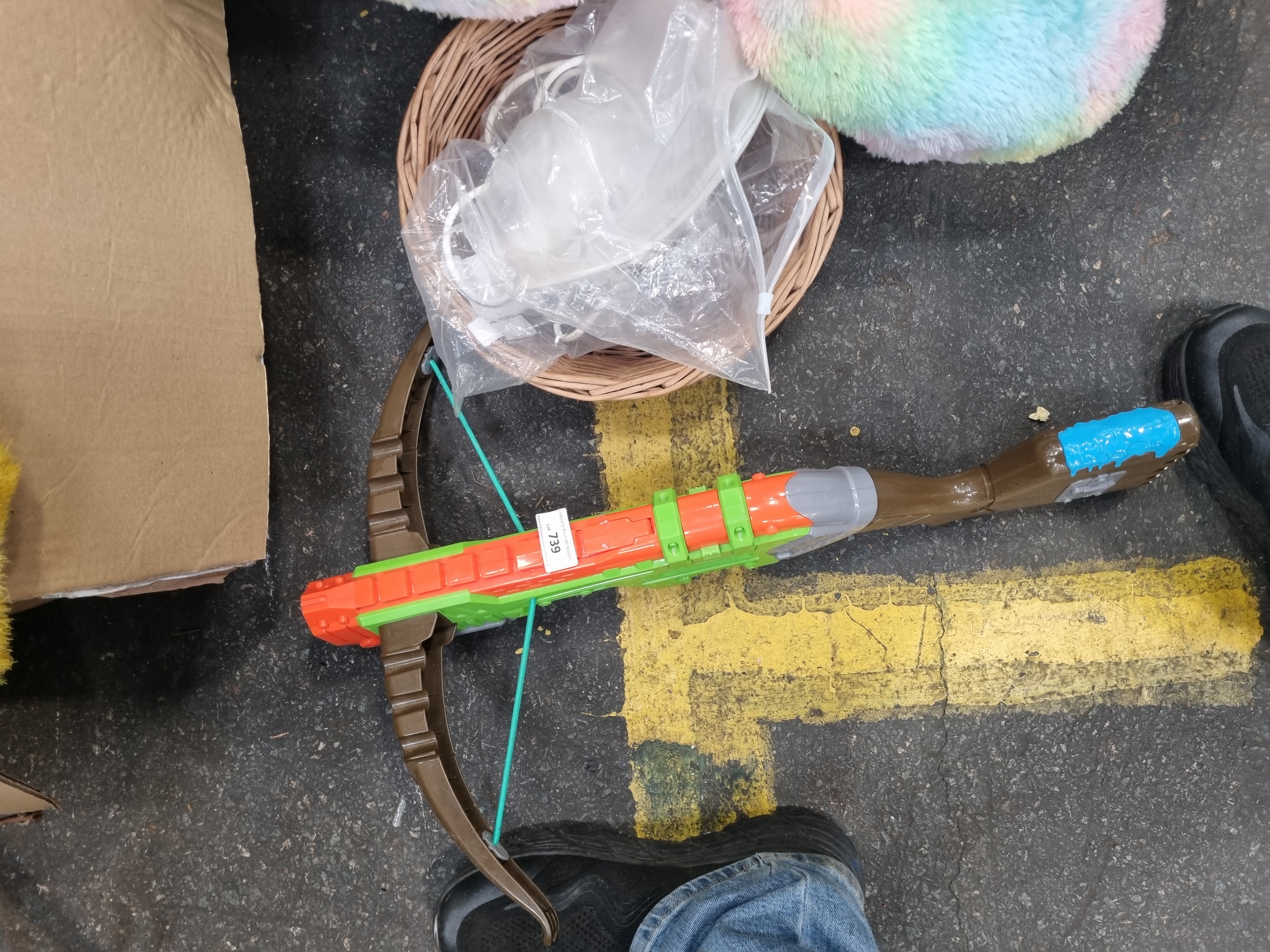 Lot 739: A Collection of Childrens Toys and Miscellaneous Items to include a Petron Toy Crossbow and a Holiday Home Jumbo Plush Unicorn