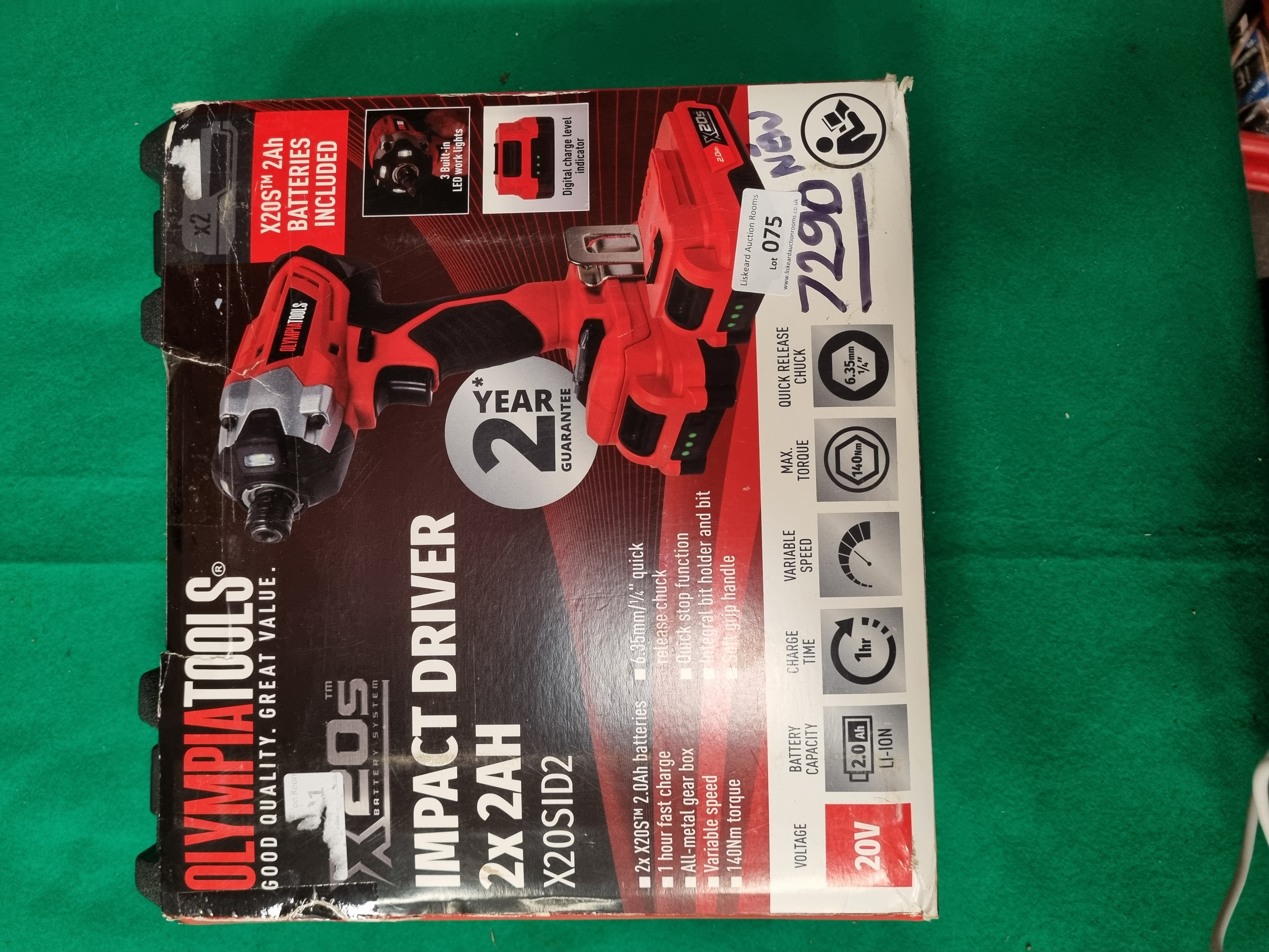Lot 75: Olympia Tools X20S 20V Cordless Impact Driver Kit - New In Box